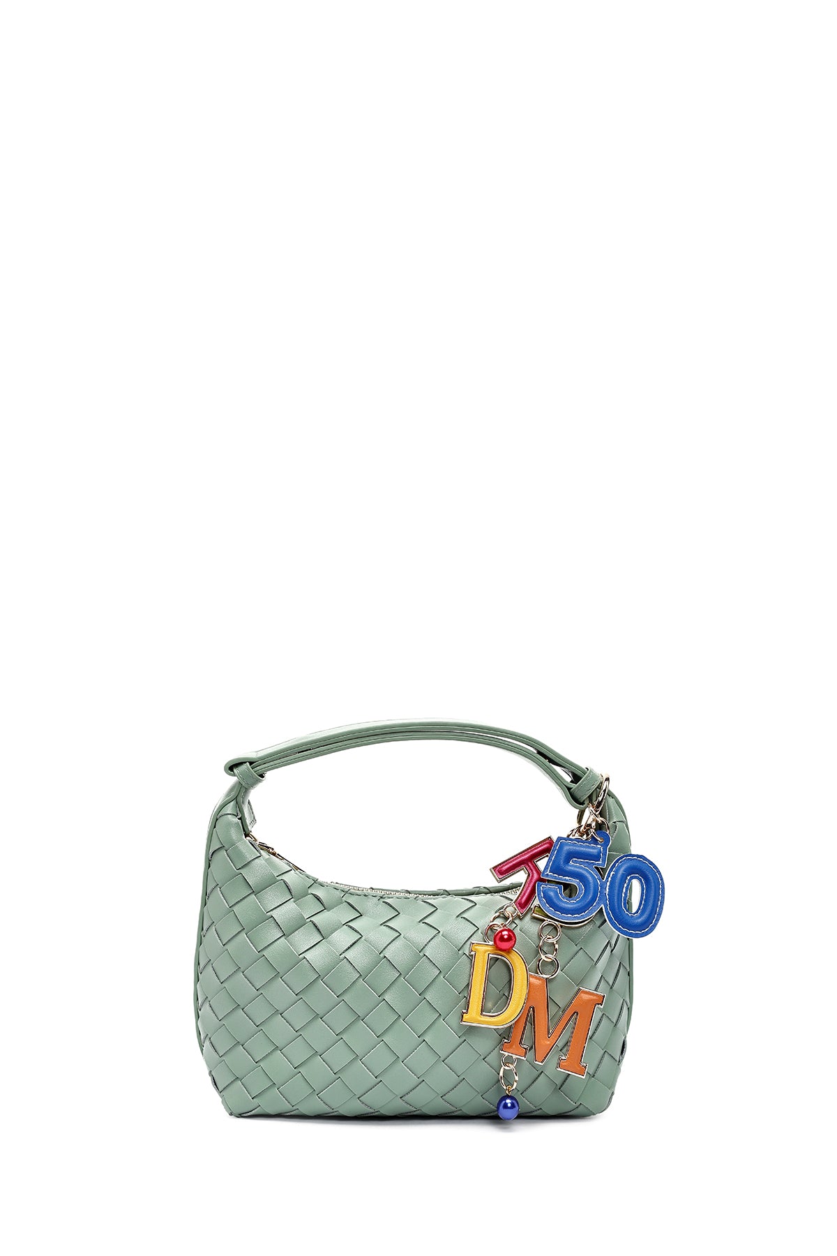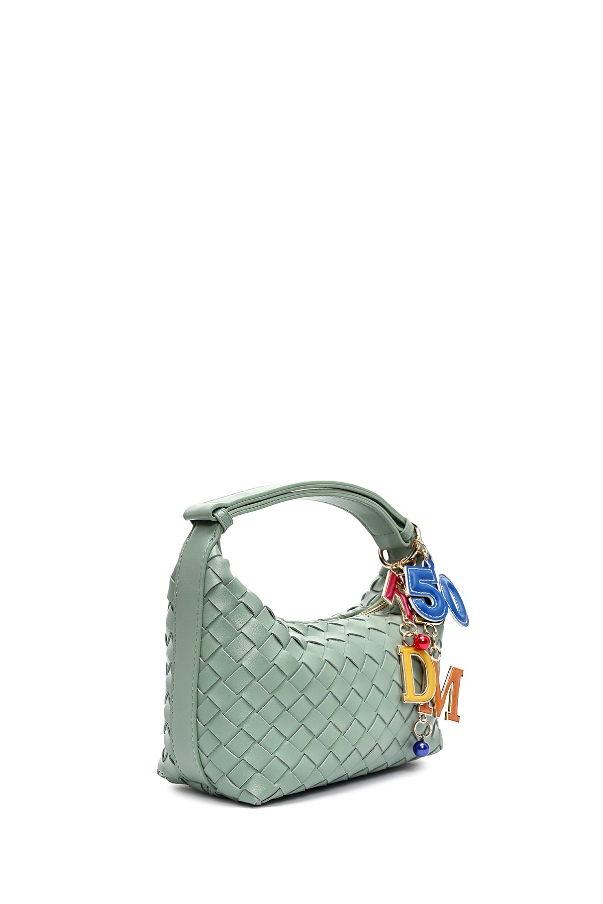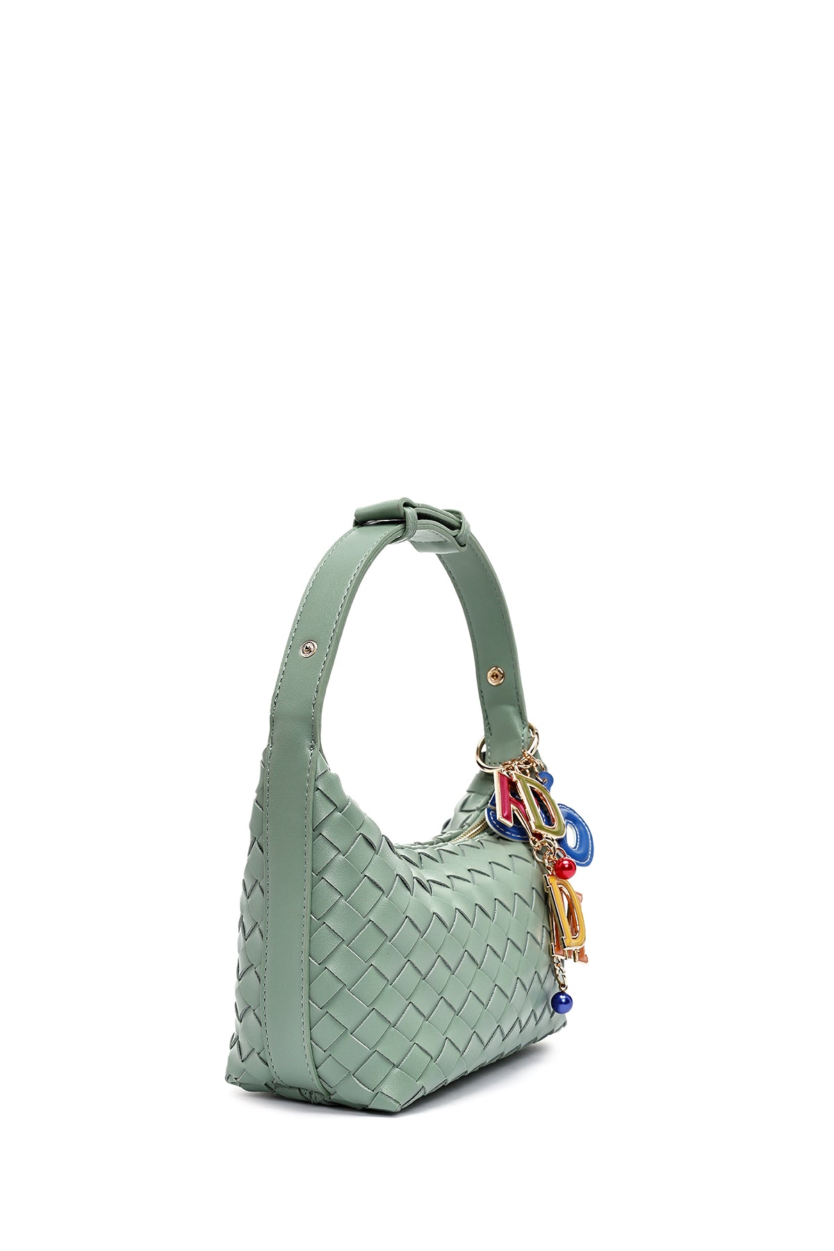 Kadın Yeşil Aksesuarlı Örgü Mini Kol Çantası