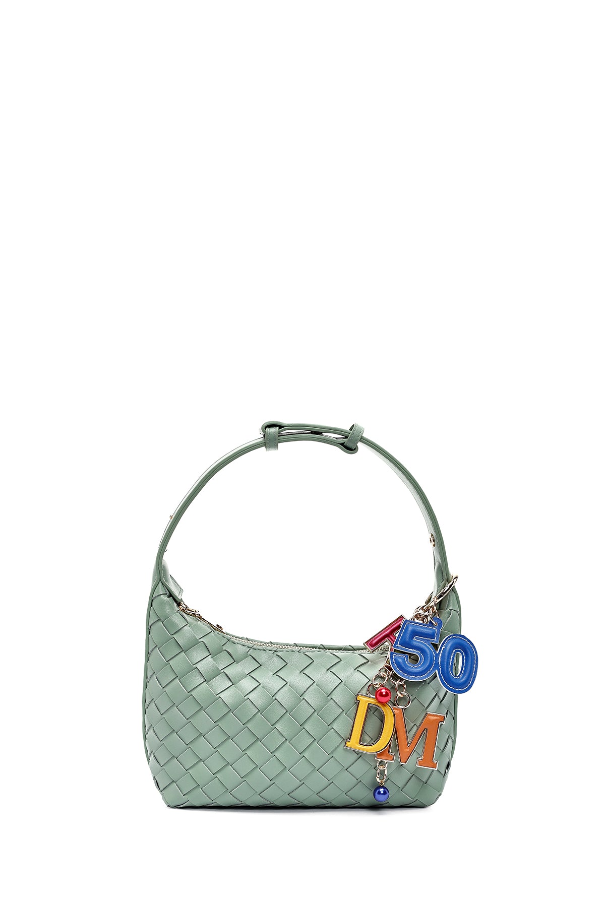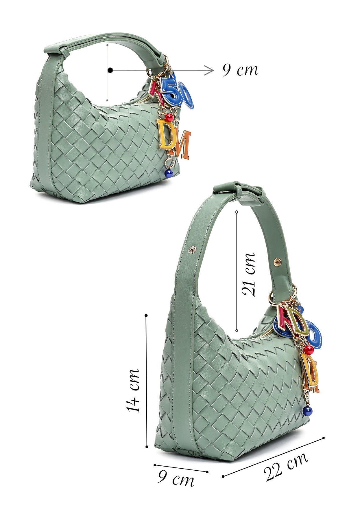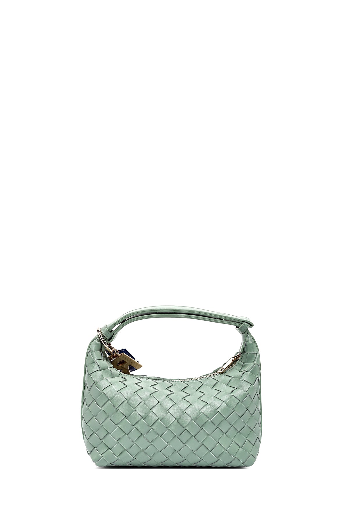 Kadın Yeşil Aksesuarlı Örgü Mini Kol Çantası
