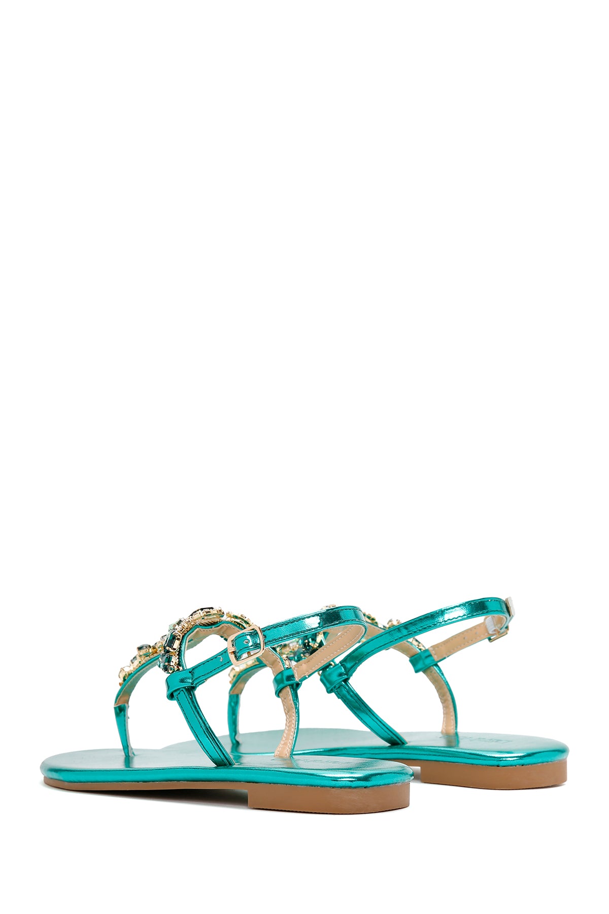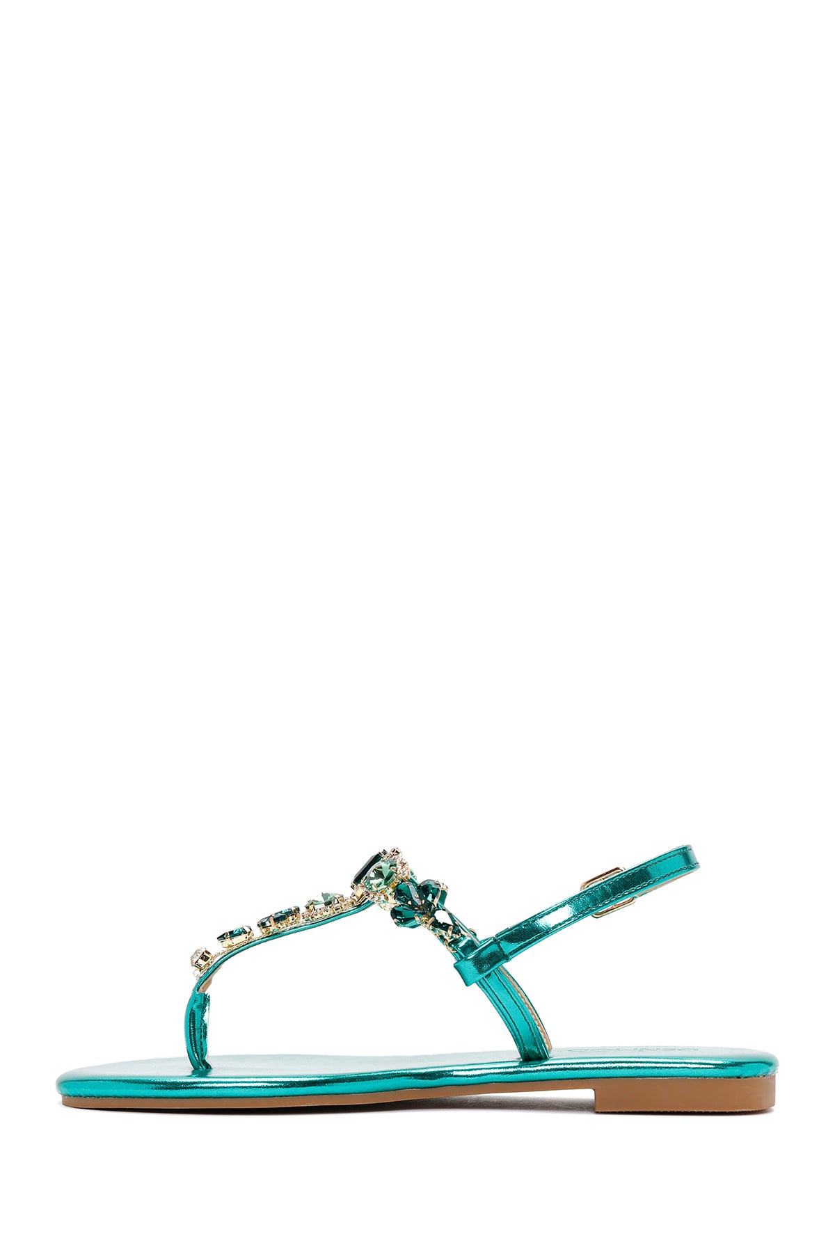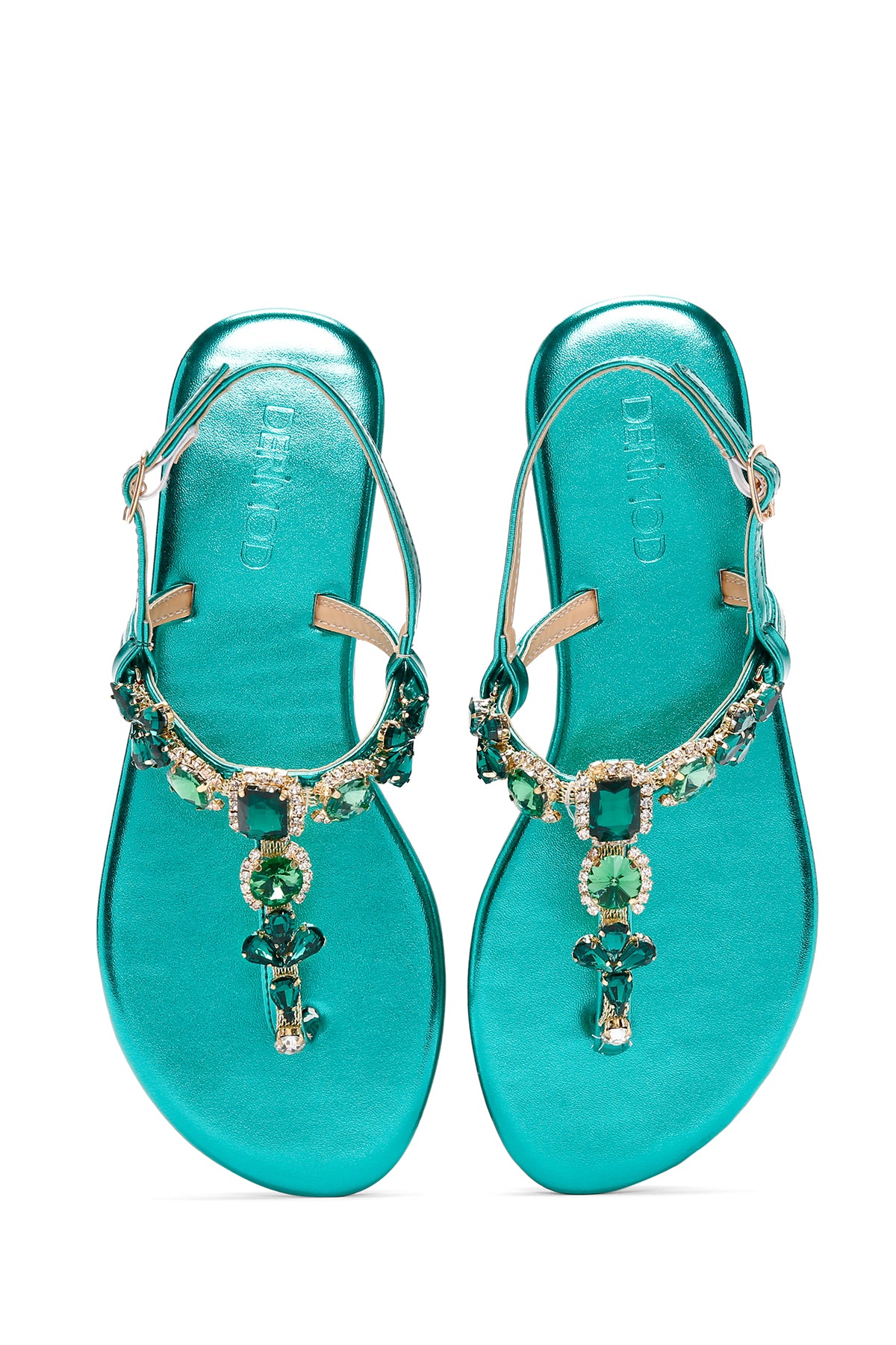Kadın Yeşil Bilekten Bantlı Taşlı Sandalet