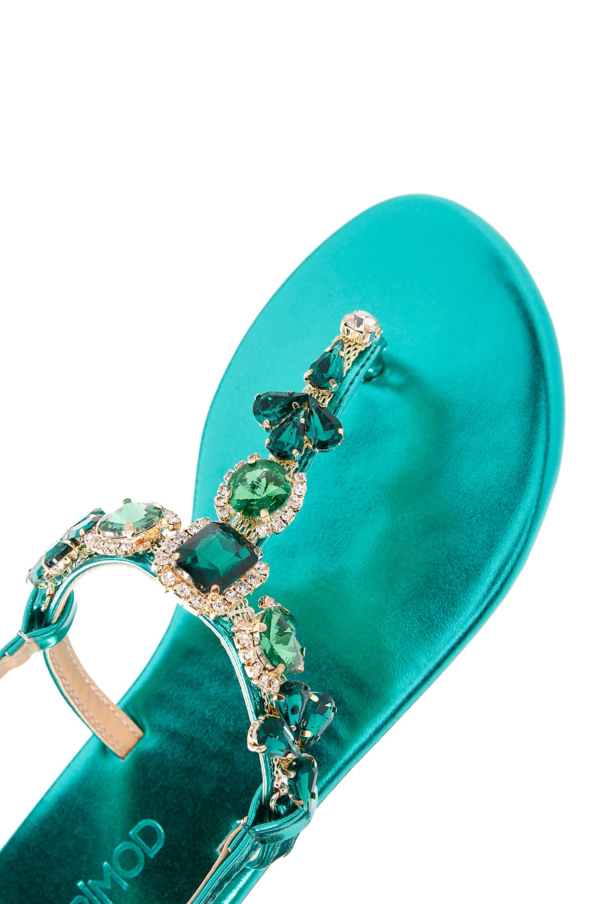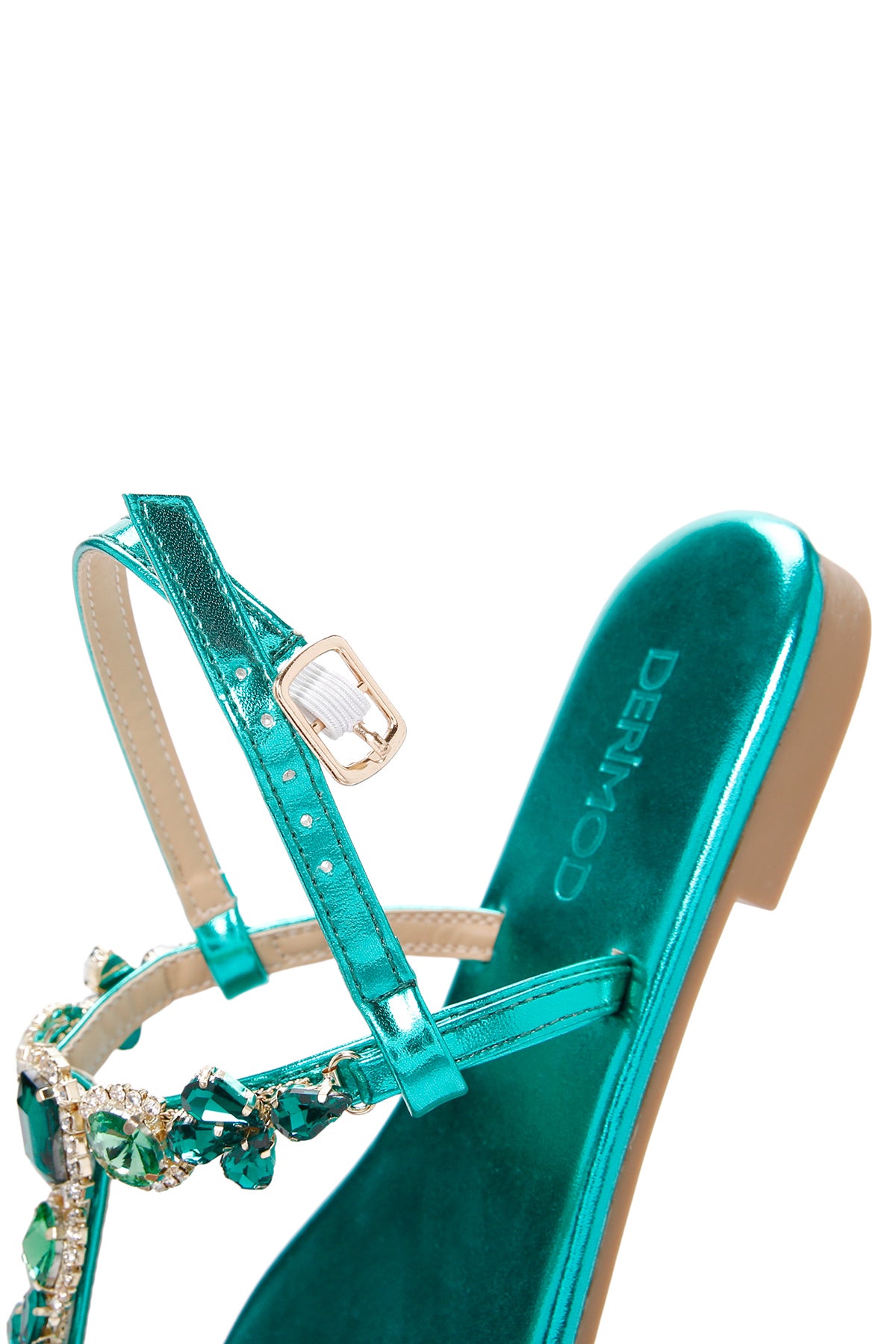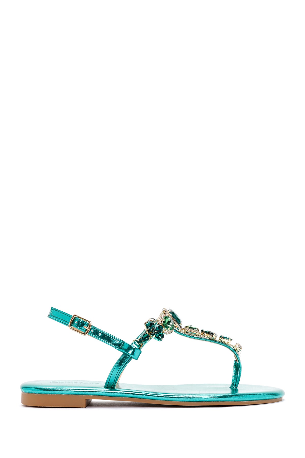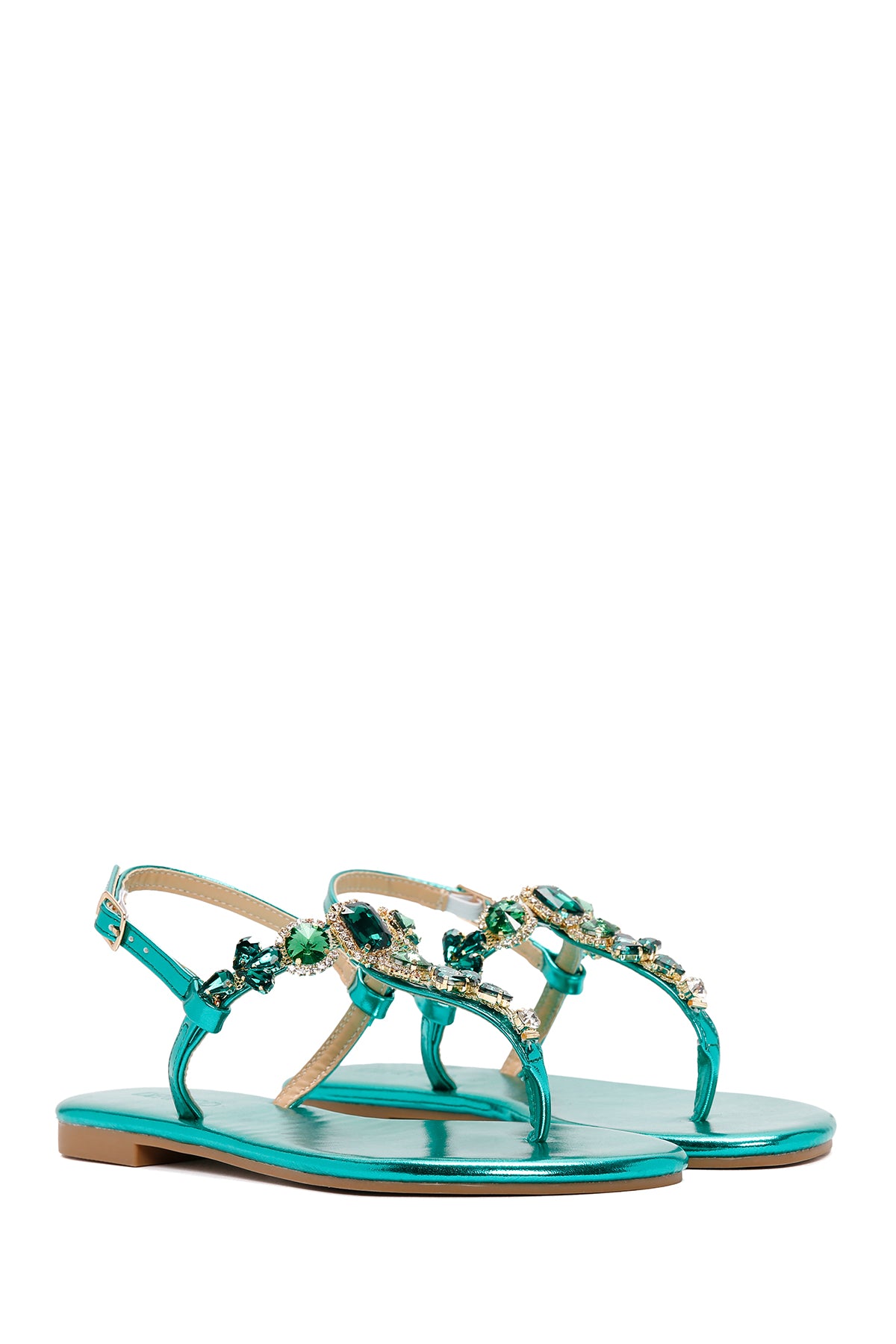 Kadın Yeşil Bilekten Bantlı Taşlı Sandalet