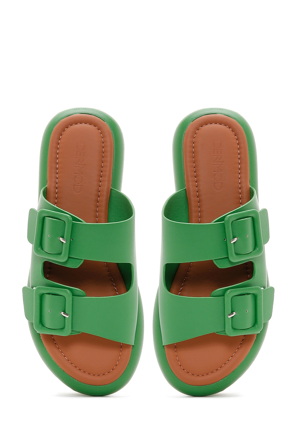 Derimod’un Zarif ve Şıklığı bir arada sunan Kadın Yeşil Çift Tokalı Terlik ile tarzınızı konuşturun. Ürünün kodu: 23SFE471918 45