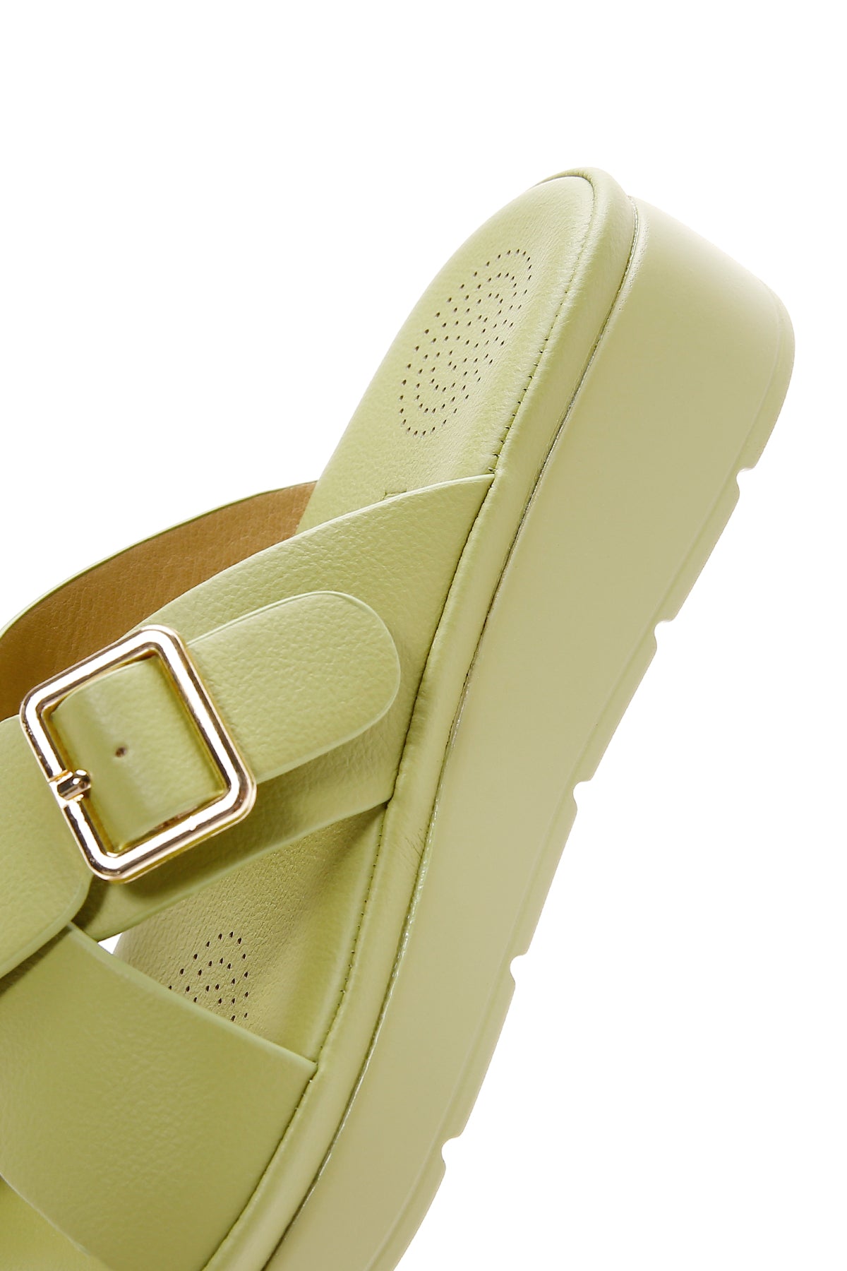 Derimod’un Zarif ve Şıklığı bir arada sunan Kadın Yeşil Kalın Tabanlı Comfort Terlik ile tarzınızı konuşturun. Ürünün kodu: 23SFE4701FT 45