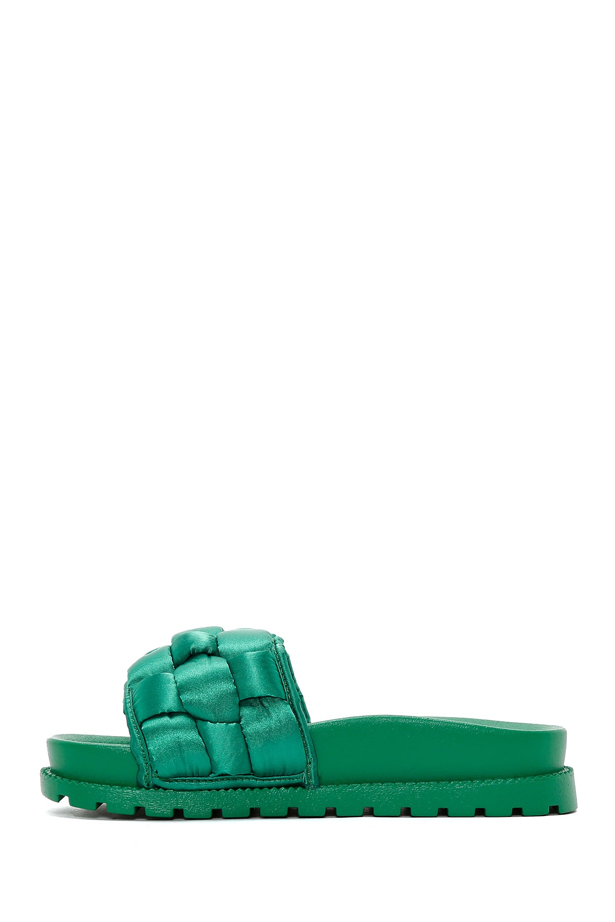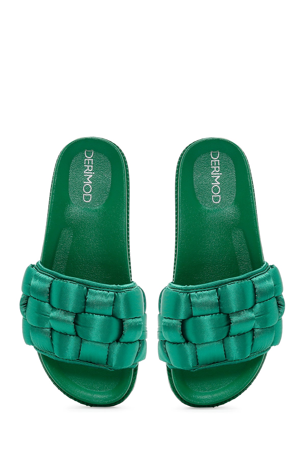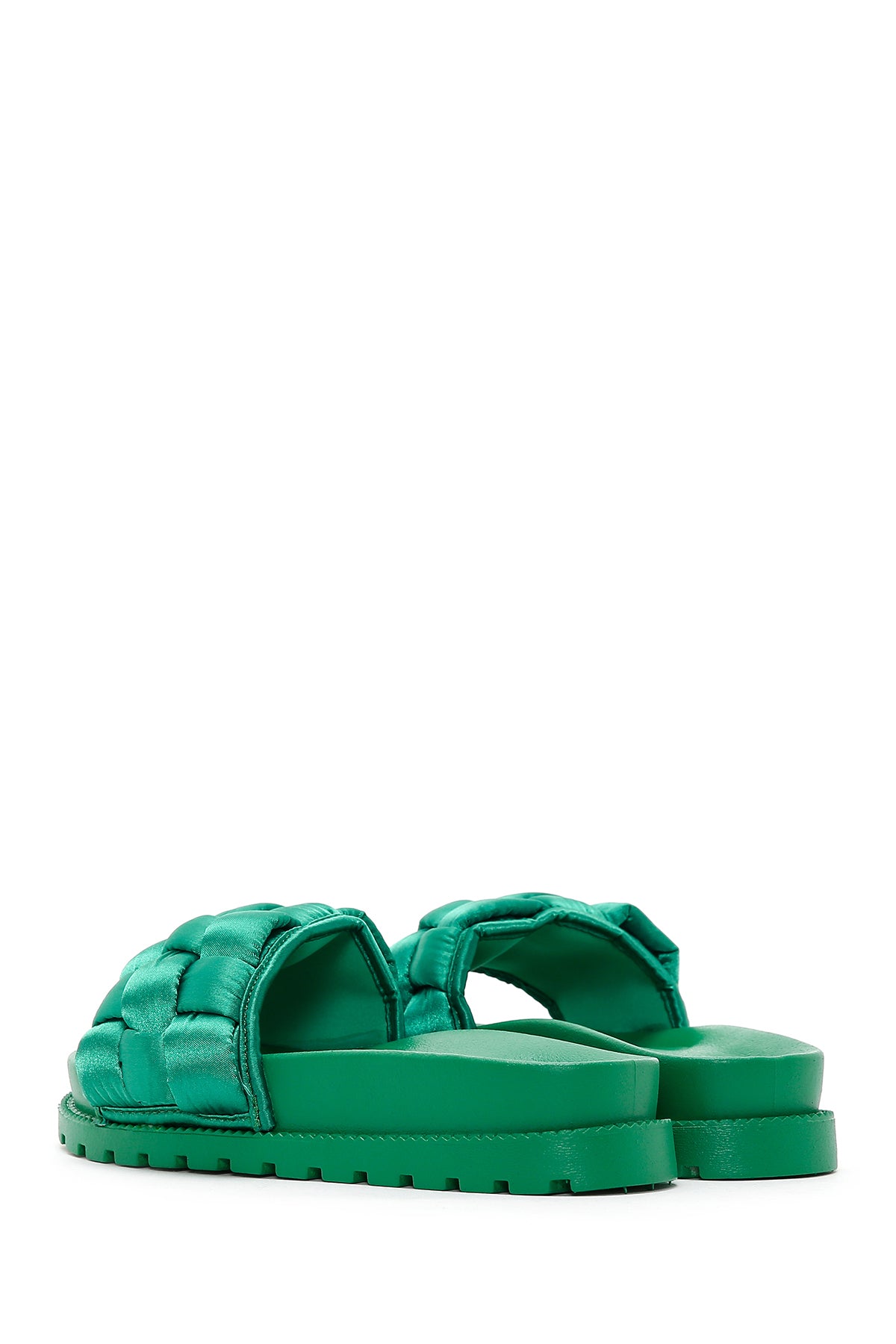 Kadın Yeşil Kalın Tabanlı Örgü Desenli Terlik