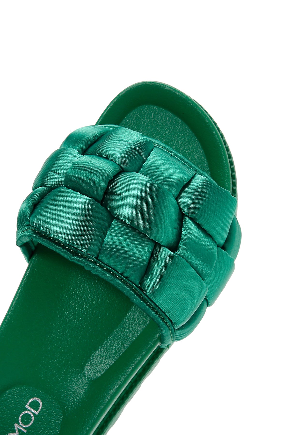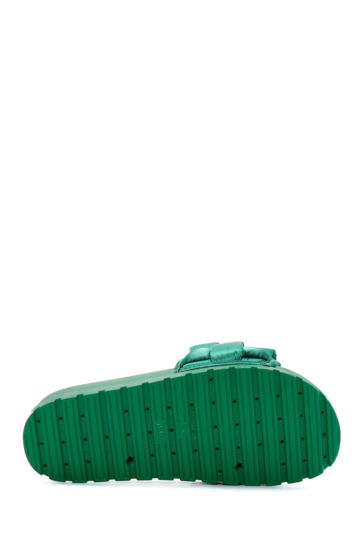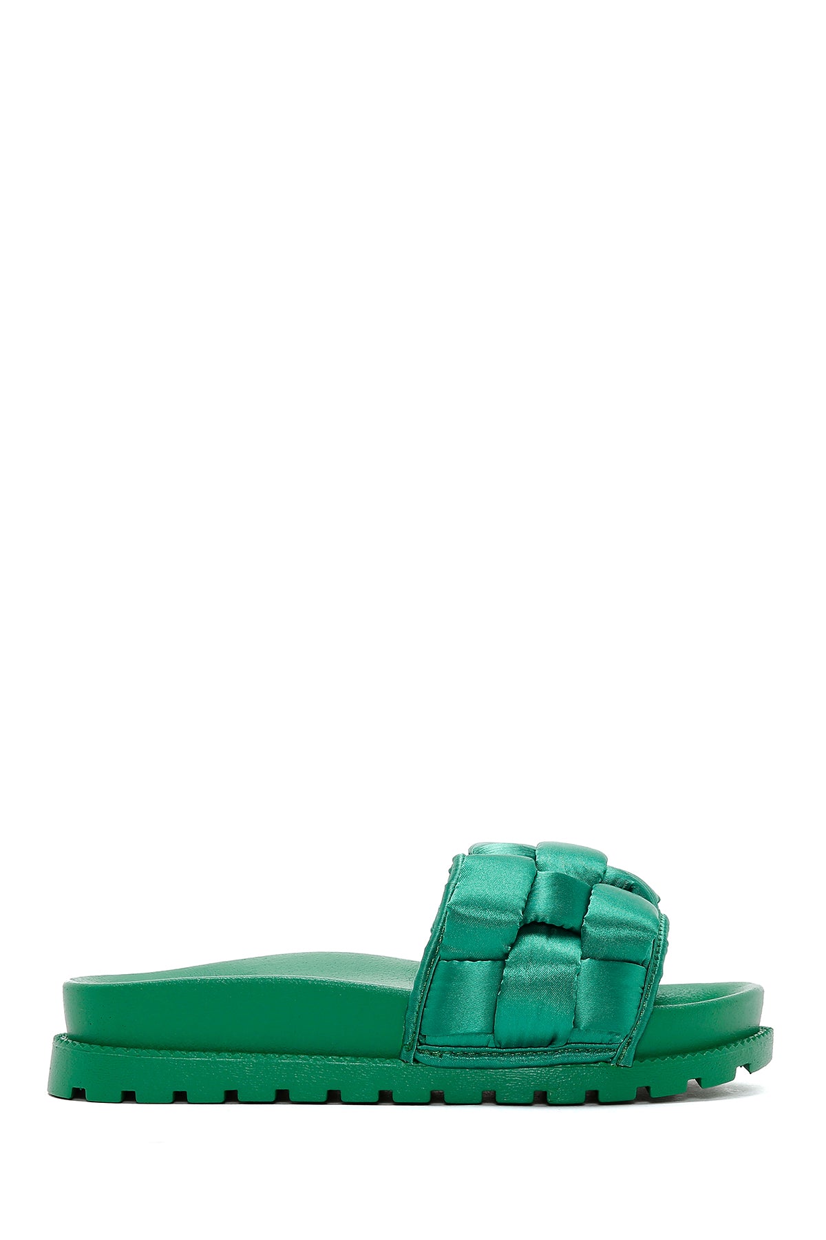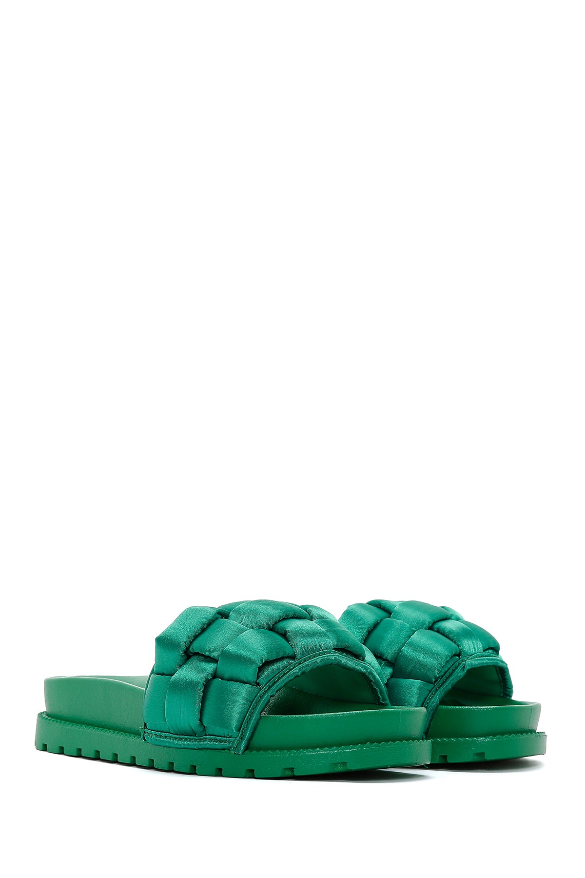 Kadın Yeşil Kalın Tabanlı Örgü Desenli Terlik