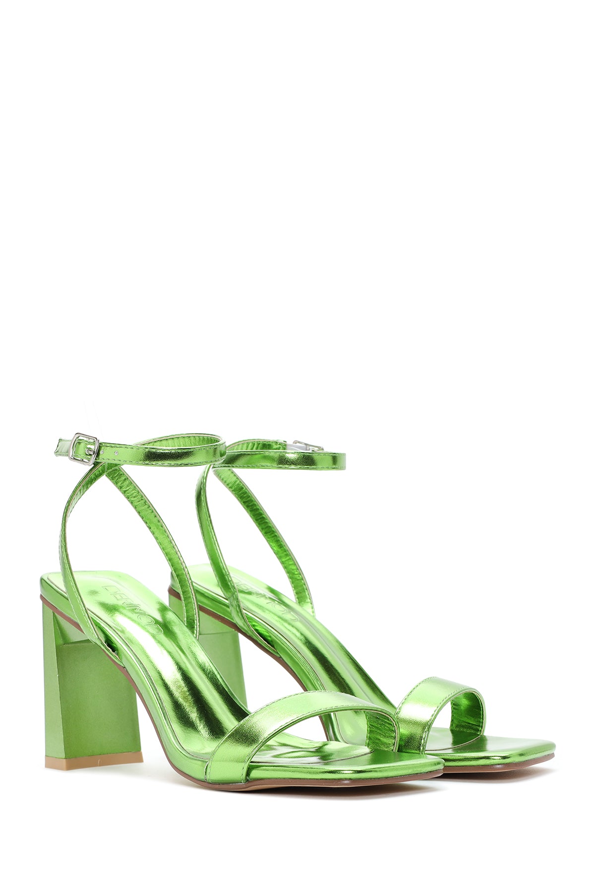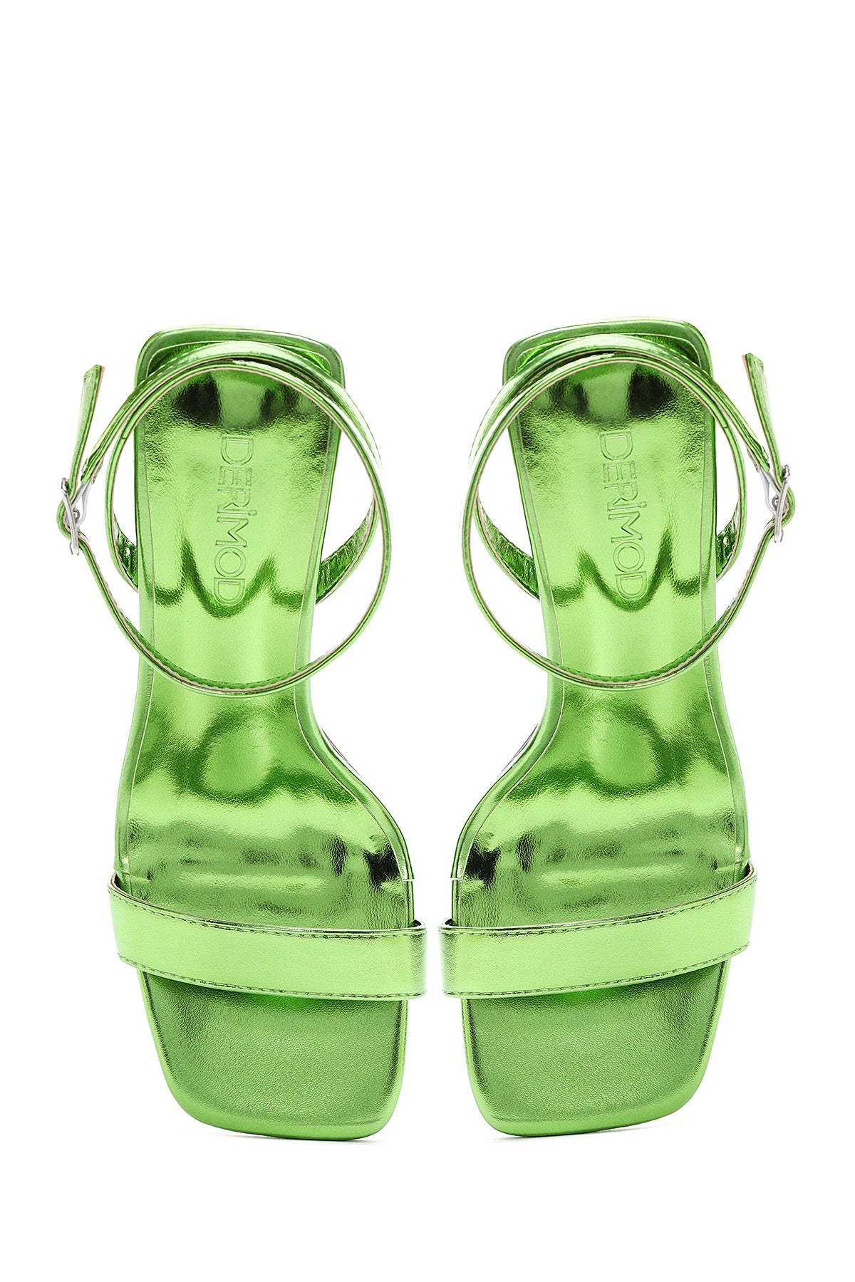 Derimod’un Zarif ve Şıklığı bir arada sunan Kadın Yeşil Metalik Tek Bant Topuklu Sandalet ile tarzınızı konuşturun. Ürünün kodu: 23SFE452032 45