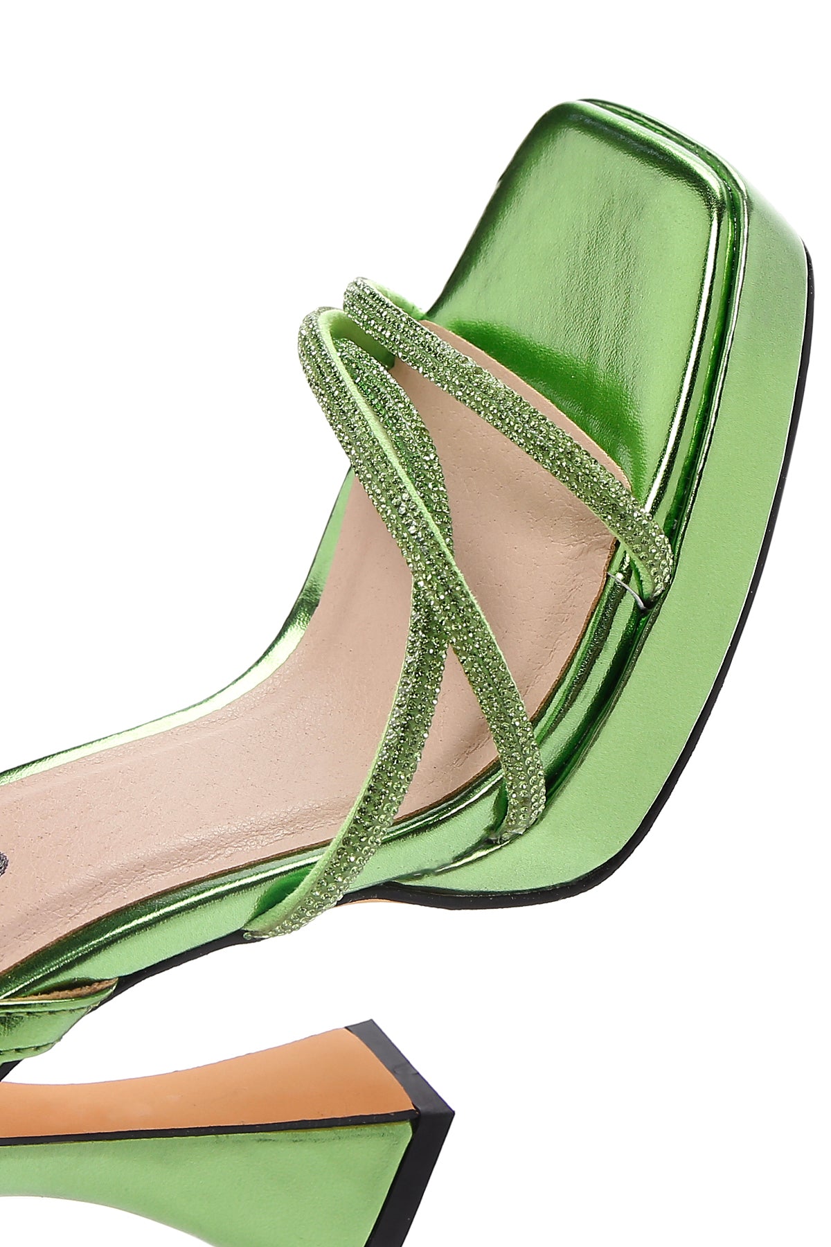 Derimod’un Zarif ve Şıklığı bir arada sunan Kadın Yeşil Taşlı Platform Topuklu Sandalet ile tarzınızı konuşturun. Ürünün kodu: 23SFD445114 45