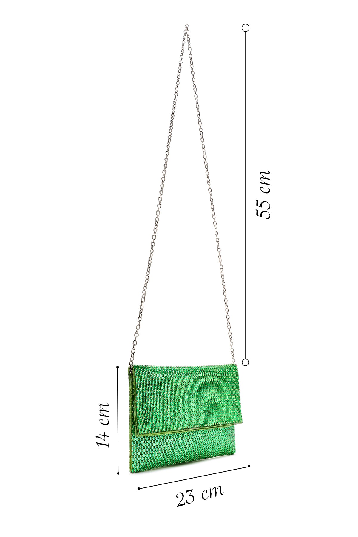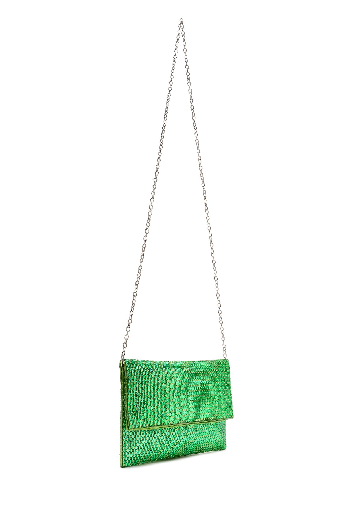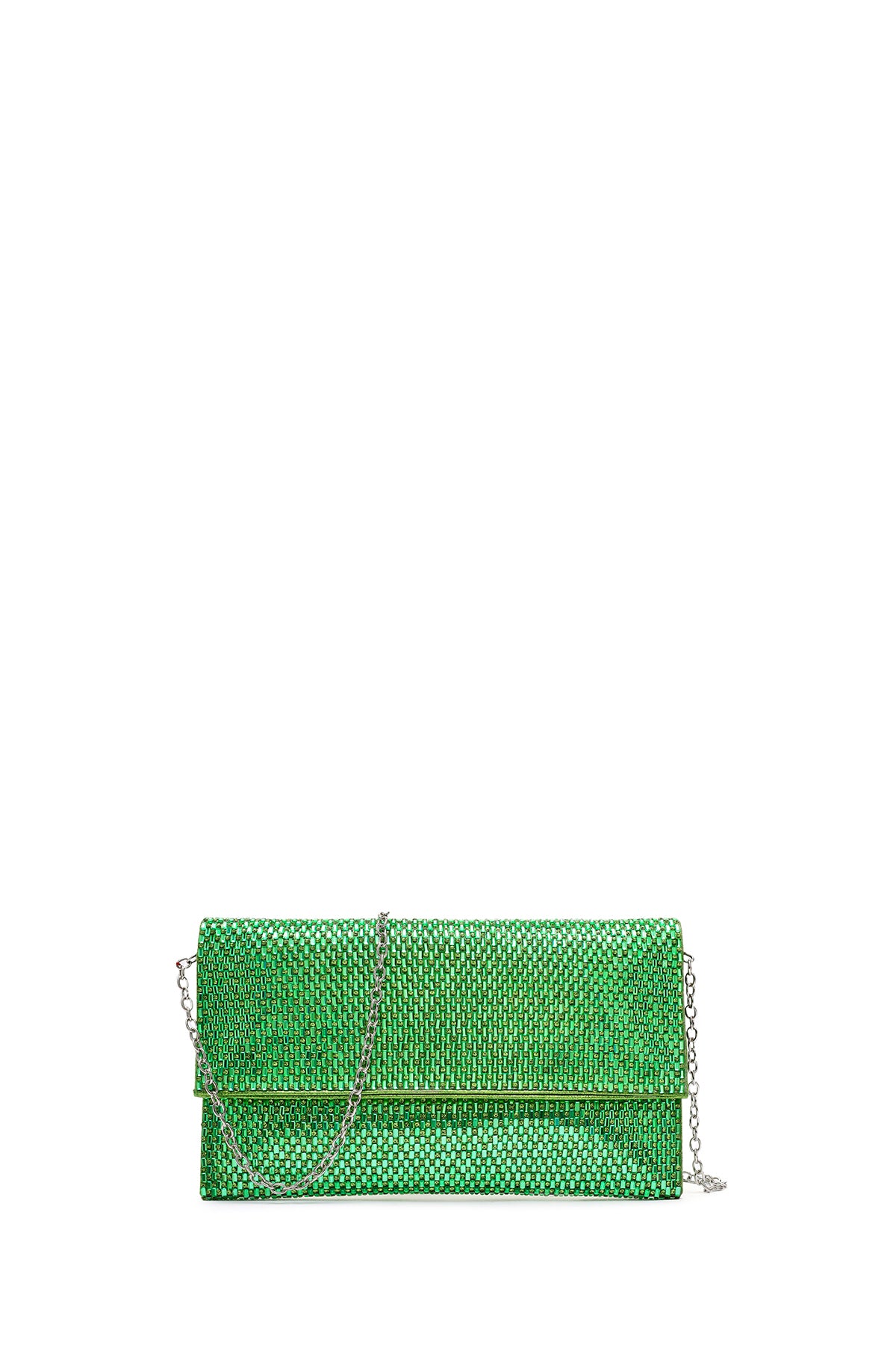 Kadın Yeşil Uzun Zincir Askılı Taşlı Portföy Çanta