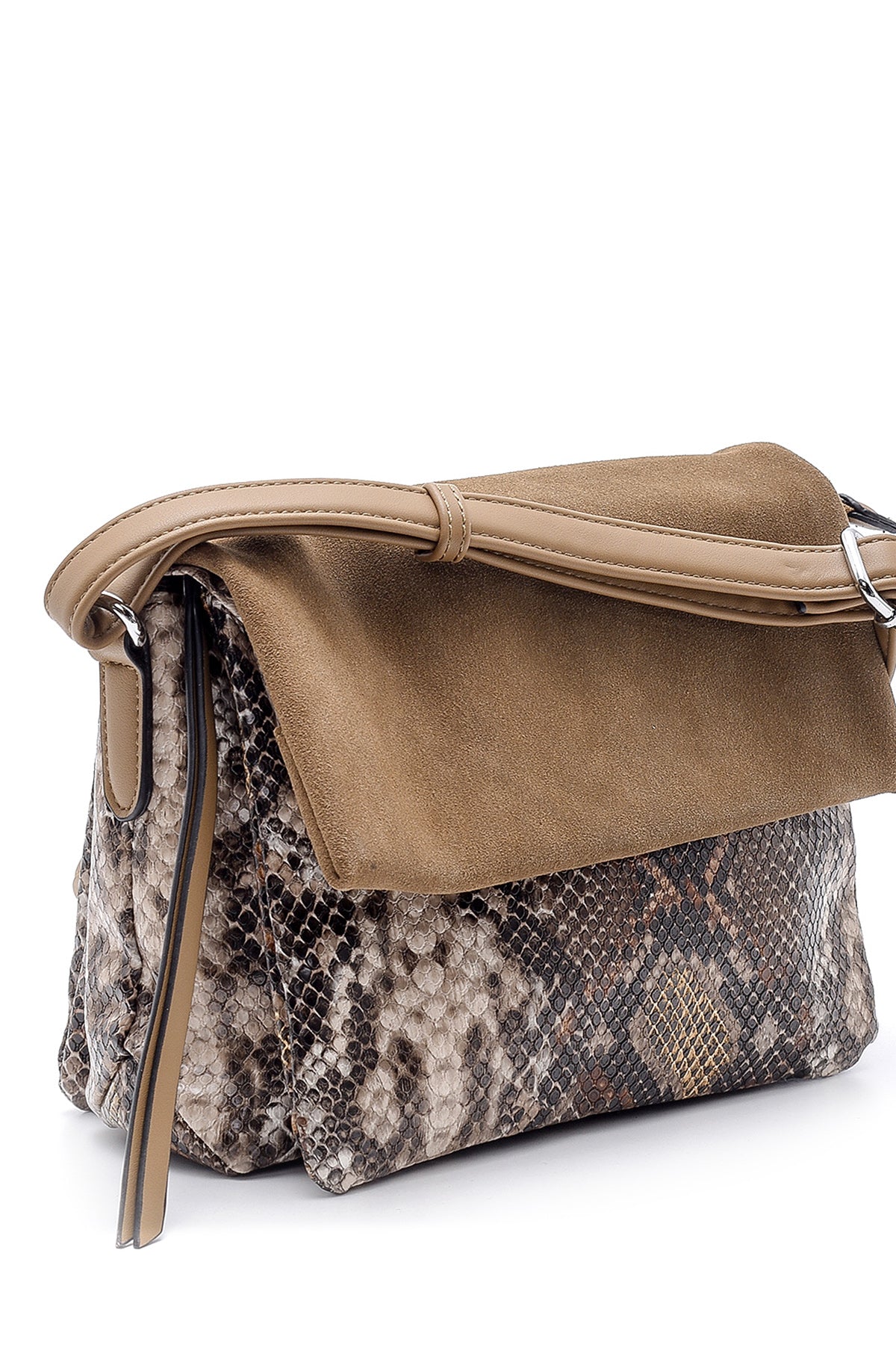Derimod’un Zarif ve Şıklığı bir arada sunan Kadın Yılan Derisi Detaylı Çapraz Çanta ile tarzınızı konuşturun. Ürünün kodu: 20SBD261814 L5