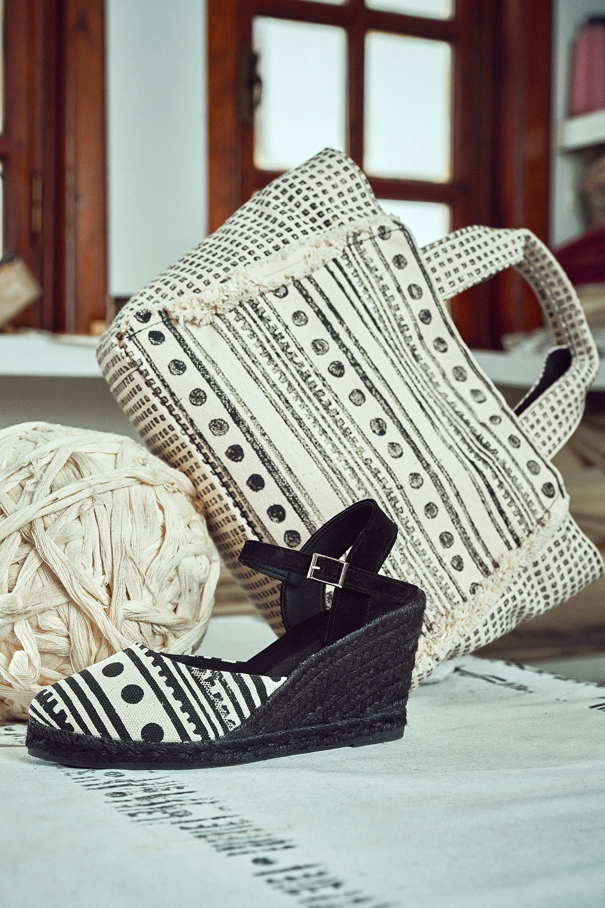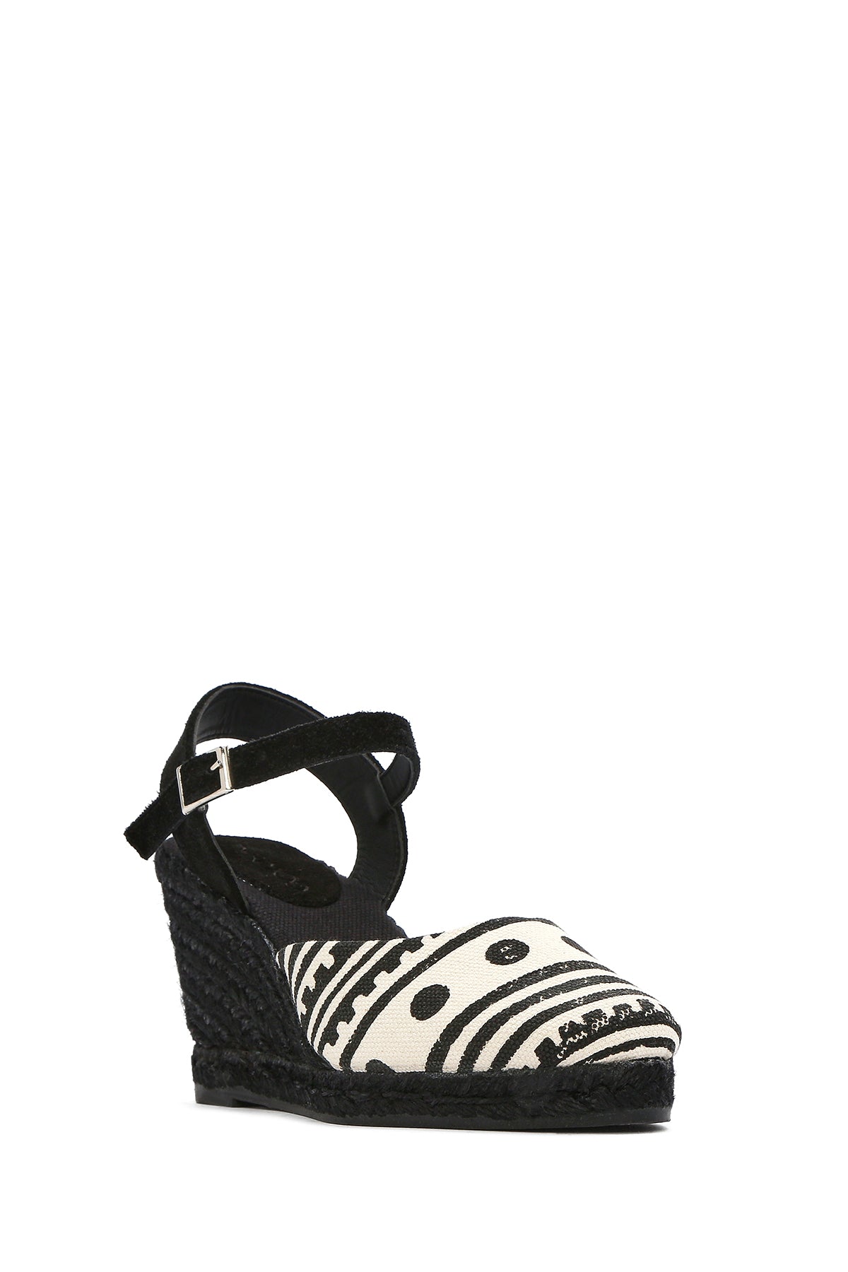Derimod’un Zarifliği ve Şıklığı bir arada sunan Kastamonu Taş Baskı Kadın Siyah Desenli Dolgu Topuklu Espadril Sandalet ile tarzınızı konuşturun. Ürünün kodu: 25SFD20846F 02