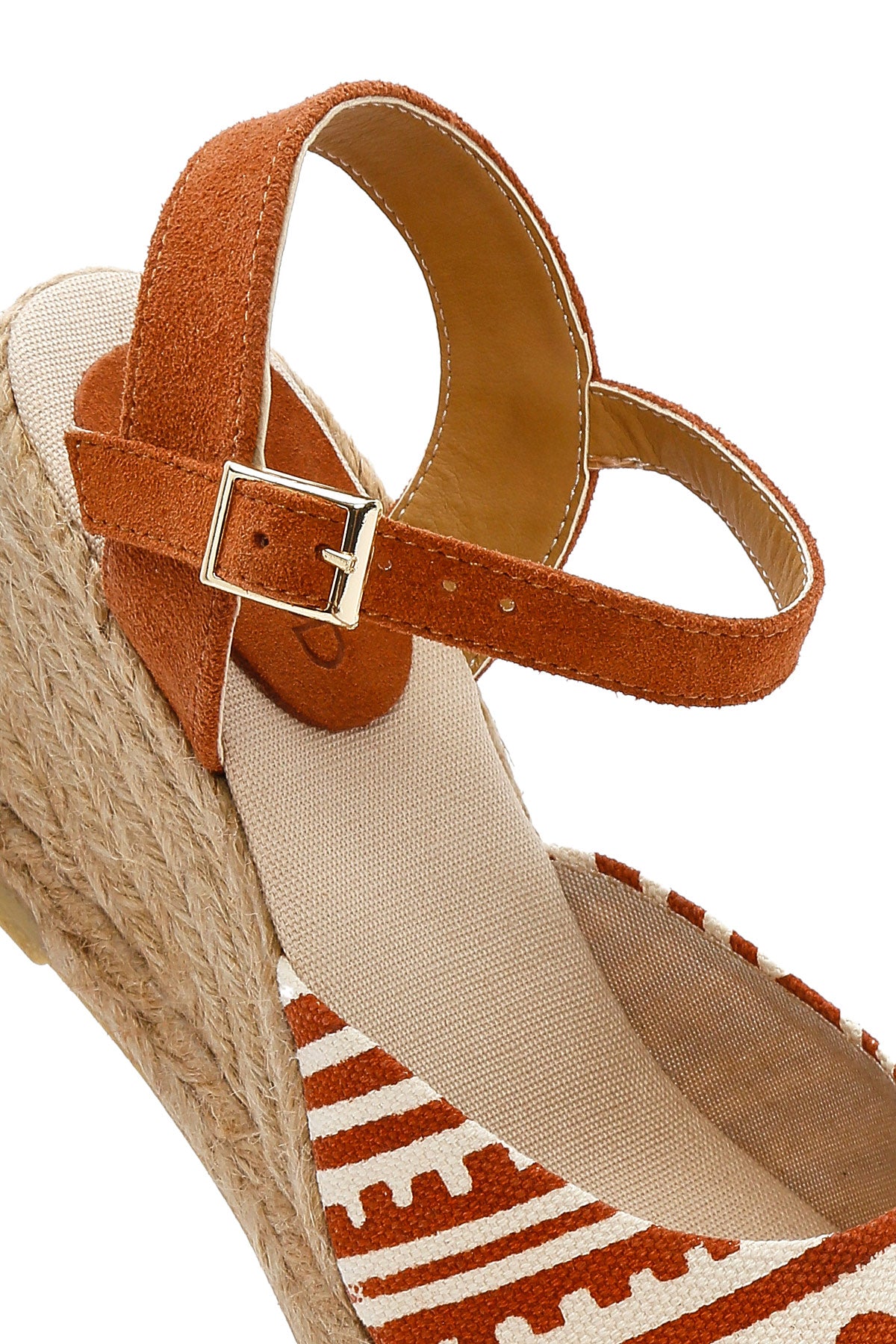 Derimod’un Zarifliği ve Şıklığı bir arada sunan Kastamonu Taş Baskı Kadın Taba Desenli Dolgu Topuklu Espadril Sandalet ile tarzınızı konuşturun. Ürünün kodu: 25SFD20846F KR2