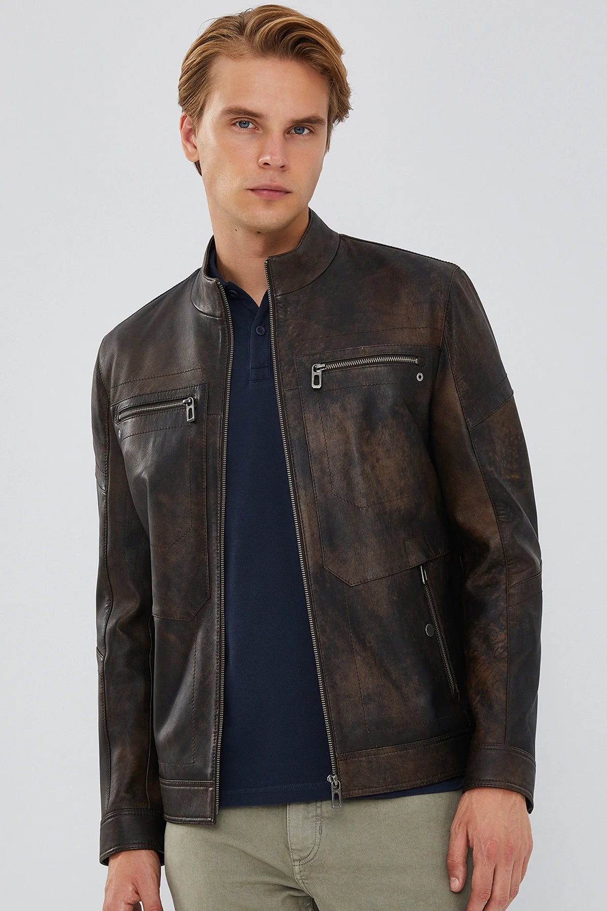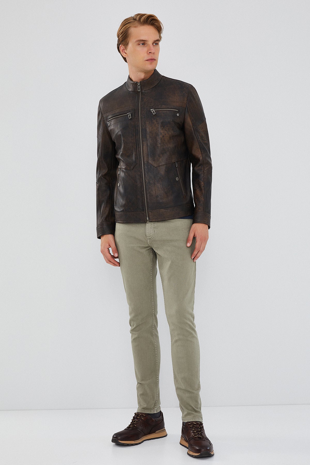 Kimmich Erkek Kahverengi Vintage Deri Ceket ile tarzınıza vintage bir hava katın. Deri malzemeden üretilen bu ceket, dayanıklılığı ve şıklığı bir arada sunuyor. Dış kısmında dört cep ve iç kısmında iki cep ile hem fonksiyonel hem de şık bir seçenek. Fermuarlı kapama sistemi ve hakim yaka tasarımı, cekete modern bir dokunuş katıyor. Regular/Standart kalıbı sayesinde rahat bir kullanım sağlar. Kimmich Erkek Kahverengi Vintage Deri Ceket, gardırobunuza zamansız bir parça eklemek isteyenler için ideal bir seçim.