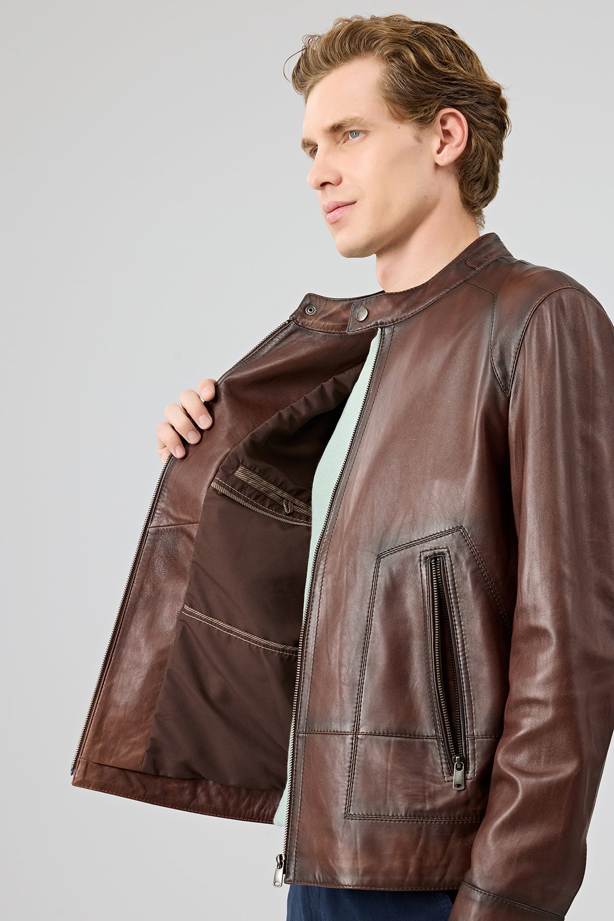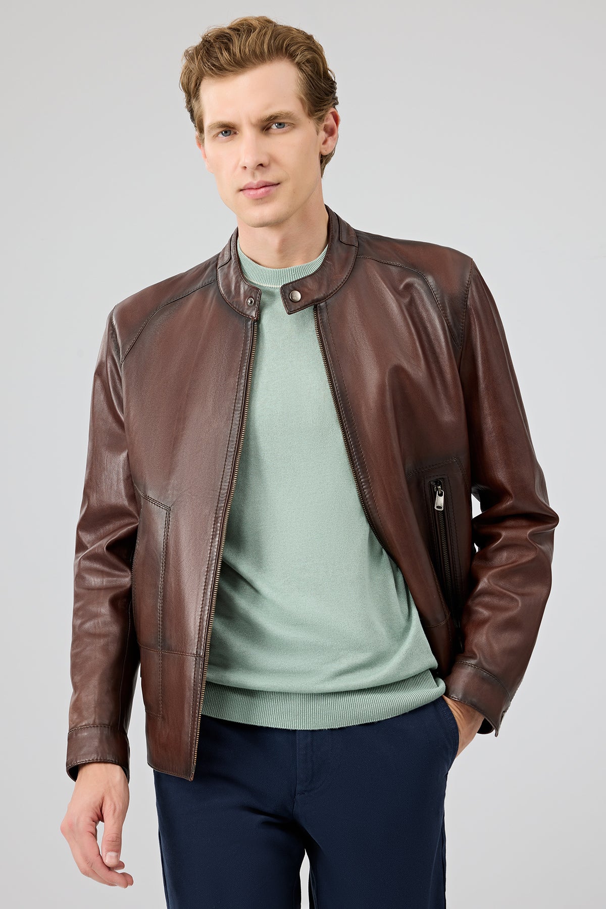 Derimod’un Zarifliği ve Şıklığı bir arada sunan King Erkek Kahverengi Hakim Yaka Deri Ceket ile tarzınızı konuşturun. Ürünün kodu: 25WGE6580NC IR