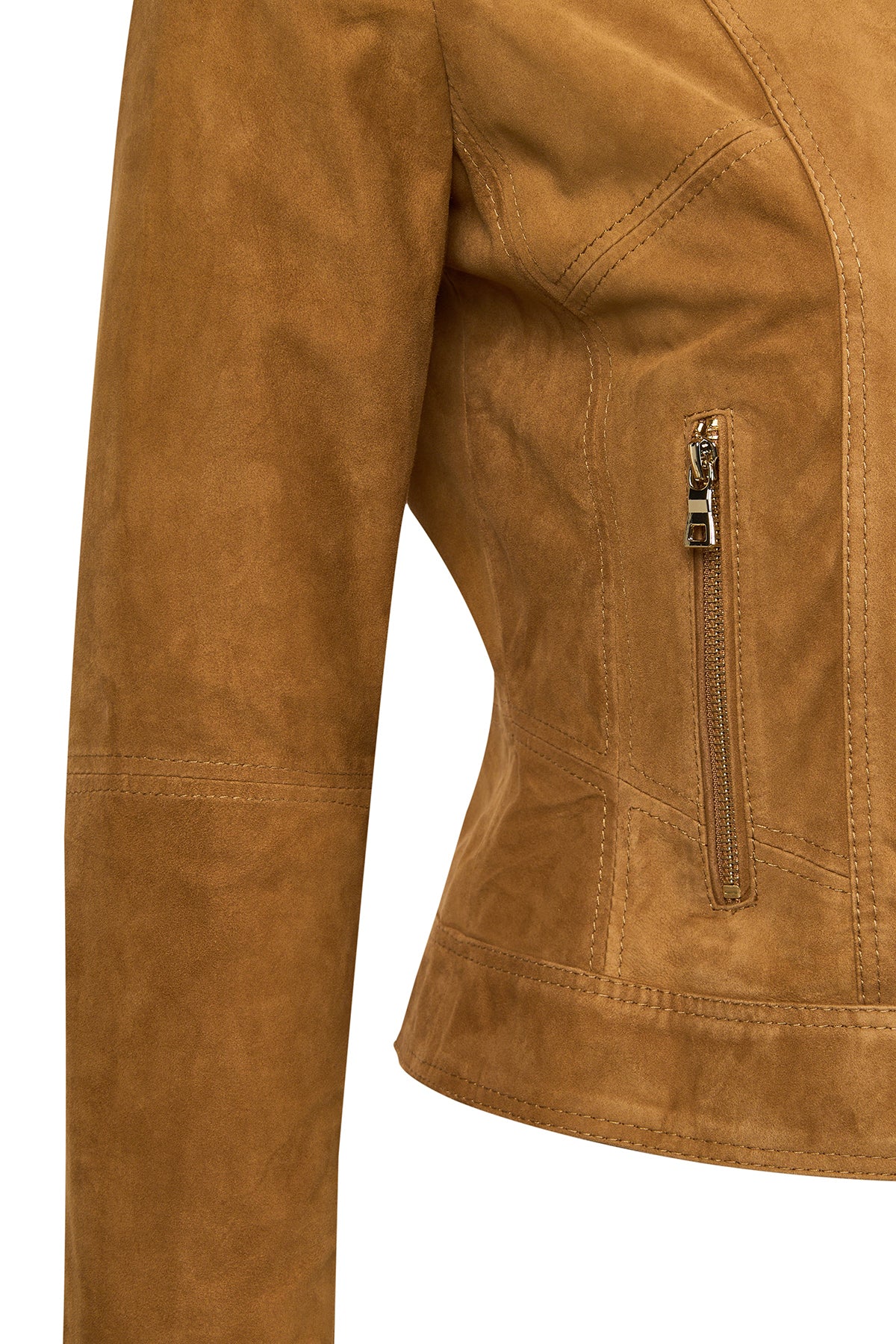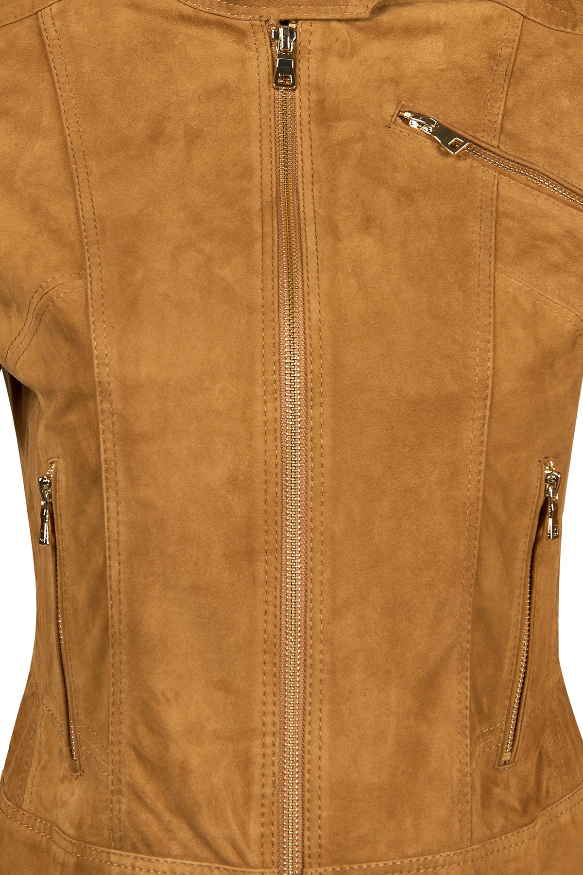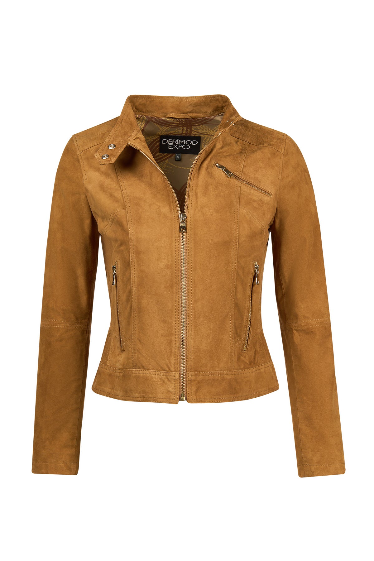 Kylie Kadın Camel Hakim Yaka Kısa Süet Deri Ceket
