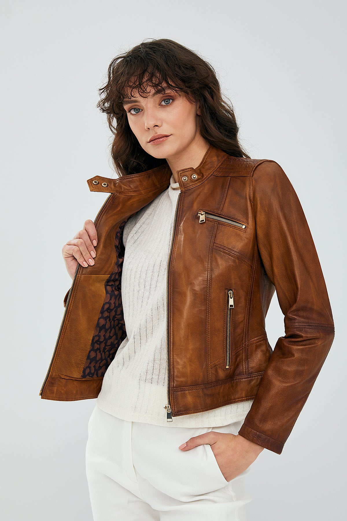 Derimod’un Zarif ve Şıklığı bir arada sunan Kylie Kadın Camel Deri Ceket ile tarzınızı konuşturun. Ürünün kodu: 20SGE5352NC L5