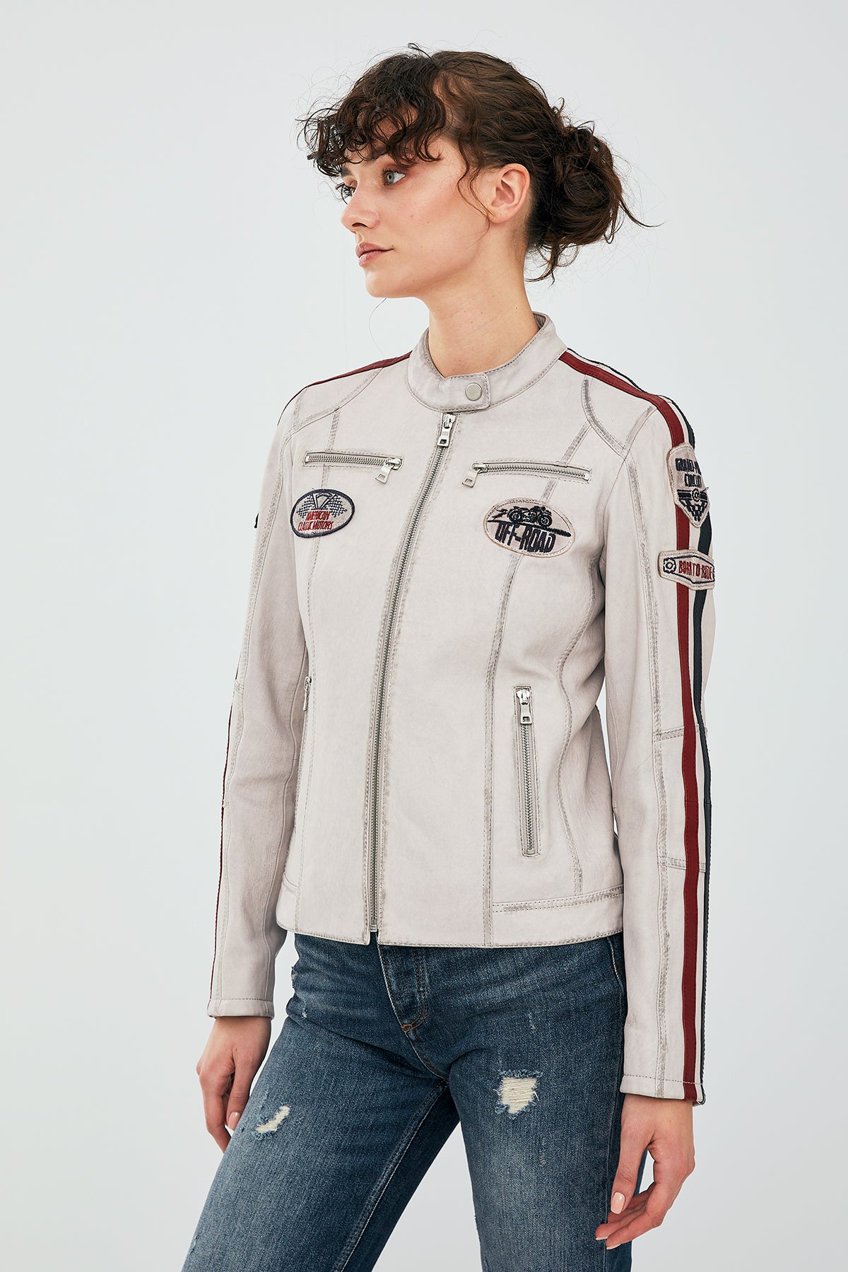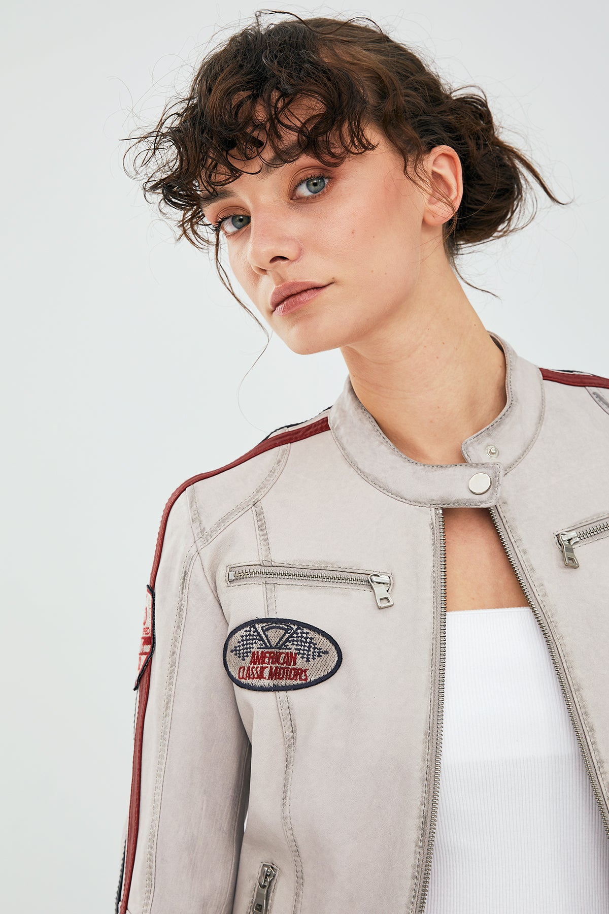 Ladyracer Kadın Beyaz Armalı Spor Deri Mont