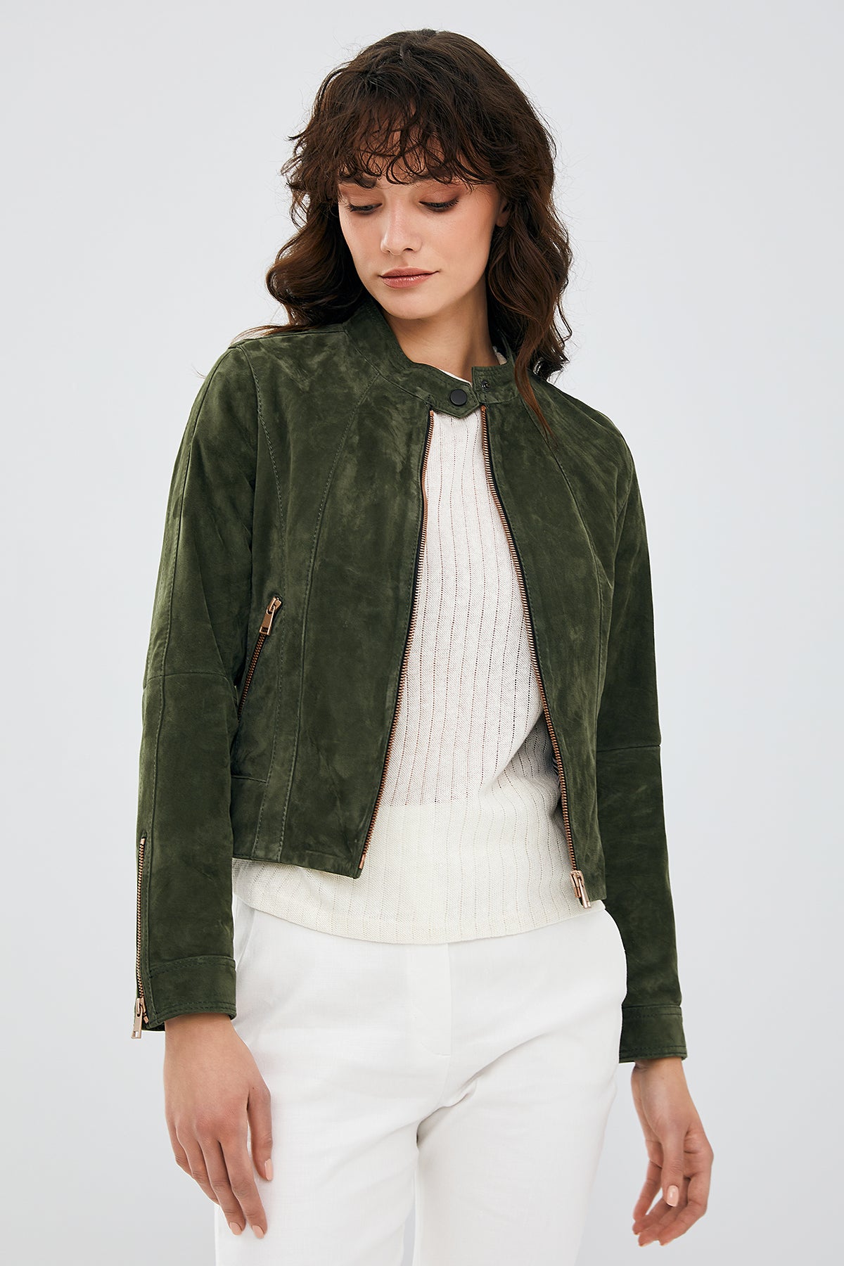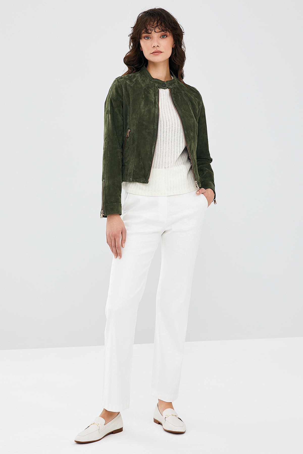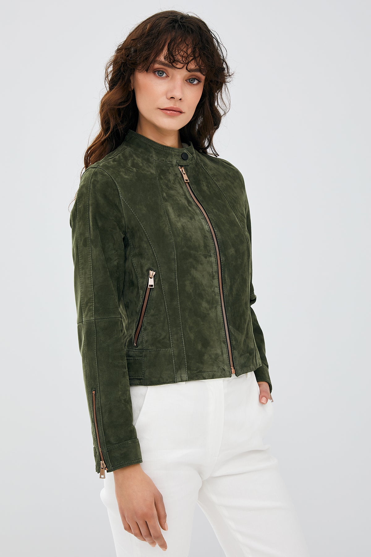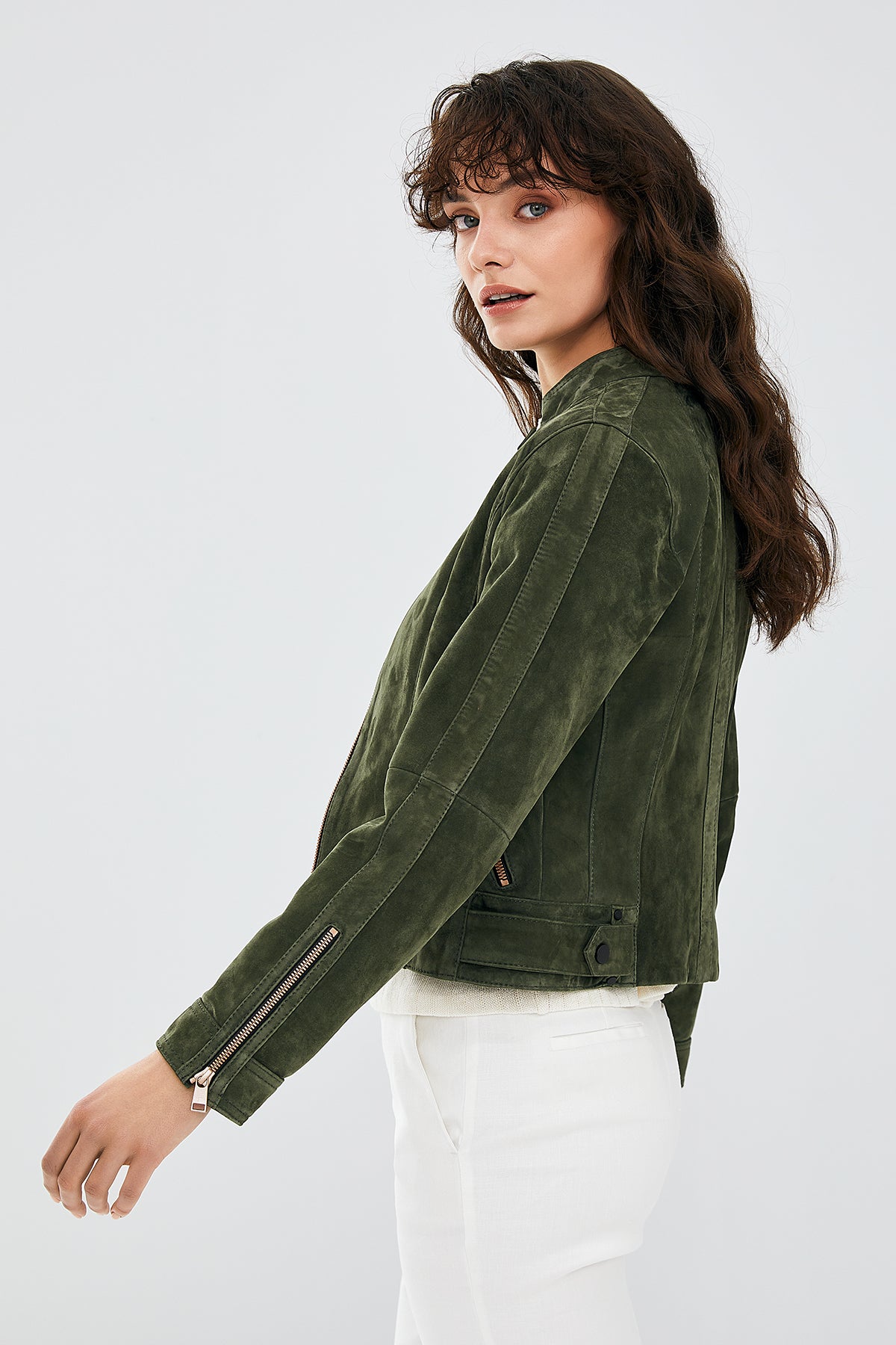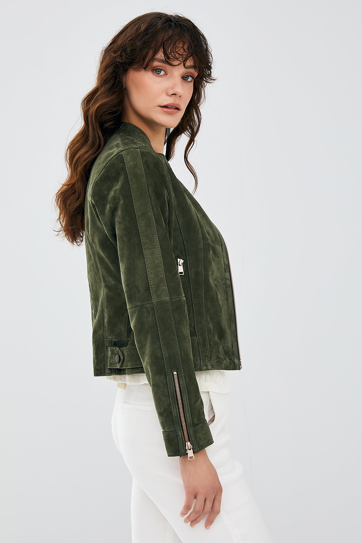 Laura Kadın Haki Süet Deri Ceket