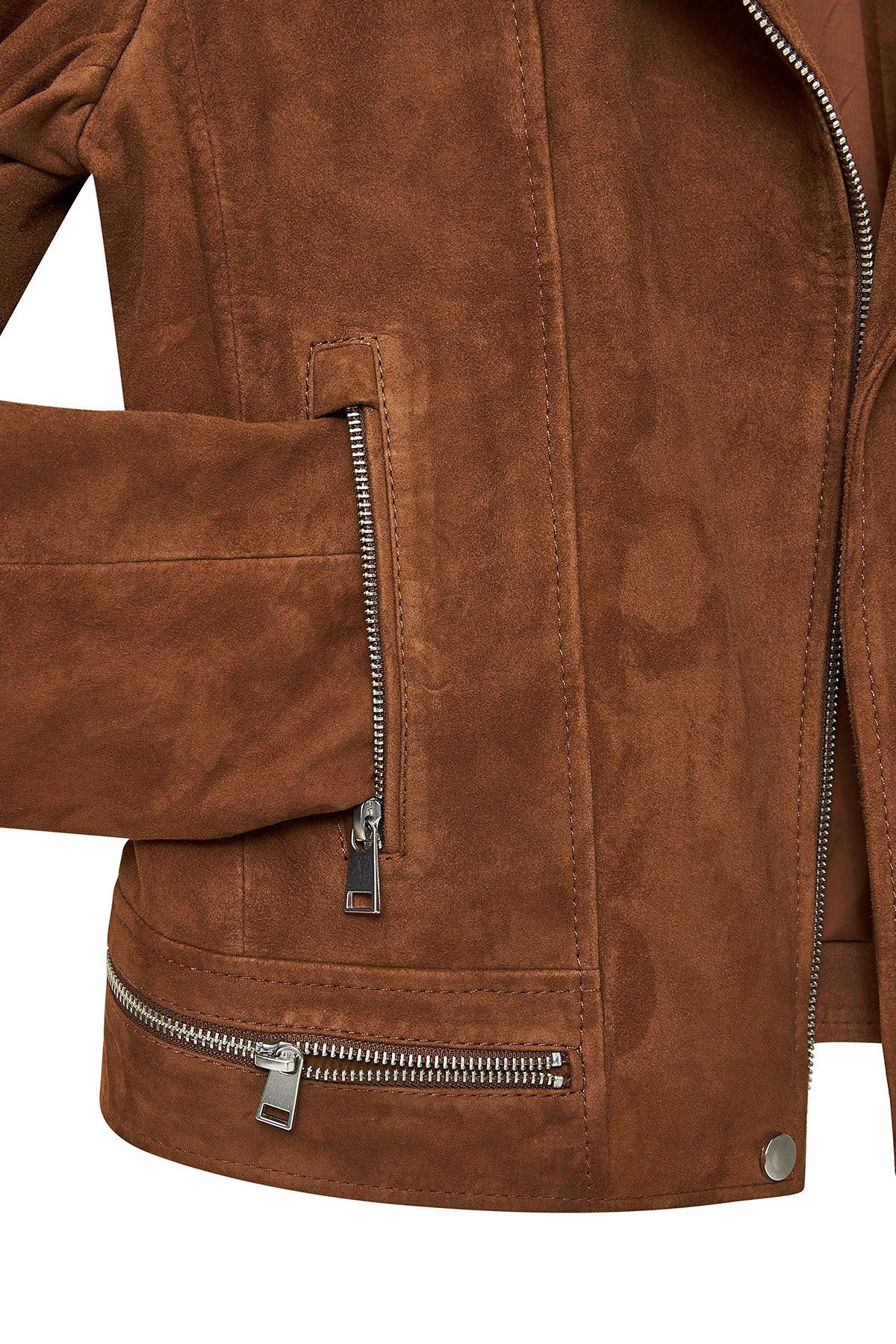 Derimod’un Zarifliği ve Şıklığı bir arada sunan Layla Kadın Kahverengi Biker Süet Deri Ceket ile tarzınızı konuşturun. Ürünün kodu: 24WGD52841B BR