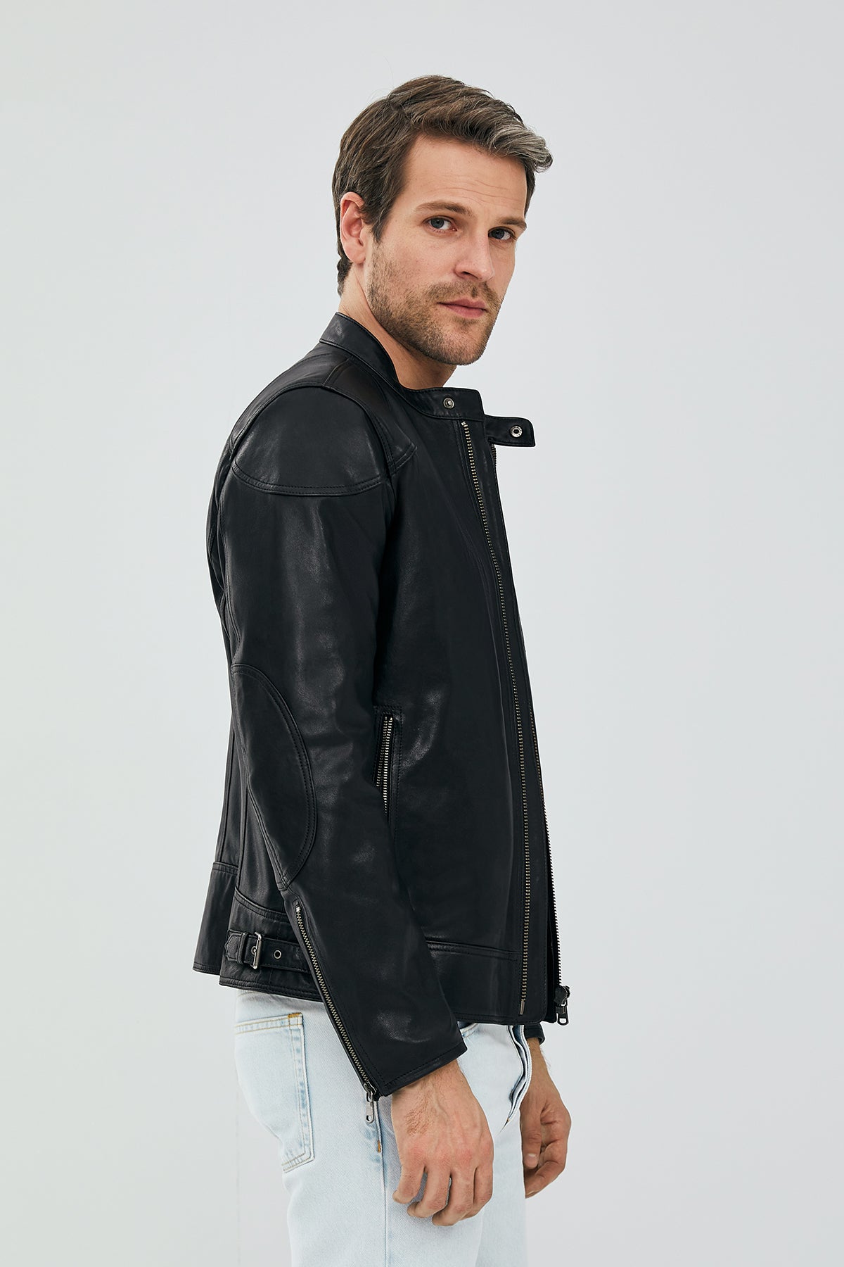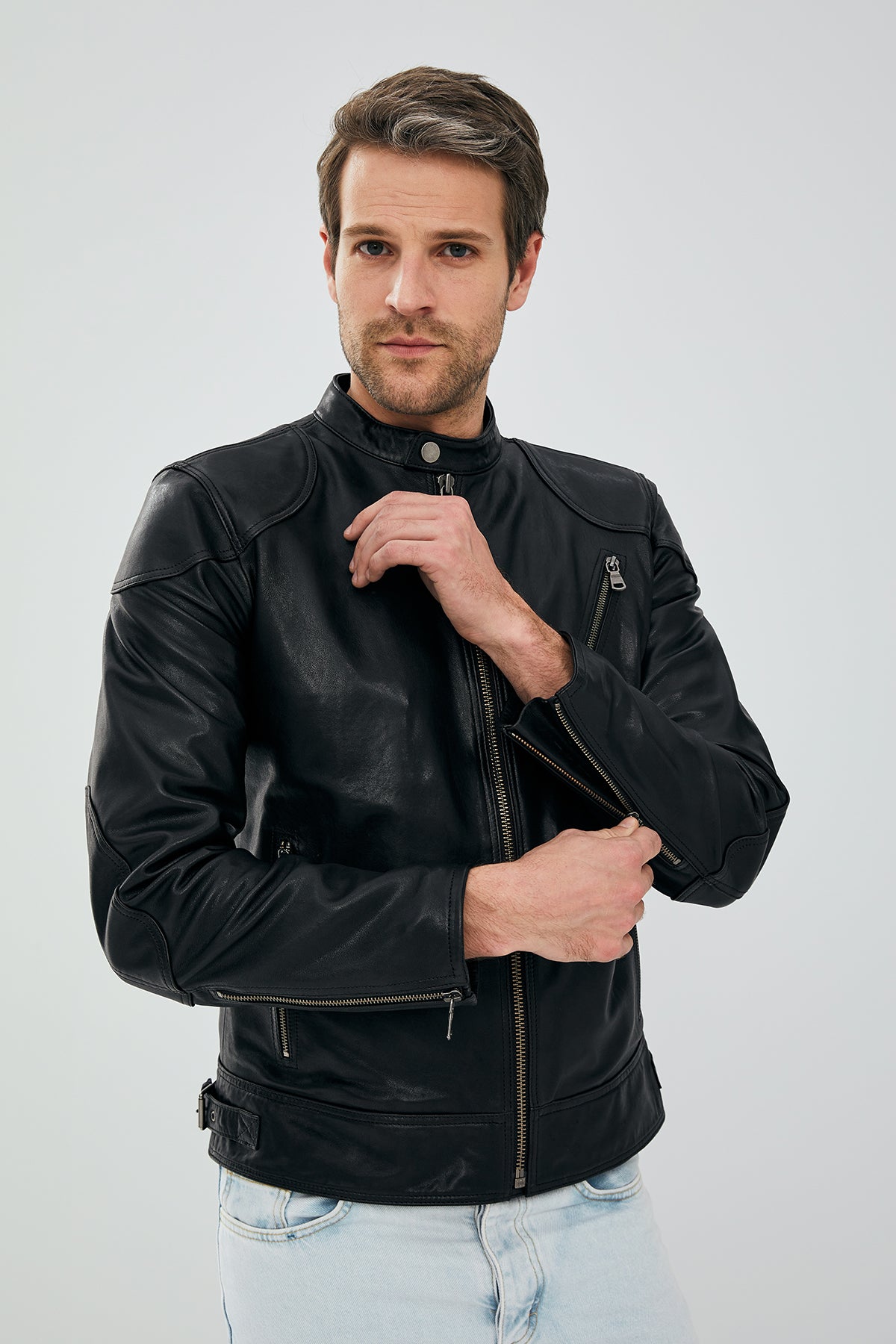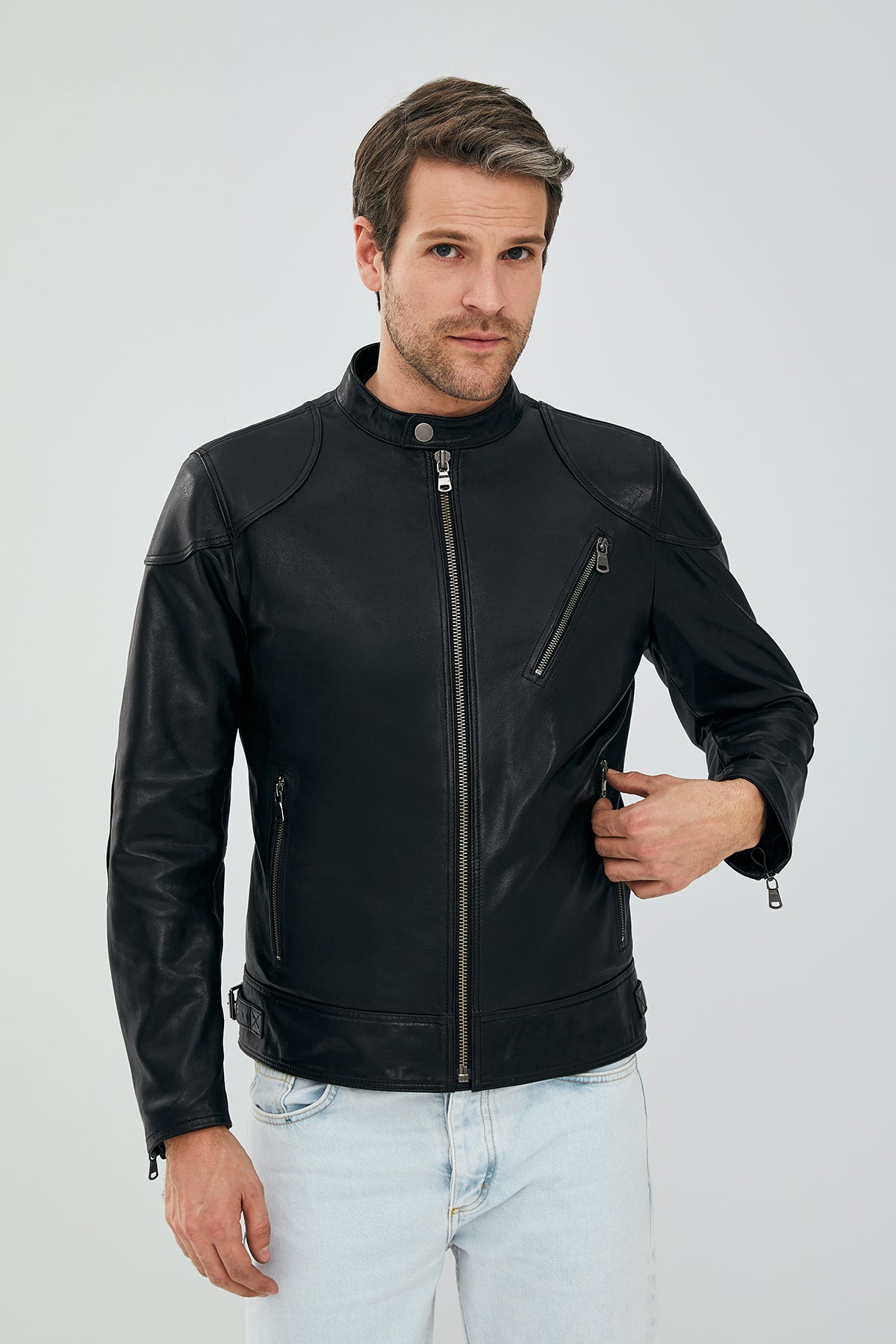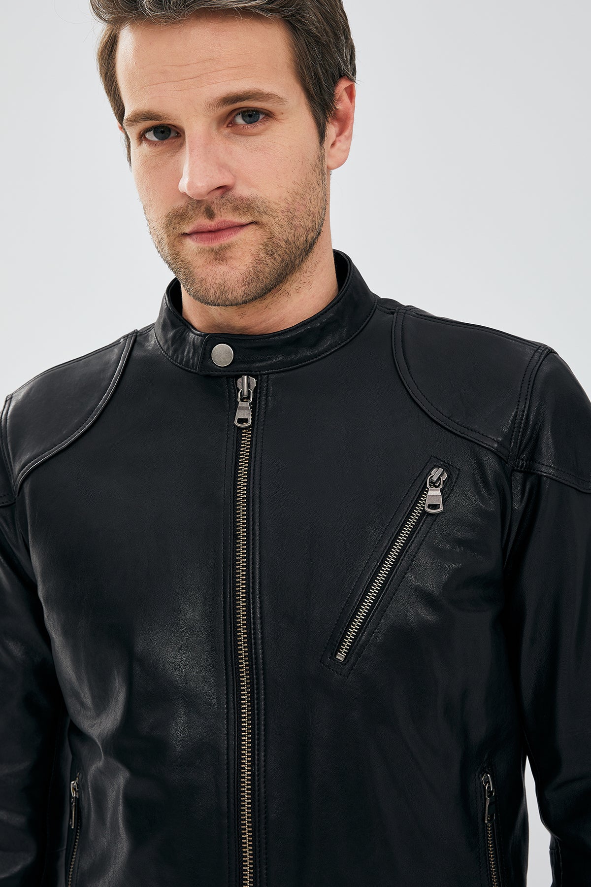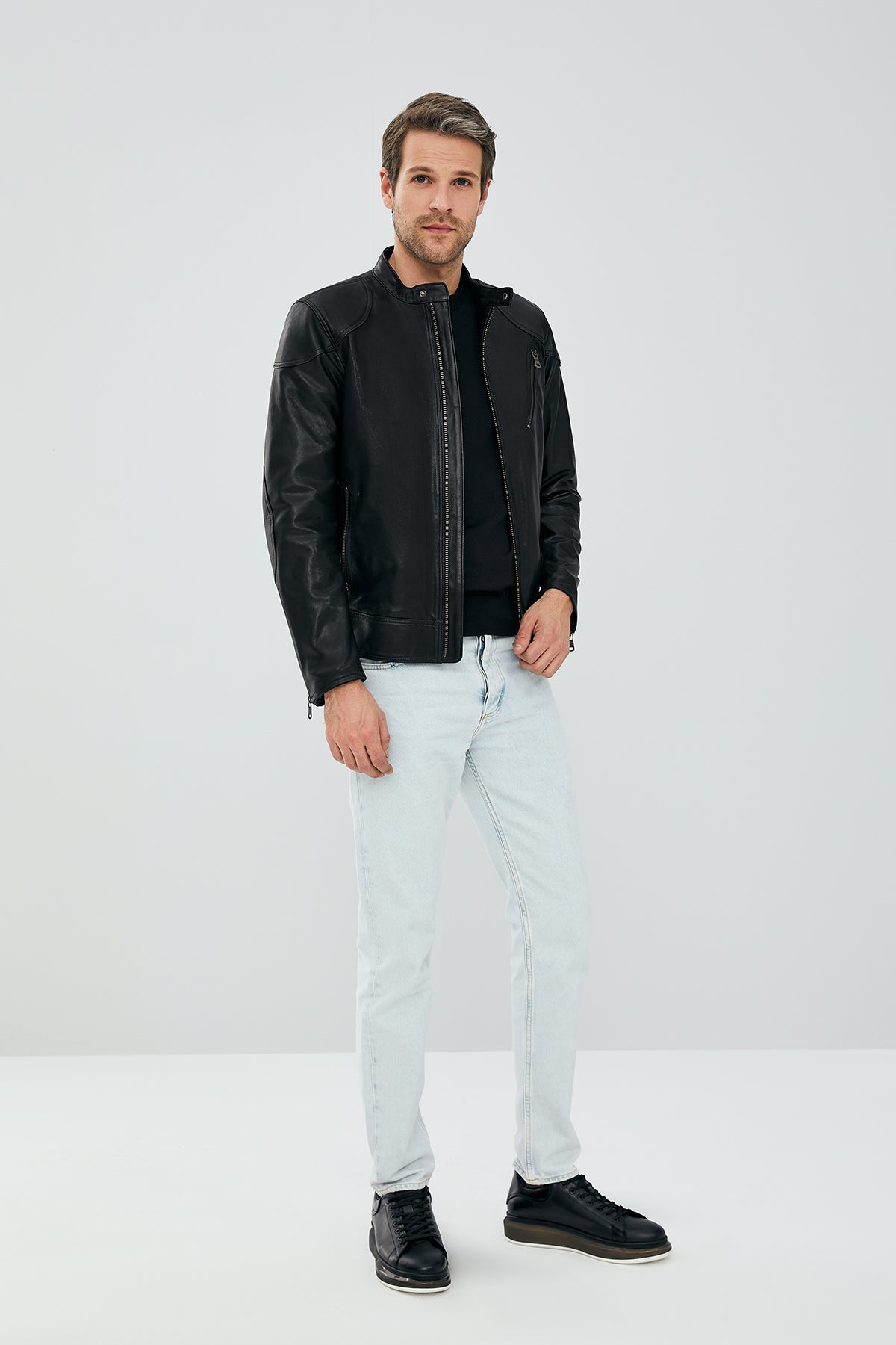 Lebron Erkek Siyah Slim-Fit Deri Ceket