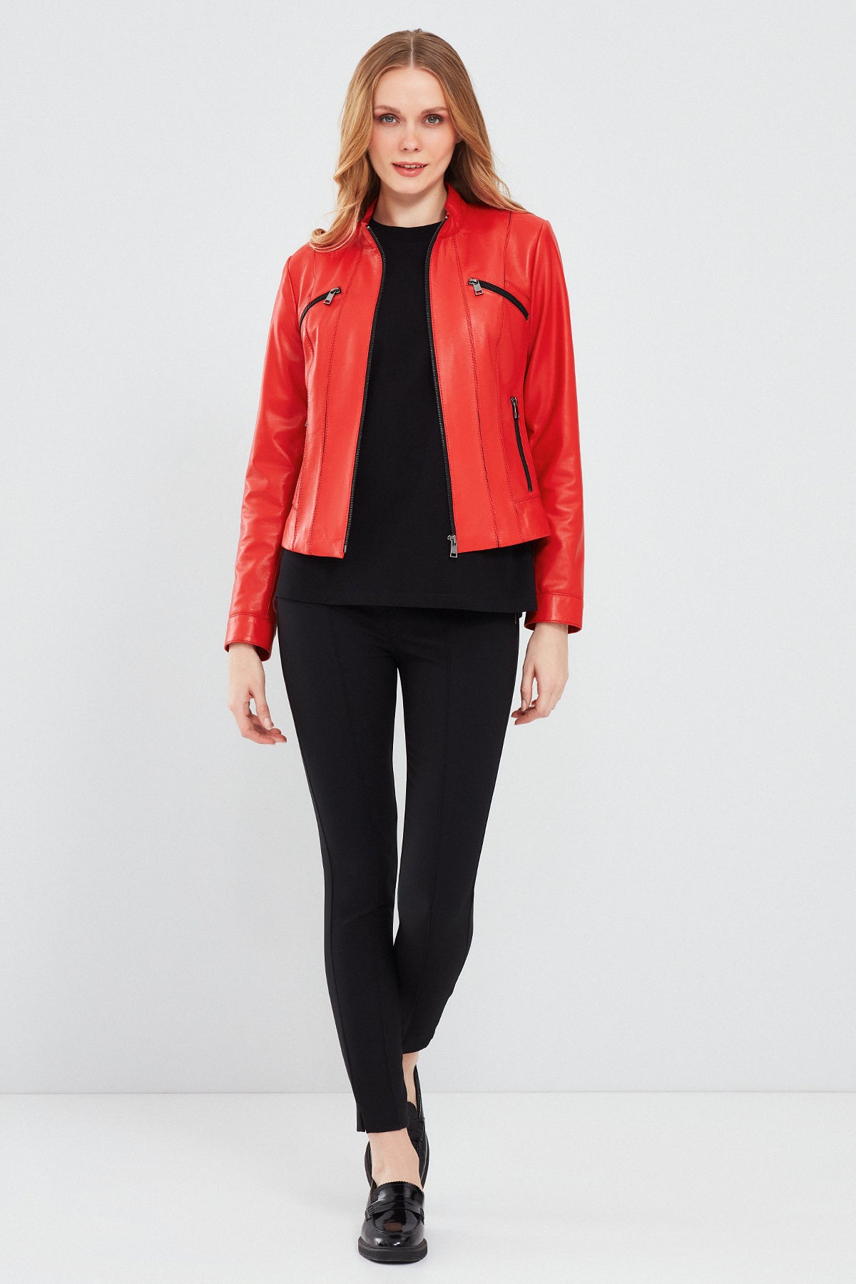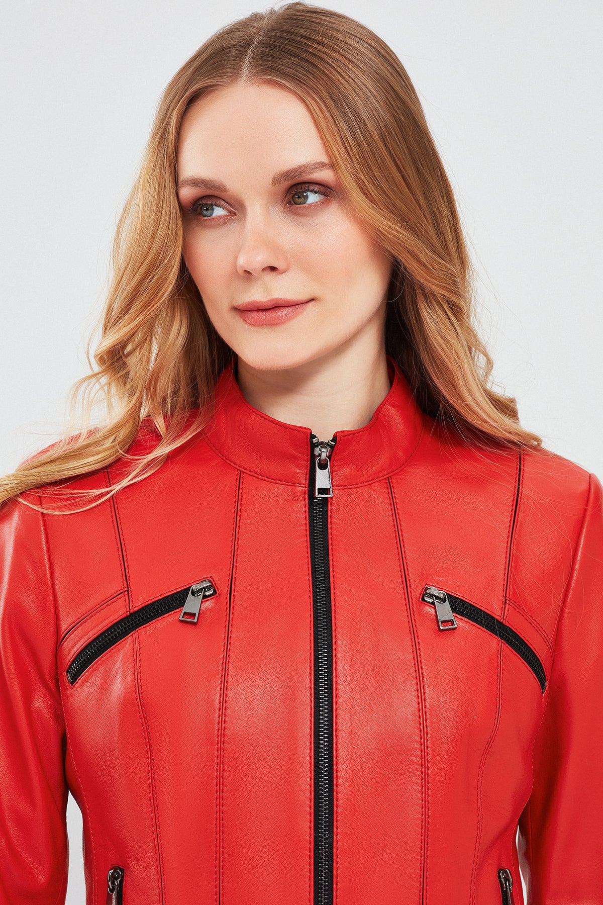 Linda Kadın Kırmızı Kısa Deri Ceket, cesur ve şık tasarımıyla dikkat çeken bir dış giyim ürünüdür. %100 deri materyali ile üretilmiş olan bu ceket, kalite ve dayanıklılığı bir araya getiriyor. Standart kalıbı sayesinde her bedene uyum sağlayarak rahat bir kullanım sunar. Dört dış cebi ile pratik bir tasarım sunan Linda ceket, fermuarlı kapama özelliği ile hem güvenli hem de kolay bir kullanım sağlar. Hakim yaka tasarımı, cekete modern bir dokunuş katıyor. Parlak kırmızı rengi ile öne çıkan bu kısa deri ceket, tarzınıza enerjik ve sofistike bir hava katacaktır. Hem gündelik kombinlerinizde hem de özel günlerde rahatlıkla tercih edebileceğiniz bu ceketle, her daim dikkatleri üzerinize çekeceksiniz. Ürünün kodu: 24SGD5200U4 RA