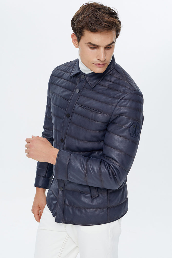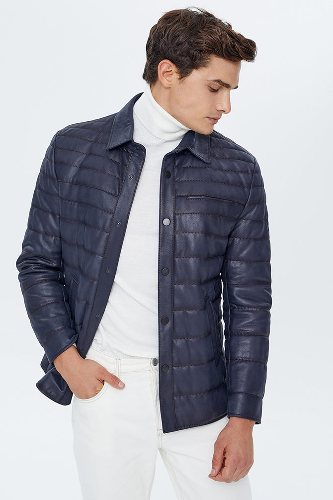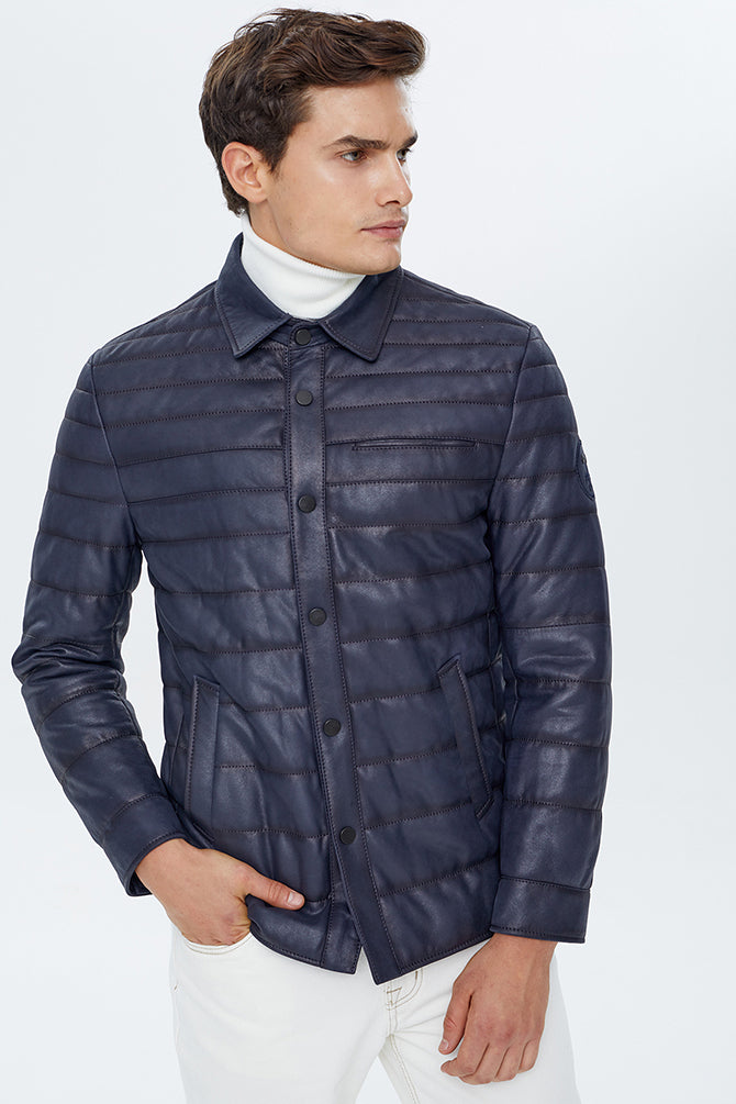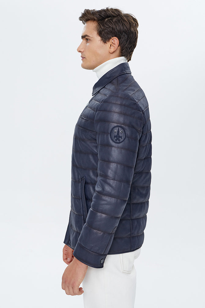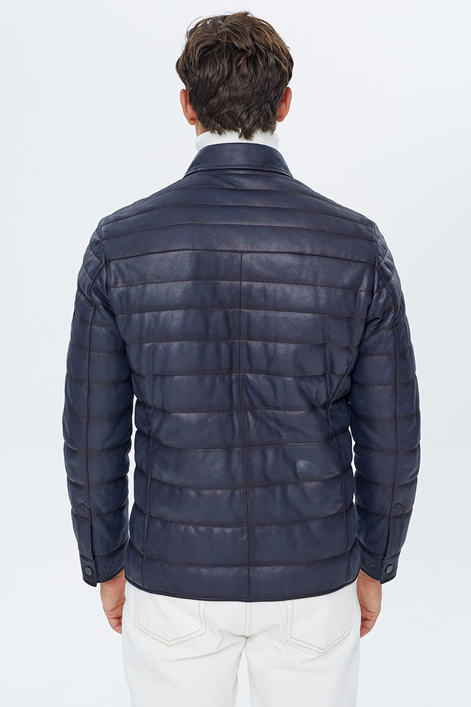 Locatelli Erkek Lacivert Nubuk Şişme Deri Ceket