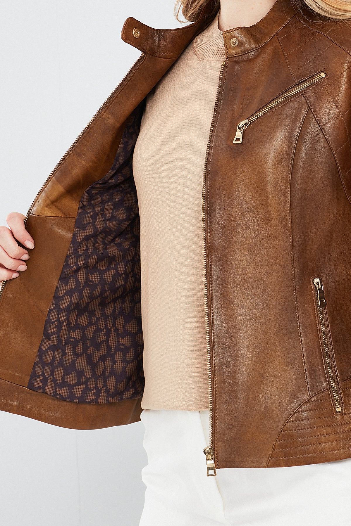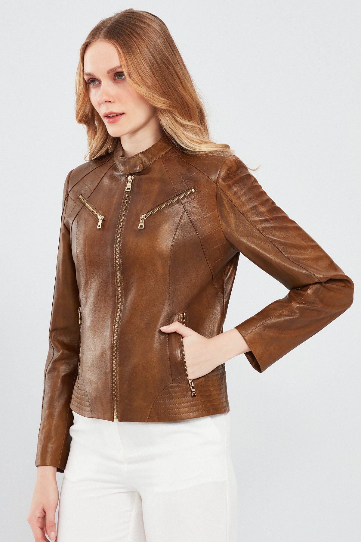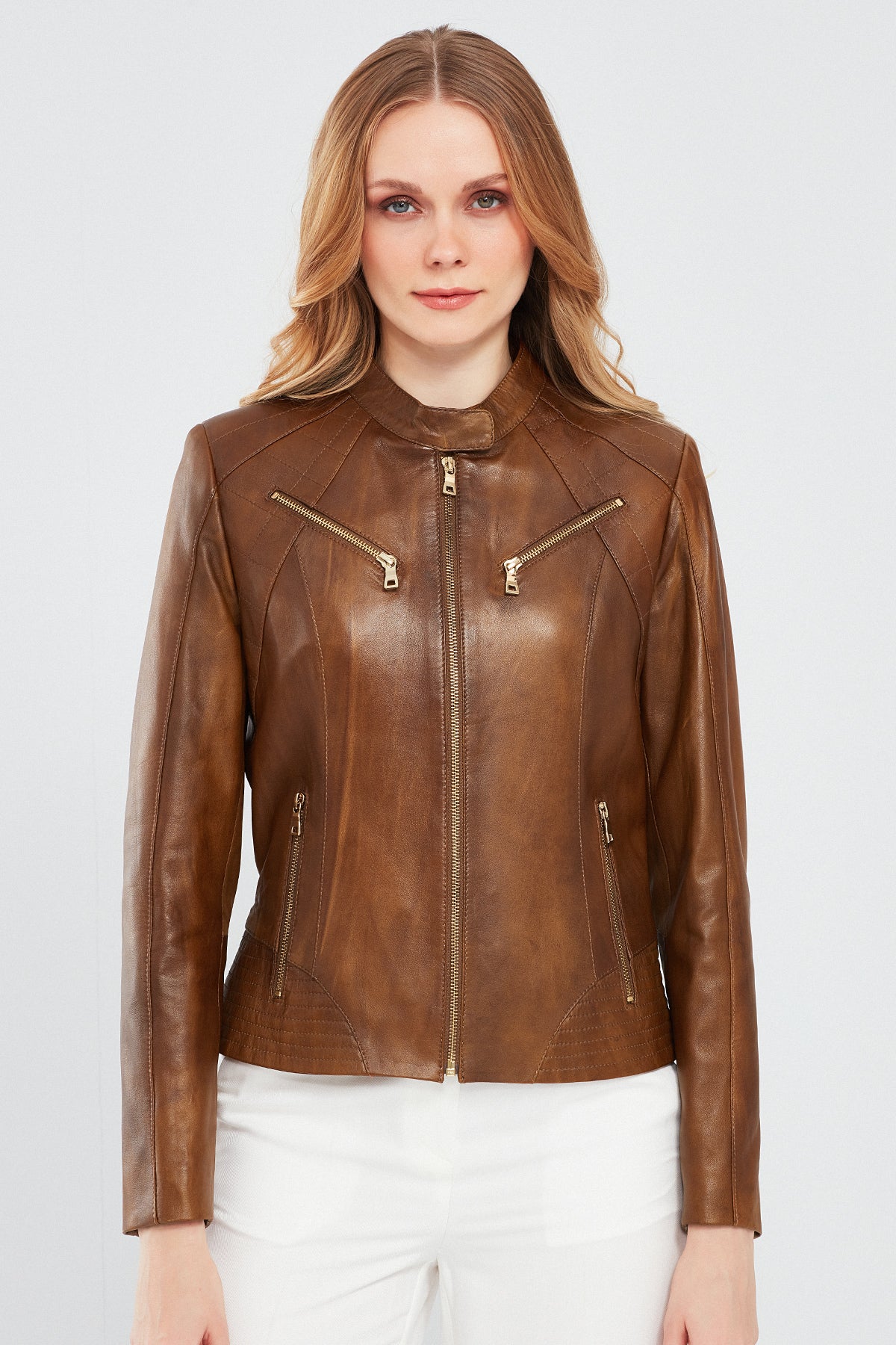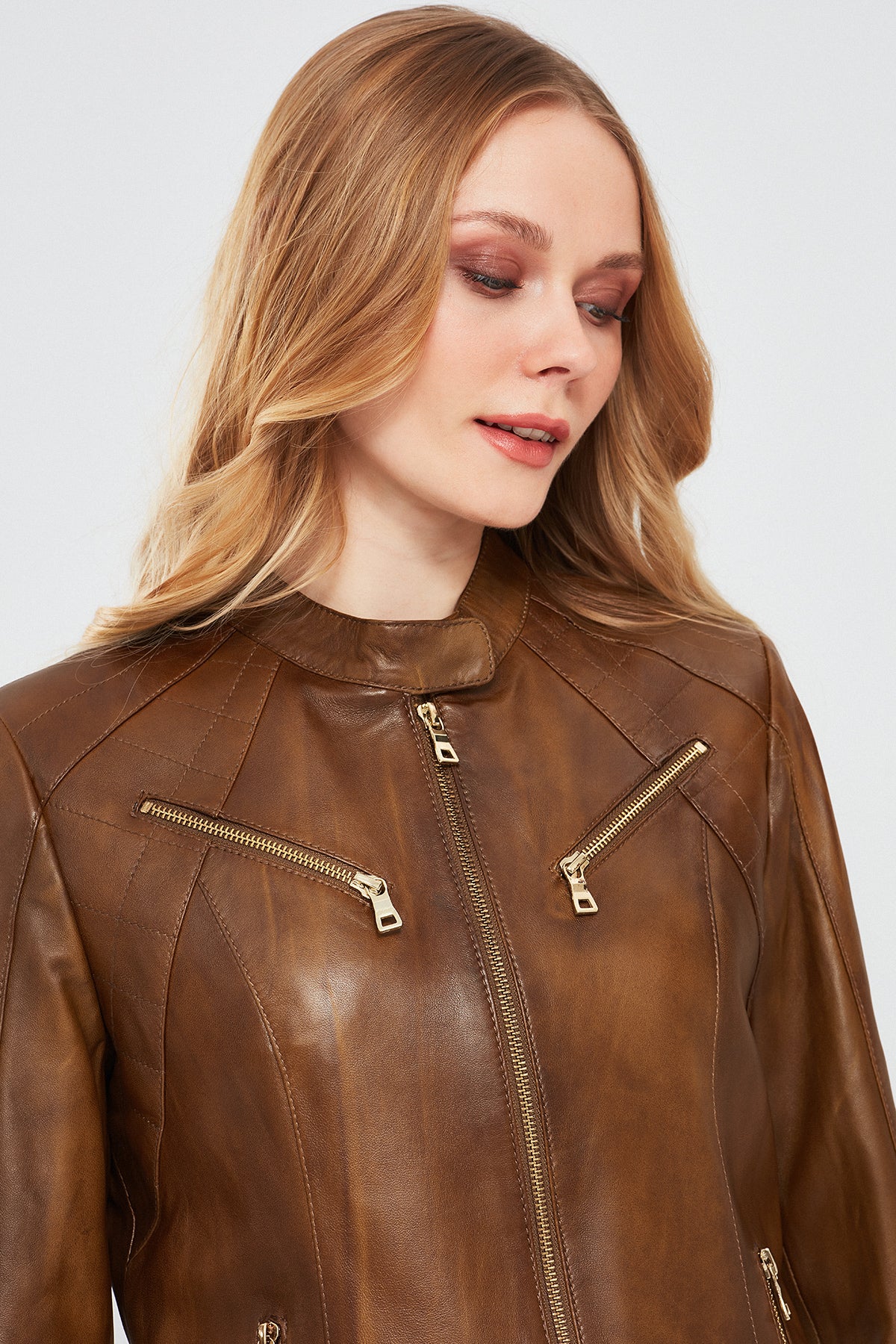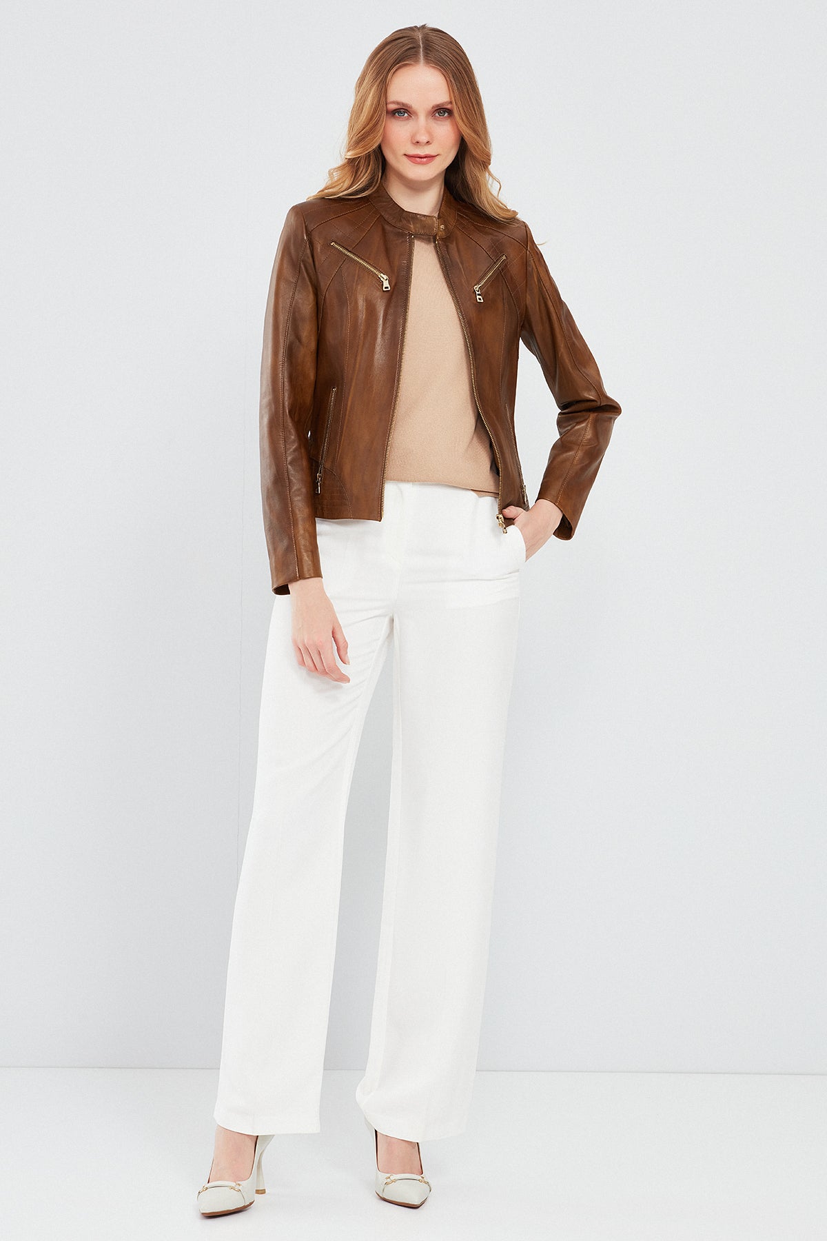 Lucky Kadın Camel Spor Kısa Deri Ceket