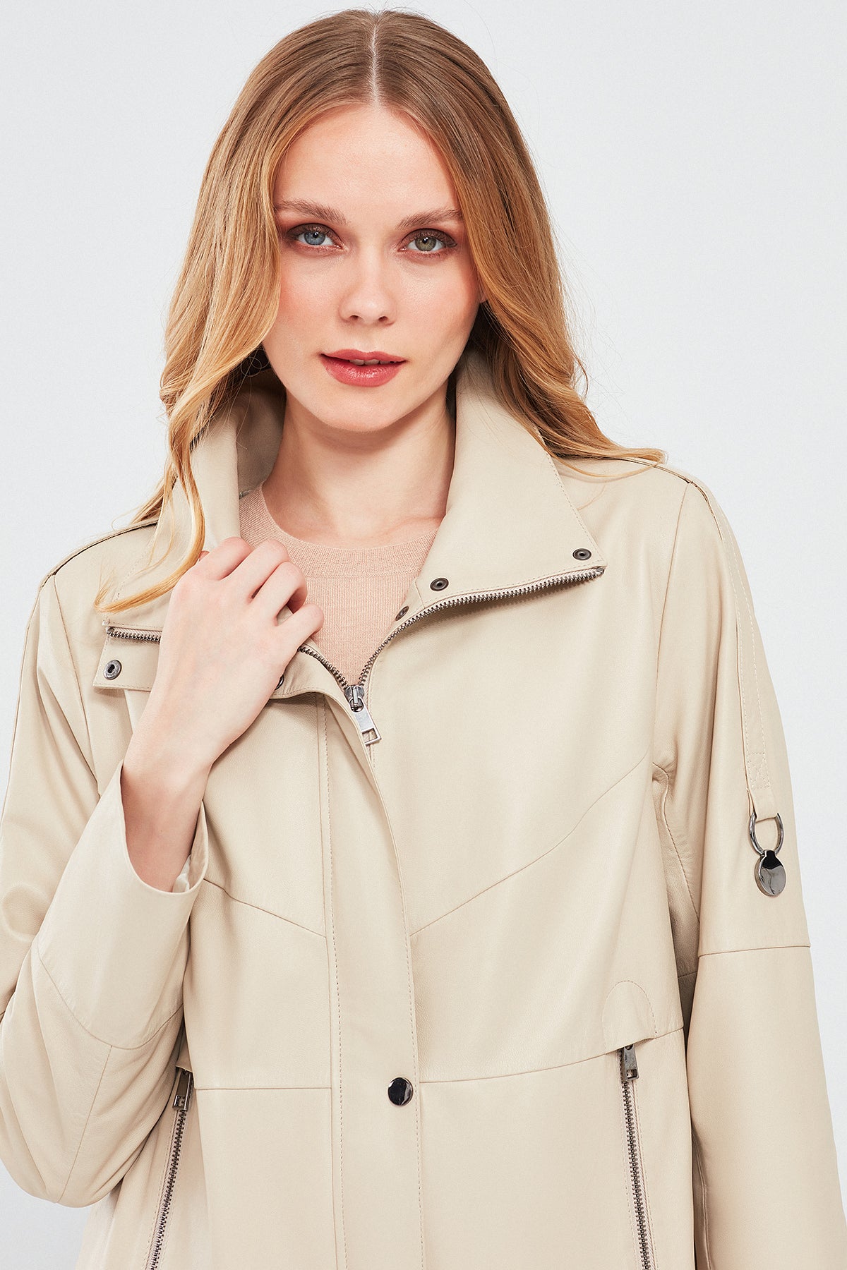 Derimod'un Luisa Kadın Bej Oversize Deri Montu, modern bir tarzı yansıtırken rahatlığı da ön planda tutar. Yüksek kaliteli deri malzemesiyle üretilen bu mont, oversize kesimiyle dikkat çeker. Bej rengi, soft ve şık bir ton içerir, kombinlerinizde kolayca kullanabilirsiniz. Çıtçıt ve fermuarlı kapama detayı, montu pratik bir şekilde giymenizi sağlarken, devrik yaka detayı da tarzınıza farklılık katıyor. Luisa Kadın Bej Oversize Deri Mont, günlük kullanımdan özel günlerdeki kombinlerinize kadar geniş bir kullanım alanı sunar. Derimod kalitesiyle tasarlanan bu mont, şıklığı ve rahatlığı bir arada arayanların tercihi olacak.