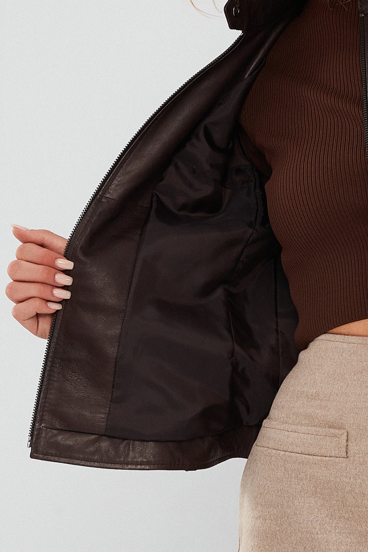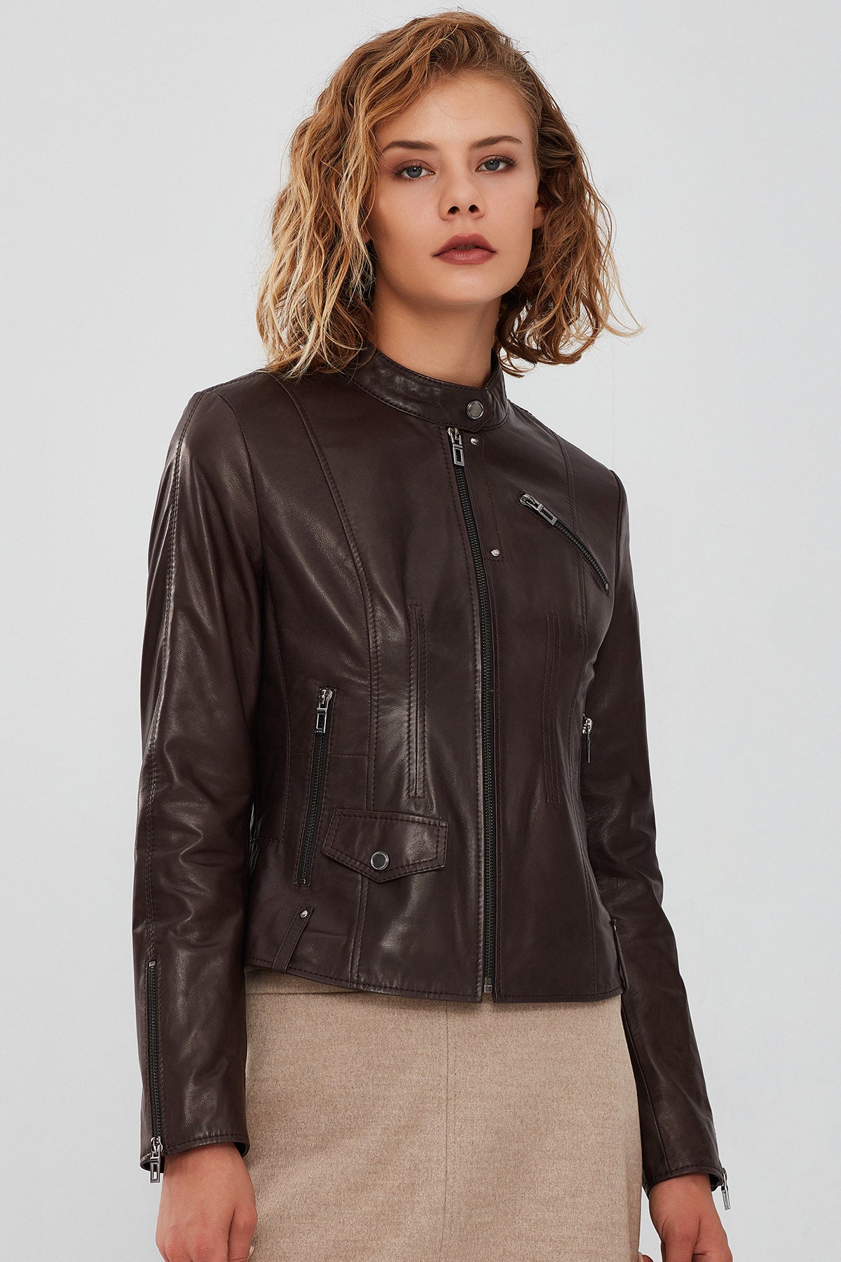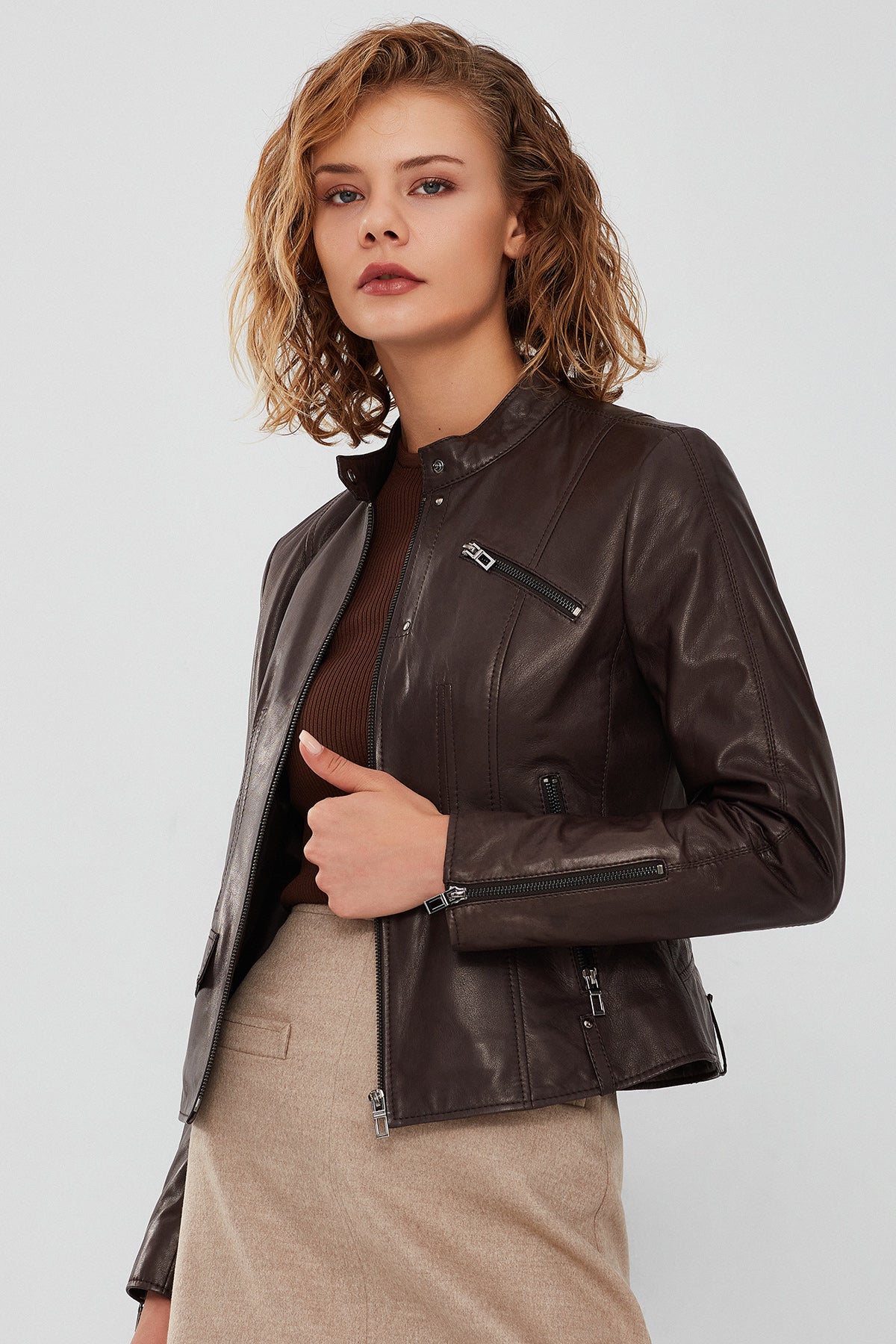 Madison Kadın Kahverengi Kısa Deri Ceket, zarif ve modern tasarımıyla dikkat çekiyor. Yüksek kaliteli deri materyalden üretilmiş bu ceket, hem dayanıklılığı hem de şıklığı bir arada sunar. Fermuarlı kapama sistemi, pratik ve kolay bir kullanım sağlarken, hakim yaka detayı cekete zarif bir hava katıyor. Regular kalıbı sayesinde rahat ve konforlu bir giyim deneyimi sunan Madison Ceket, her bedene uyum sağlar. Kahverengi rengi ile her türlü kıyafetle mükemmel uyum sağlayan bu kısa deri ceket, hem günlük kullanım hem de özel günler için ideal bir seçimdir. Madison Kadın Kahverengi Kısa Deri Ceket ile her zaman şık ve tarz sahibi görüneceksiniz. Ürünün kodu: 23WGD5134VE 22