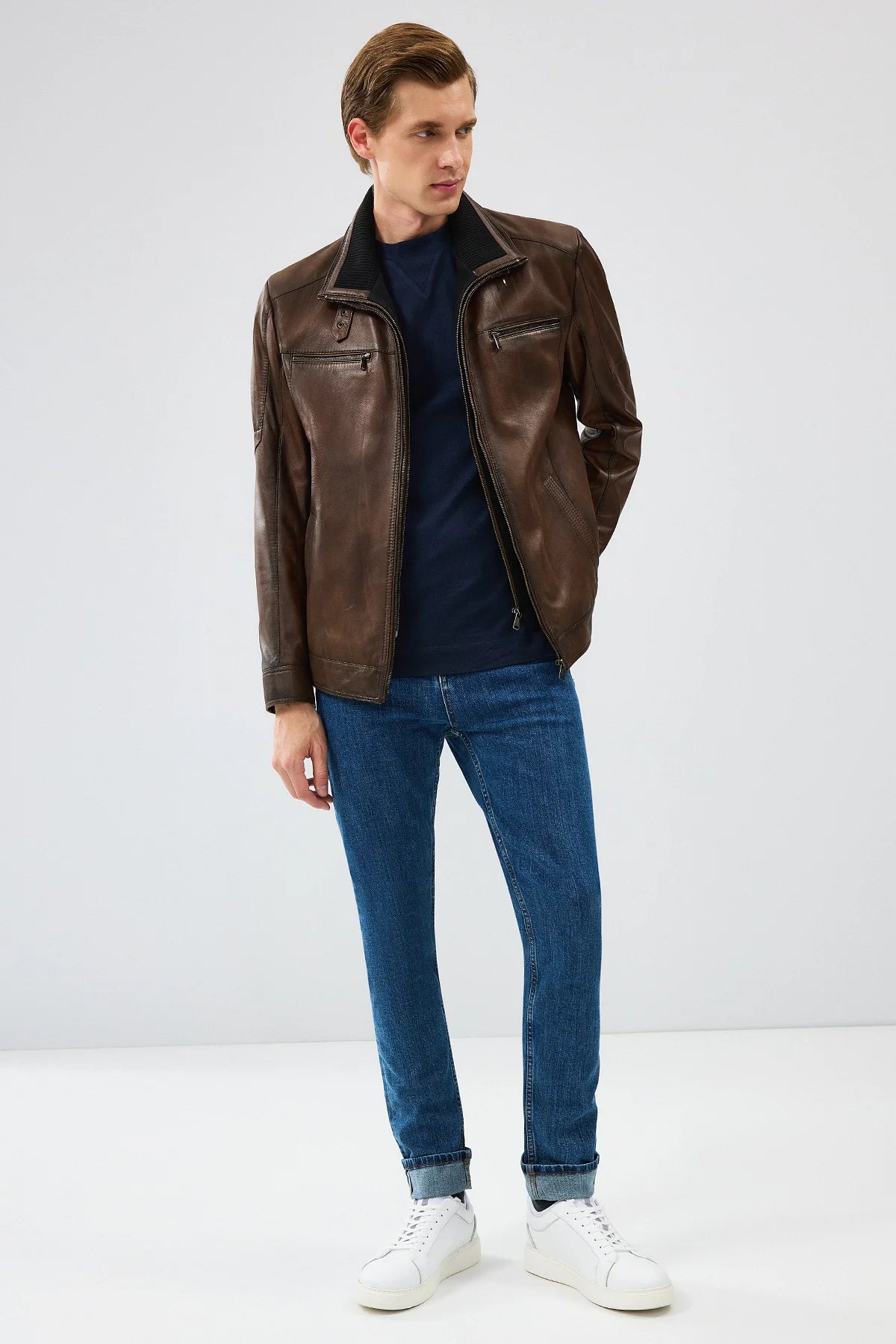Derimod’un Zarifliği ve Şıklığı bir arada sunan Mateo Erkek Kahverengi Deri Ceket ile tarzınızı konuşturun. Ürünün kodu: 24WGE6535NC 25