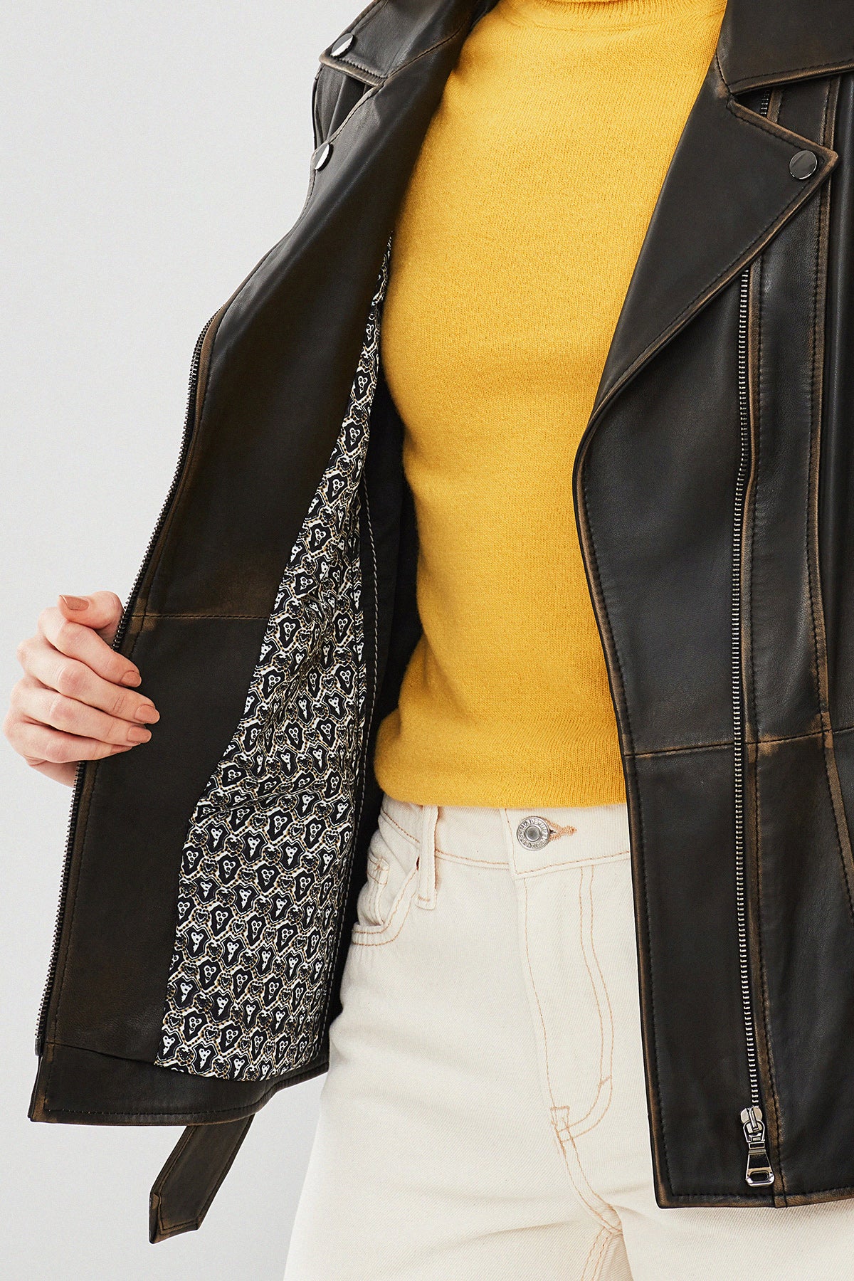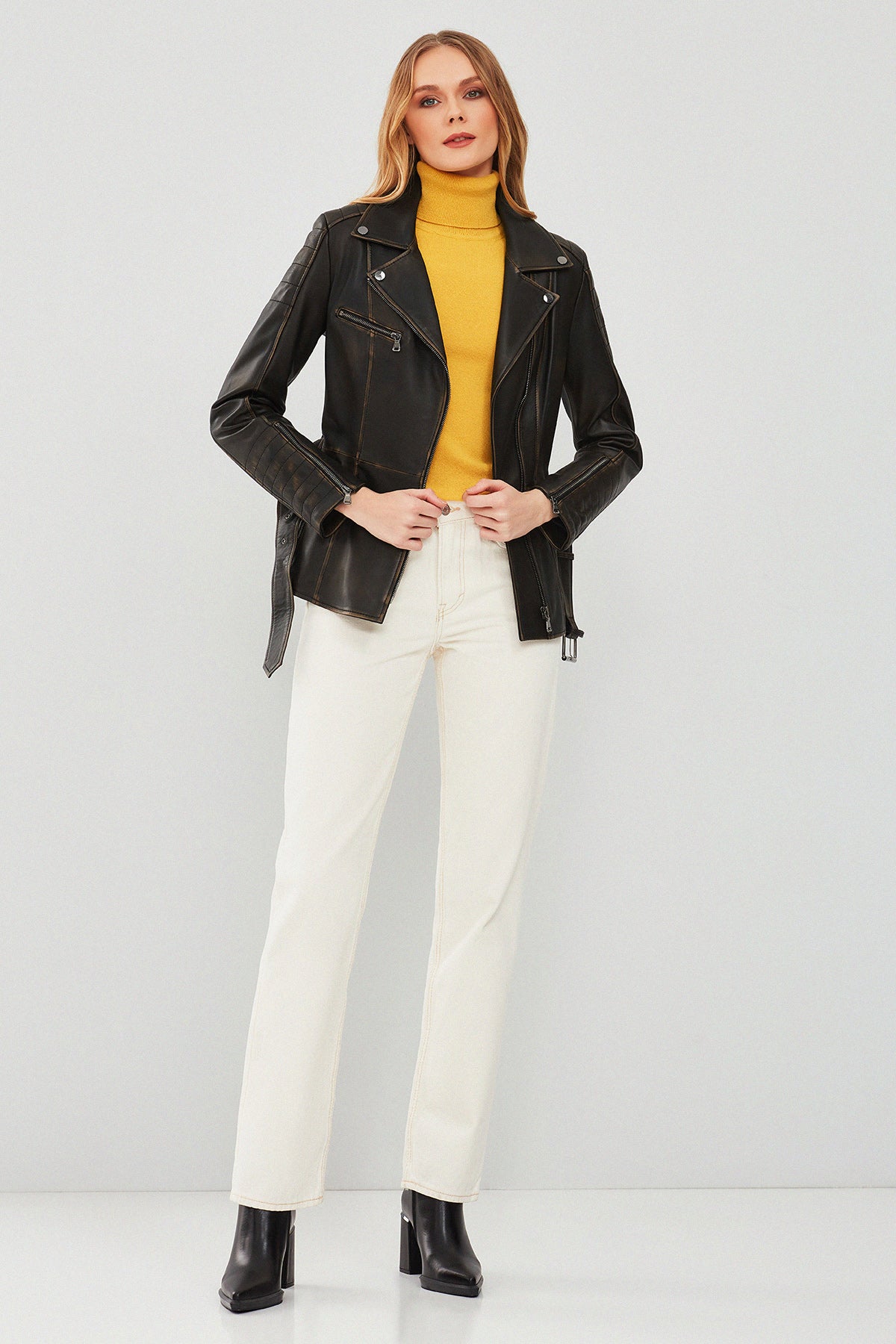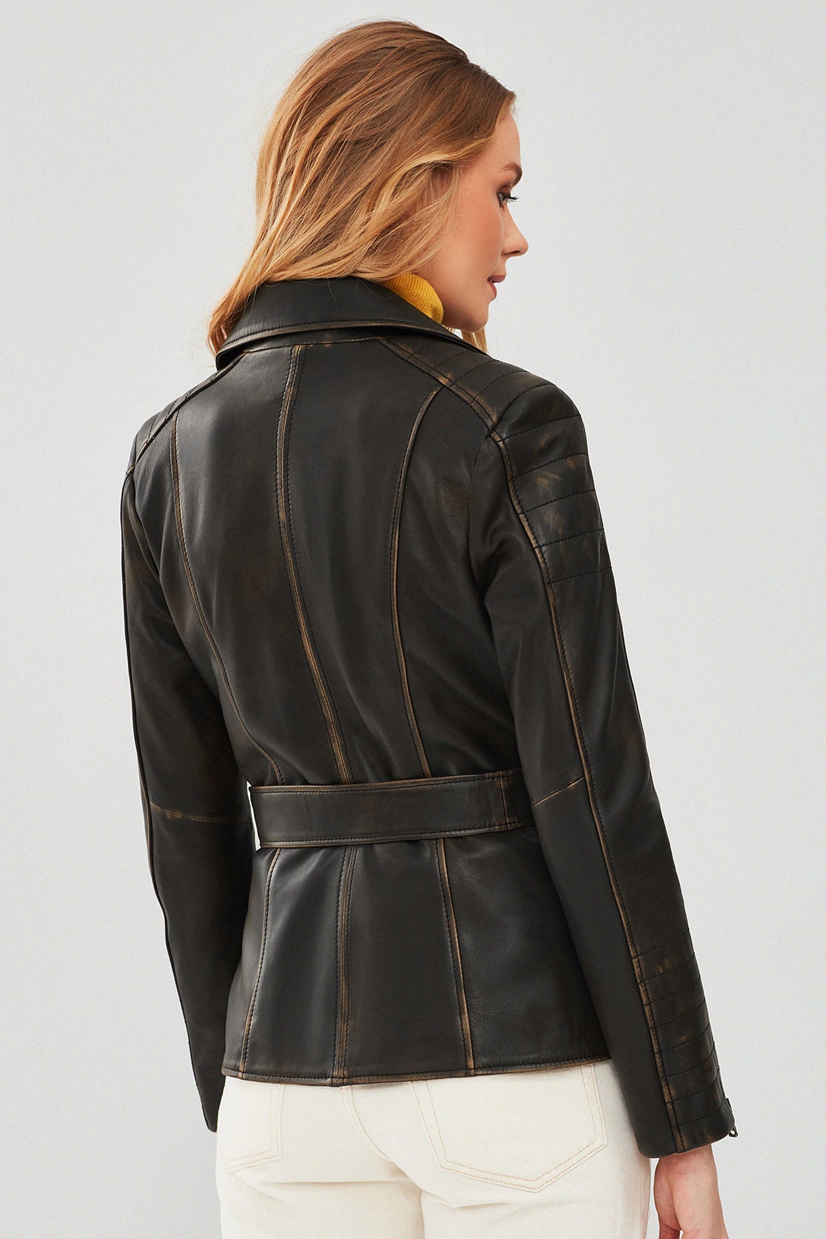 Mayfair Kadın Kahverengi Vintage Uzun Biker Deri Ceket