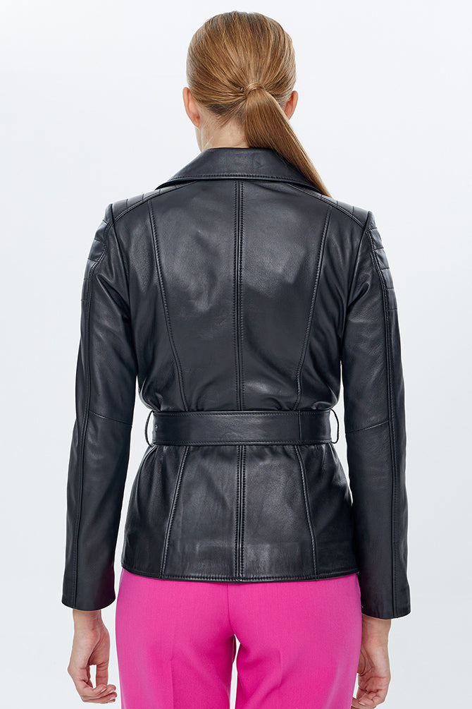 Mayfair Kadın Siyah Uzun Biker Deri Ceket