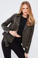 Derimod'un Melody Kadın Yeşil Deri Biker Ceketi, şehrin enerjisiyle biker tarzını birleştiriyor. Yüksek kaliteli deri malzemesiyle üretilen bu ceket, yeşilin tazeliğini ve doğallığını yansıtıyor. Önünde yer alan fermuar detayı, ceketi kullanırken pratiklik sağlarken, biker tarzını da vurguluyor. Kruvaze yaka tasarımı ise modern bir dokunuş katıyor. Belindeki kemer detayı, siluetinizi vurgulayarak feminen bir görünüm sunuyor. Melody Kadın Yeşil Deri Biker Ceket, şehirdeki her anınızda size eşlik edecek şık ve konforlu bir seçenektir. Şehirdeki rüzgarı üzerinizde hissetmek isteyenler için ideal bir tercihtir.