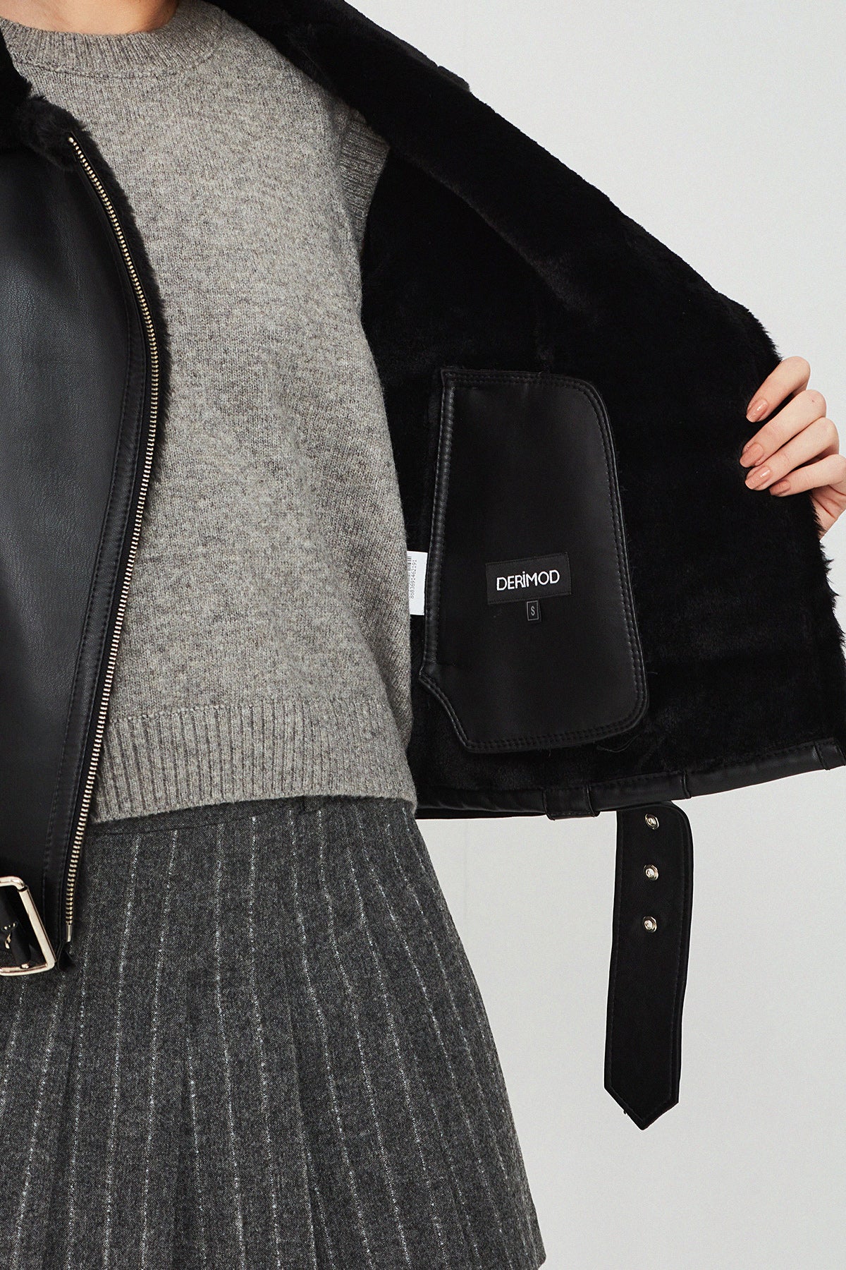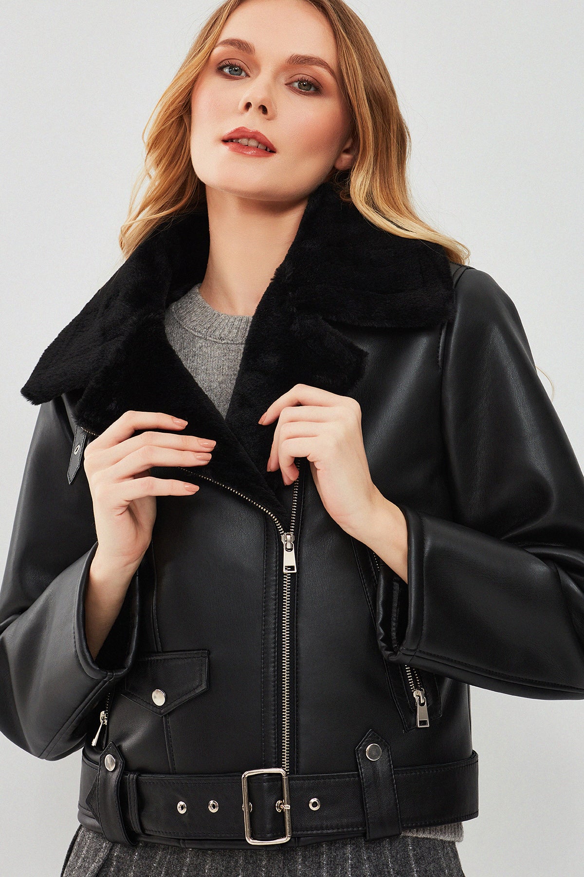Mexico Kadın Siyah Teddy Biker Deri Ceket