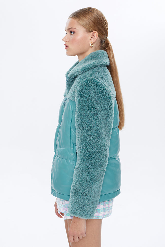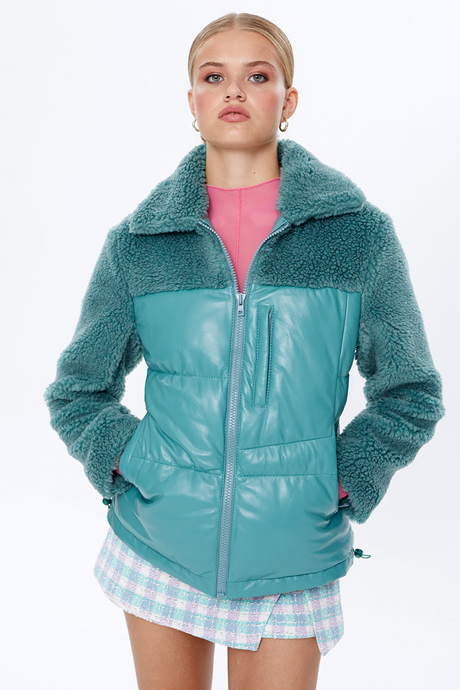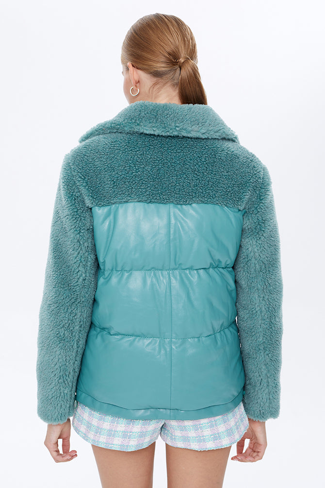 Derimod’un Zarif ve Şıklığı bir arada sunan Miami Kadın Yeşil Peluş Şişme Deri Ceket ile tarzınızı konuşturun. Ürünün kodu: 22WGD5024FX E4