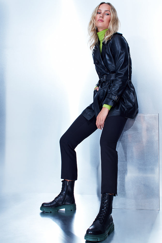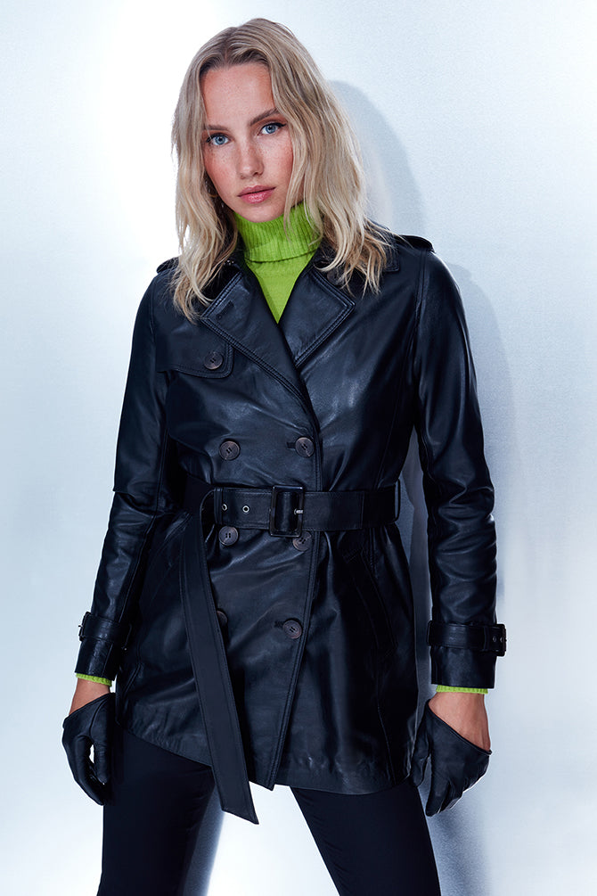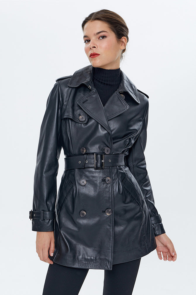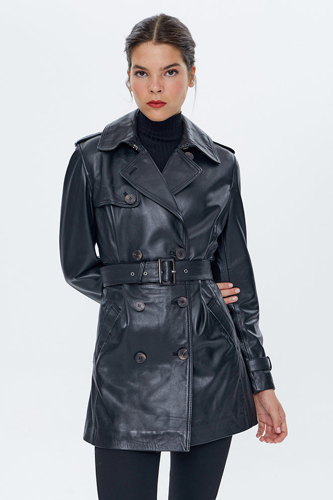 Milla Kadın Siyah Deri Trençkot