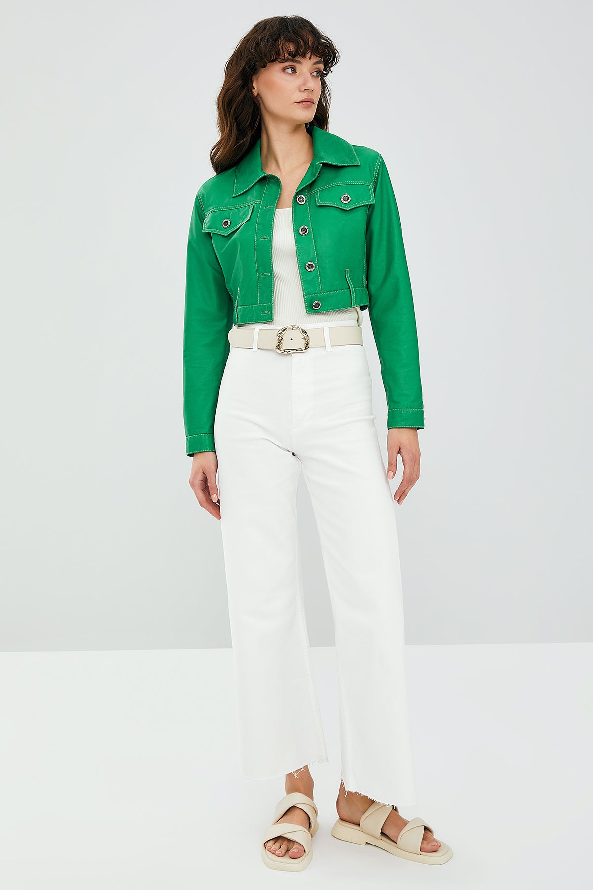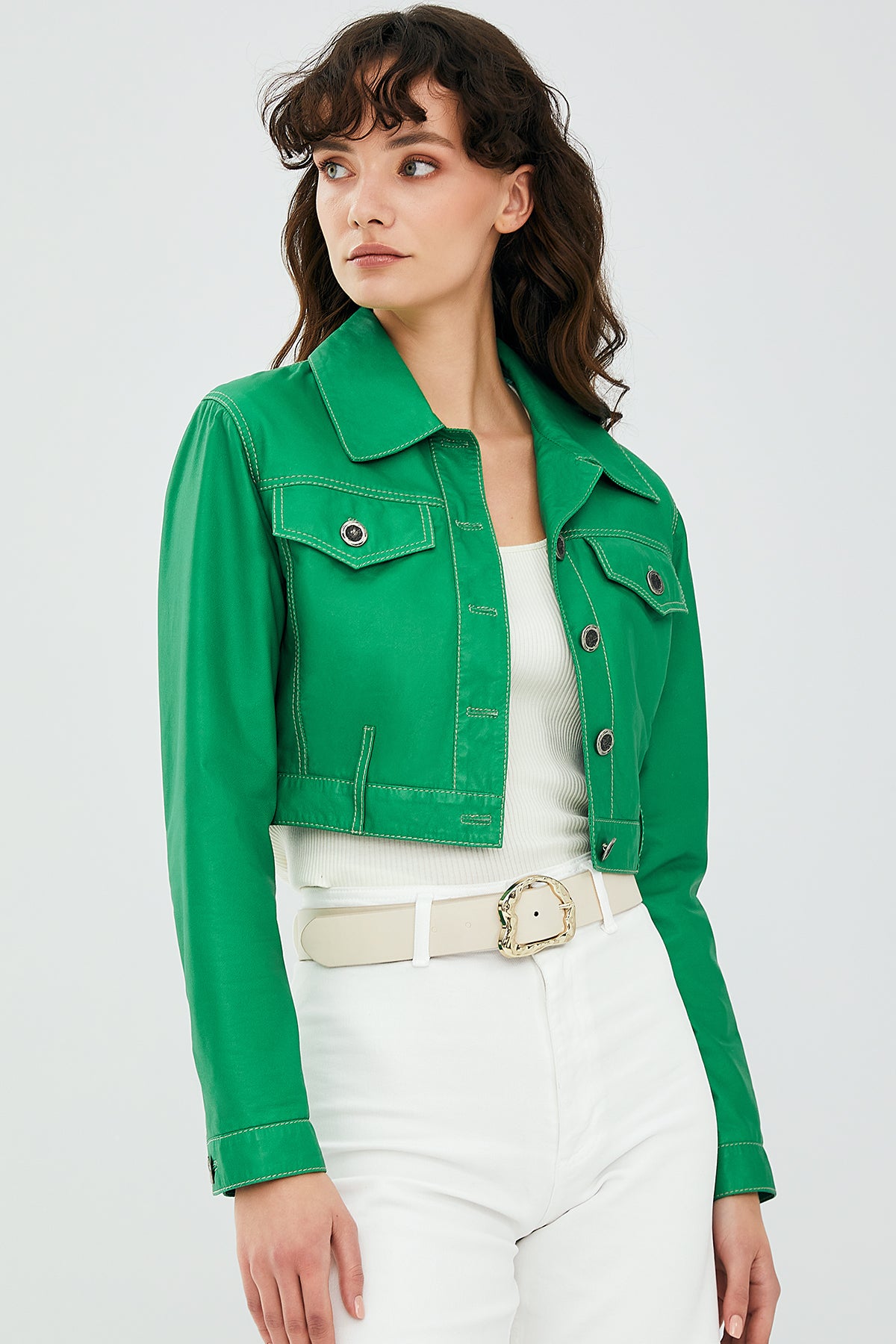 Derimod’un Zarif ve Şıklığı bir arada sunan Mona Kadın Yeşil Kısa Deri Ceket ile tarzınızı konuşturun. Ürünün kodu: 23SGD5080FH PH