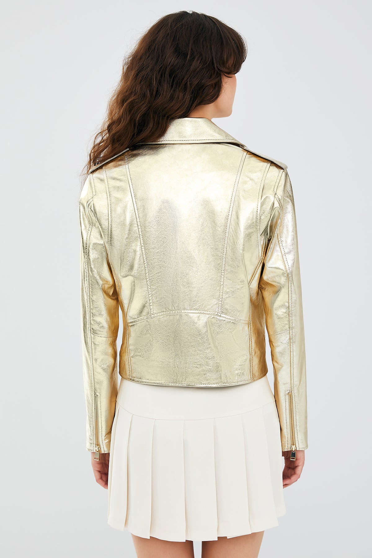 Derimod’un Zarif ve Şıklığı bir arada sunan New Look Kadın Altın Biker Deri Ceket ile tarzınızı konuşturun. Ürünün kodu: 23SGD5086MC H6