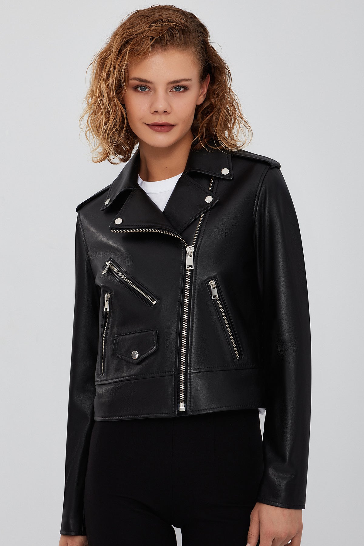 Derimod’un Zarif ve Şıklığı bir arada sunan New Look Kadın Siyah Biker Deri Ceket ile tarzınızı konuşturun. Ürünün kodu: 23WGD5086U5 11