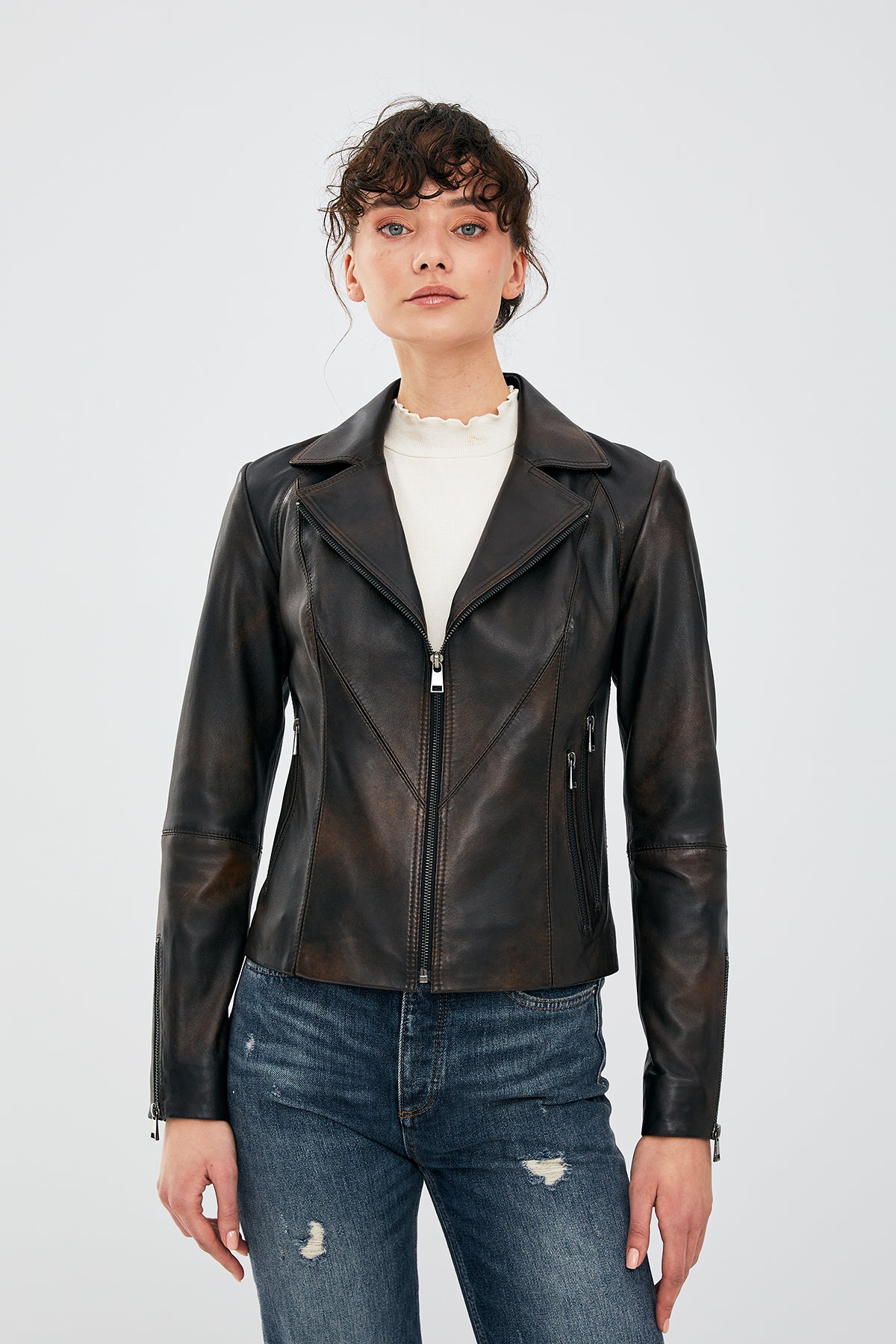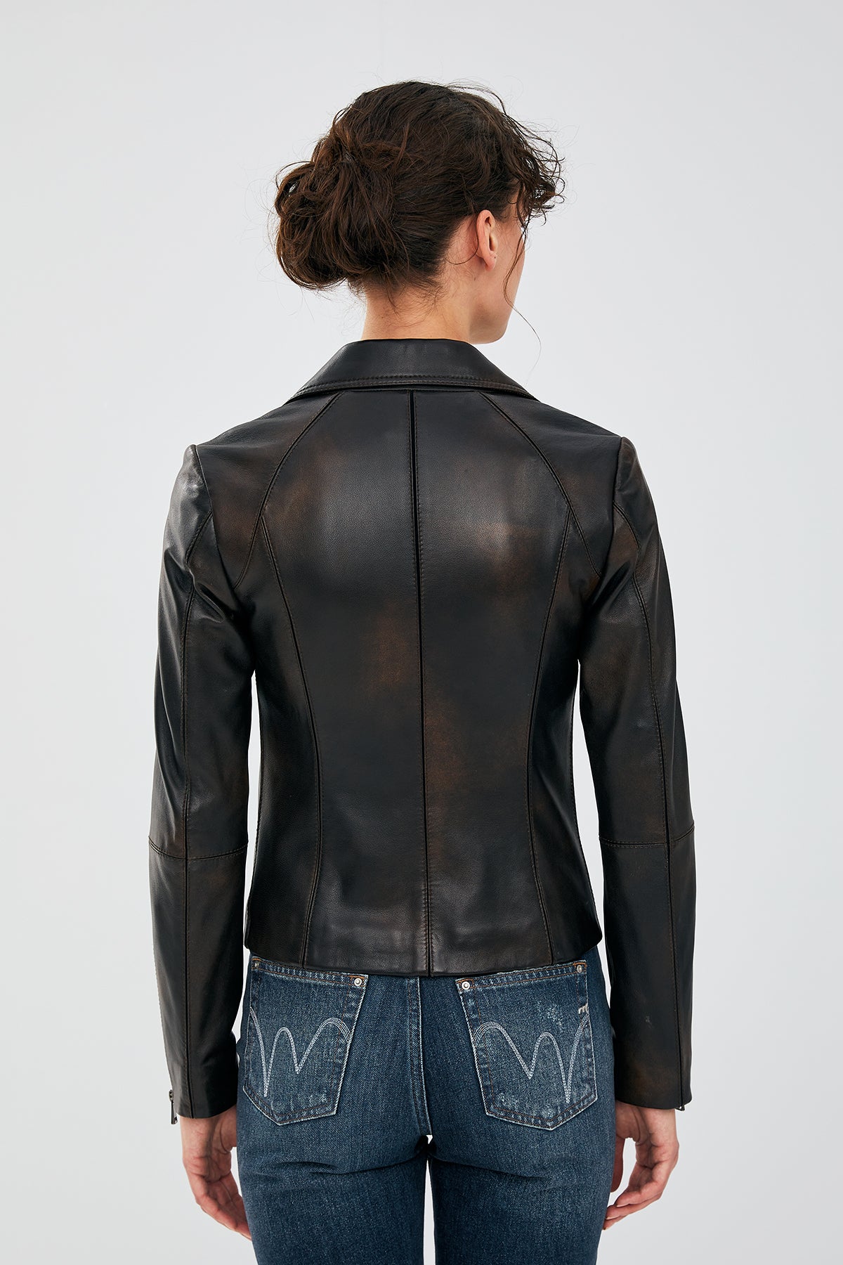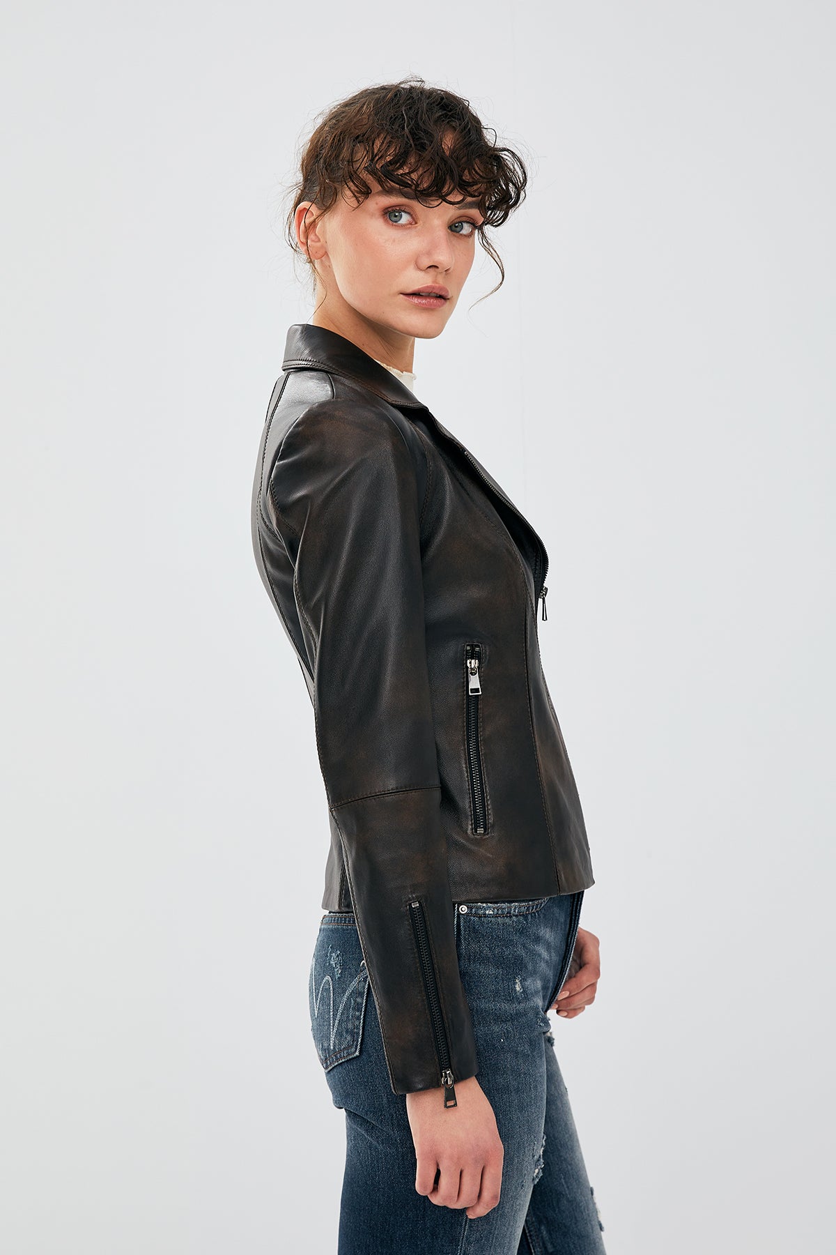 Olivia Kadın Siyah Streç-Fit Deri Ceket