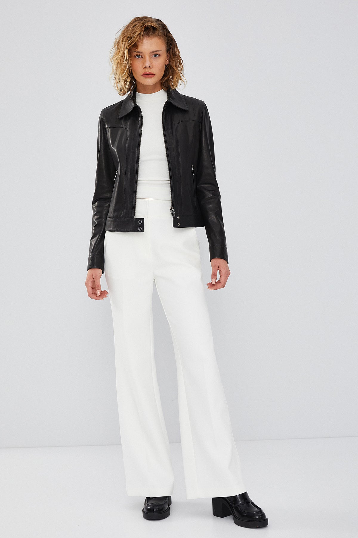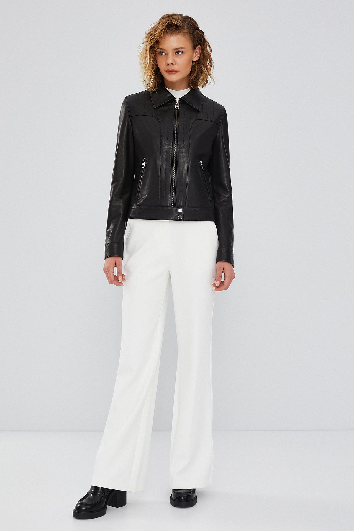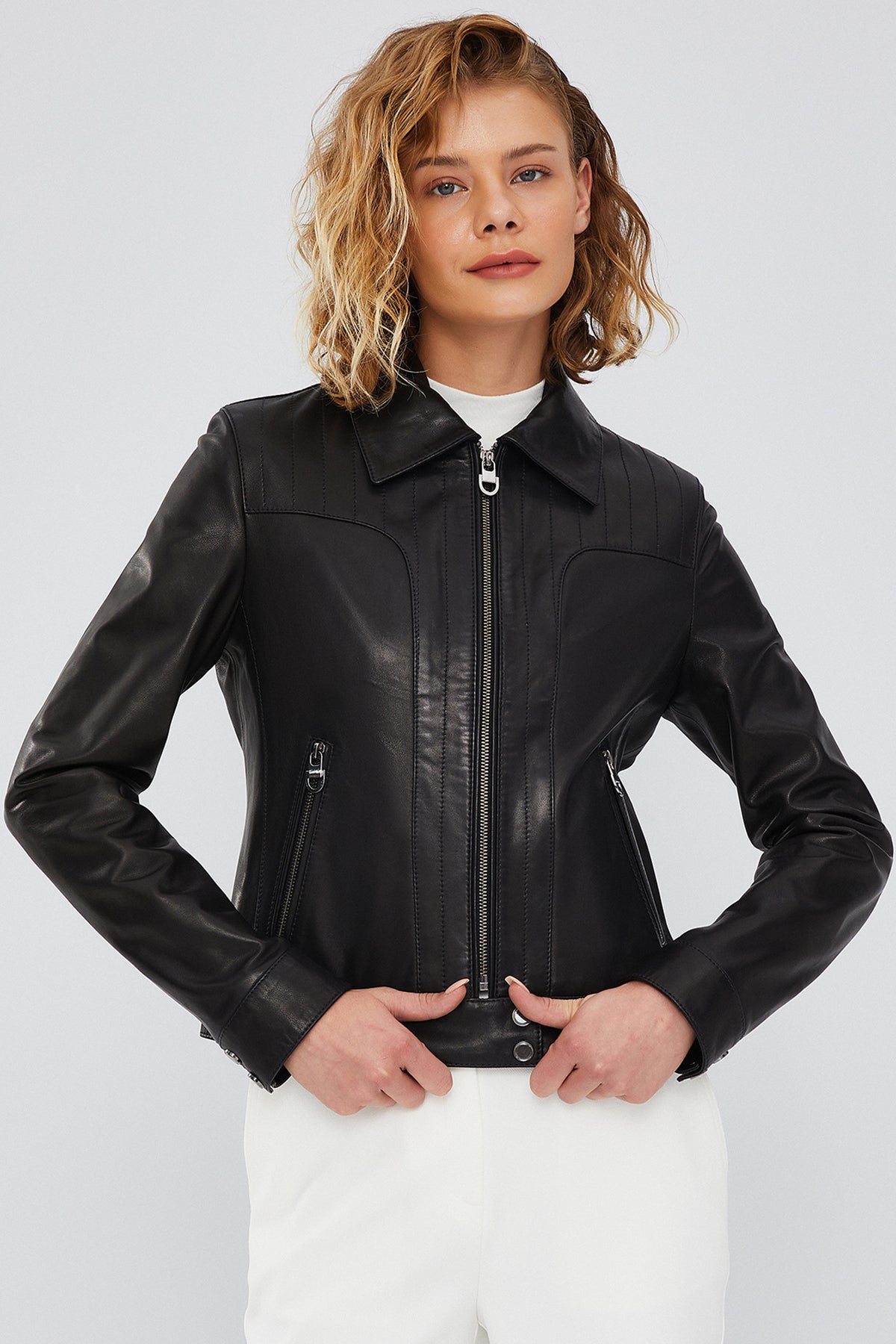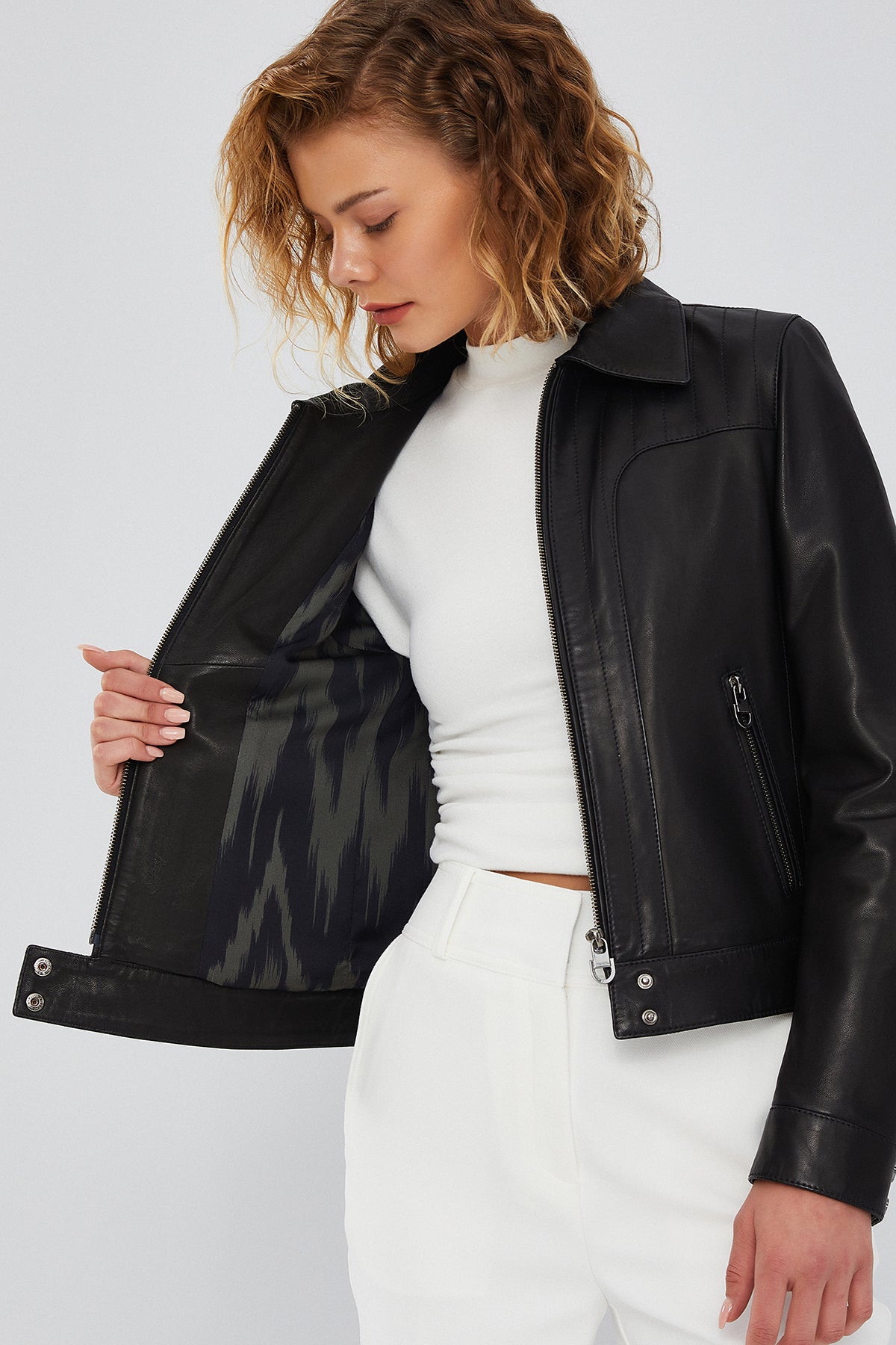 Derimod’un Zarif ve Şıklığı bir arada sunan Olympia Kadın Siyah Kısa Deri Ceket ile tarzınızı konuşturun. Ürünün kodu: 23WGD5105VE 4A