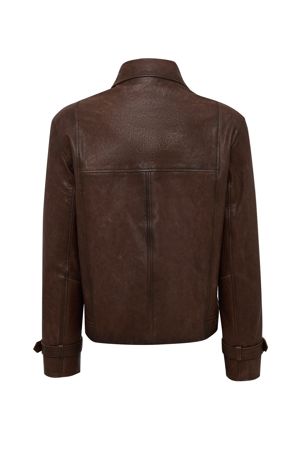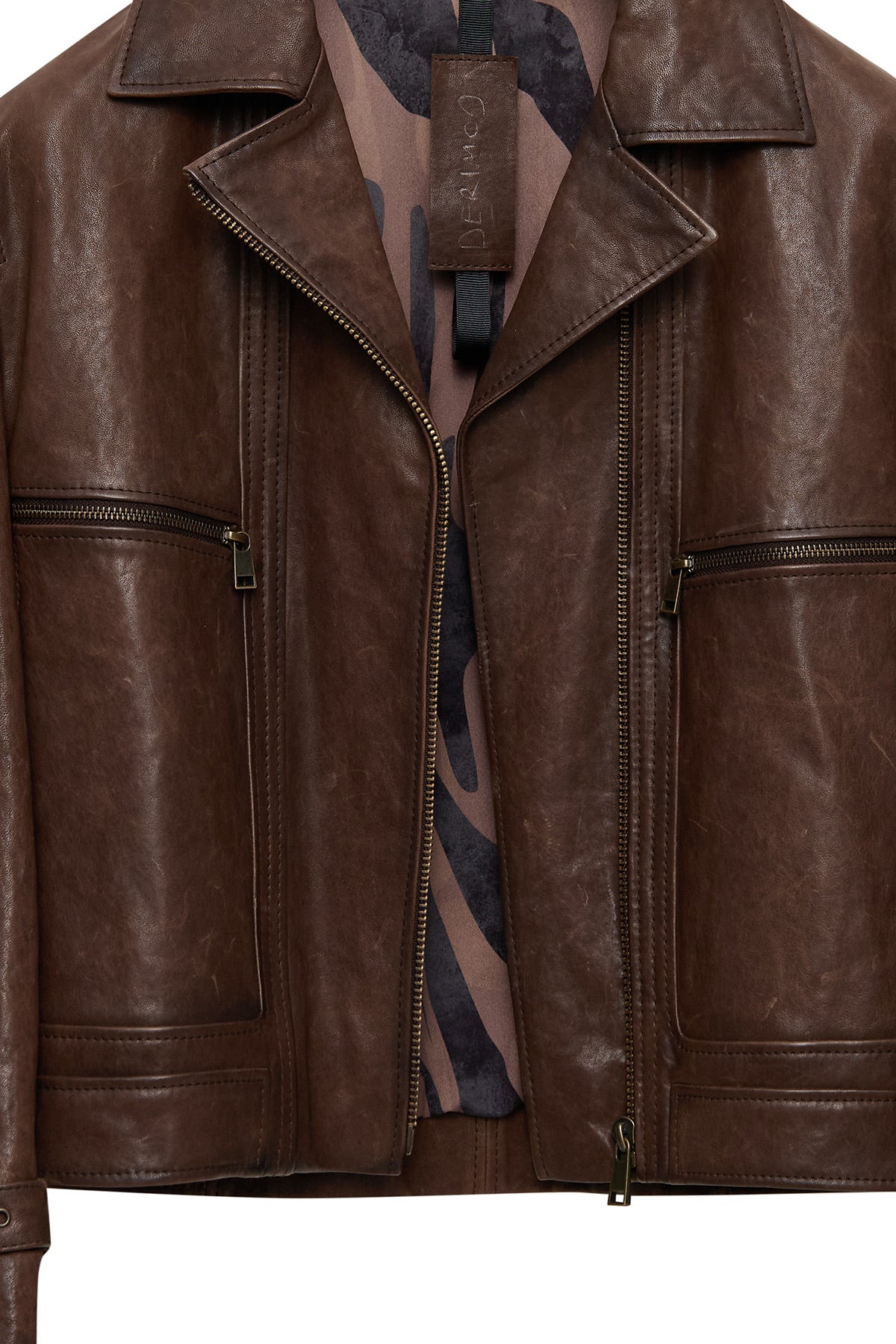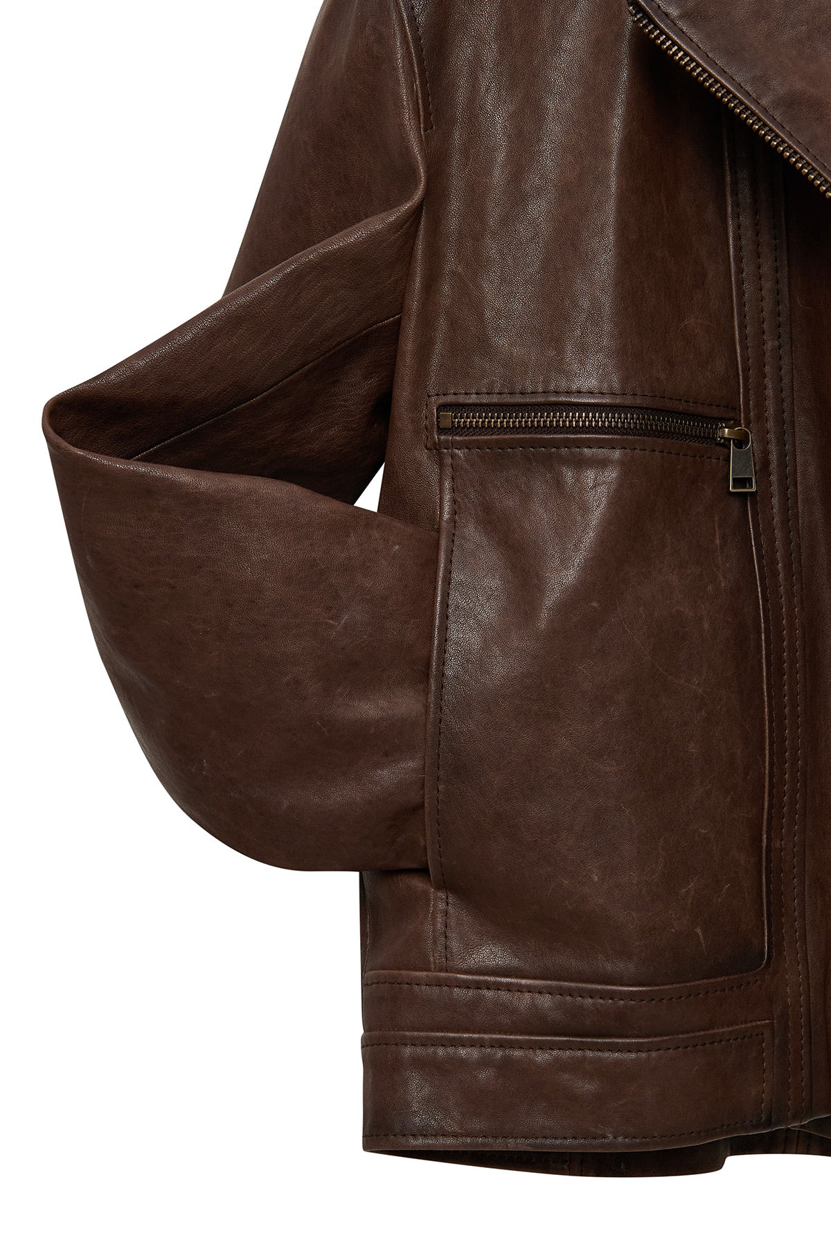 Paloma Kadın Kahverengi Kruvaze Yaka Oversize Deri Mont