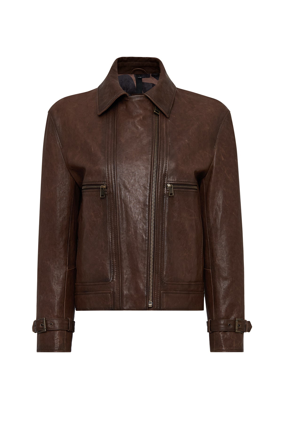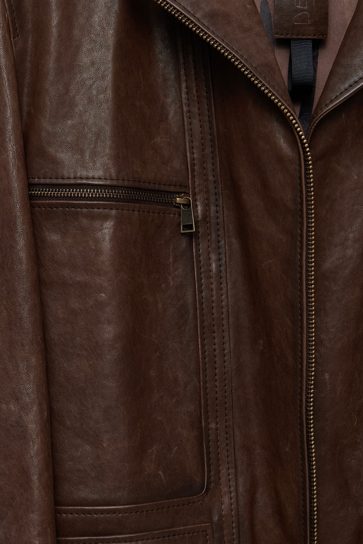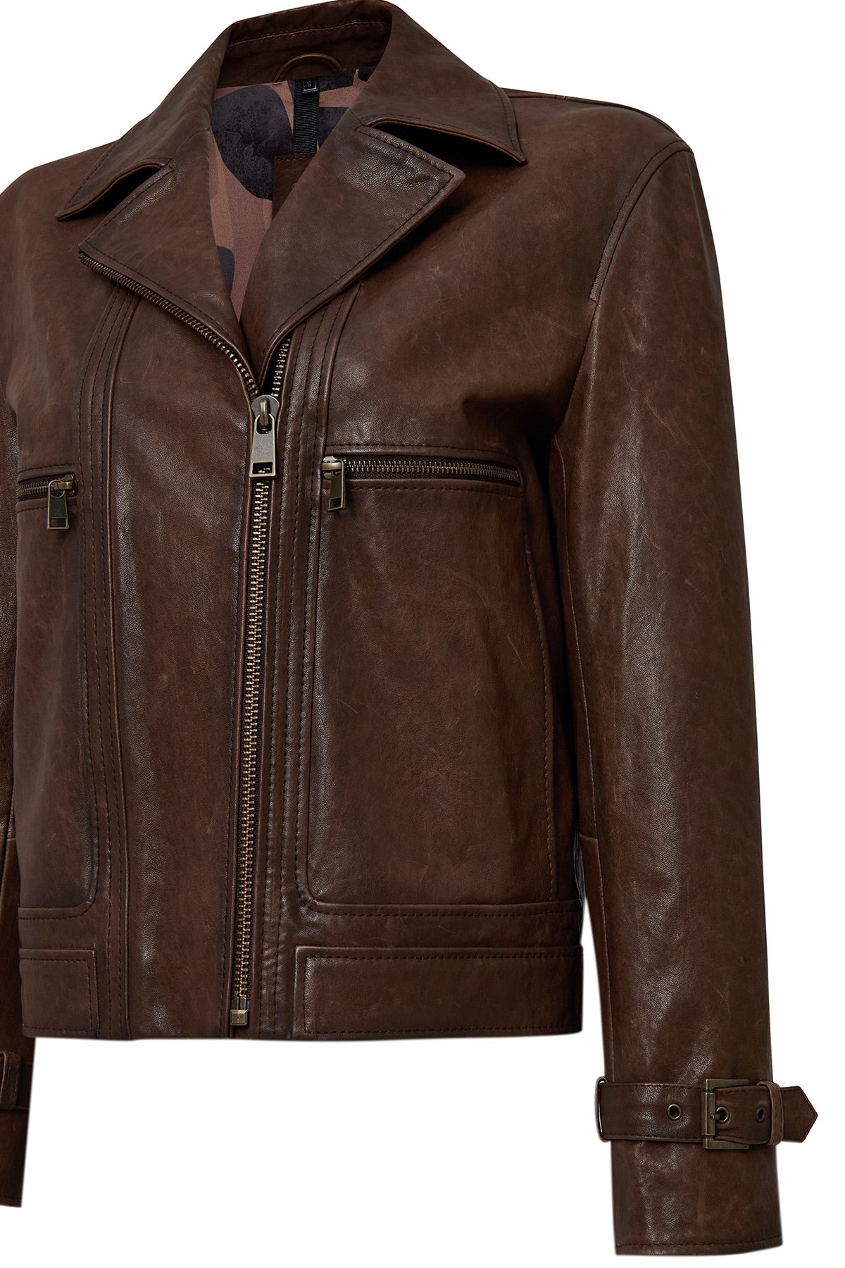 Paloma Kadın Kahverengi Kruvaze Yaka Oversize Deri Mont