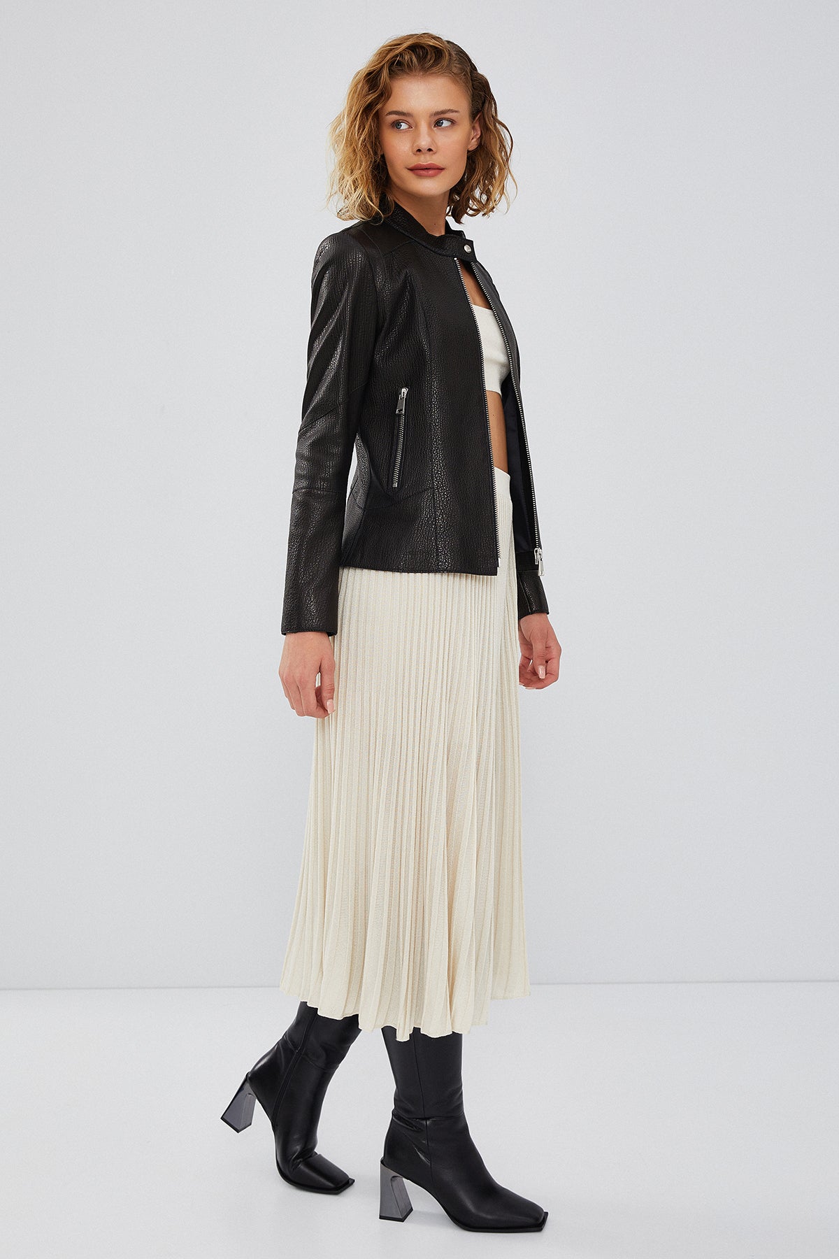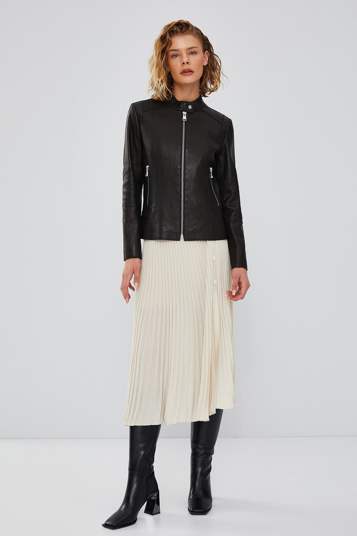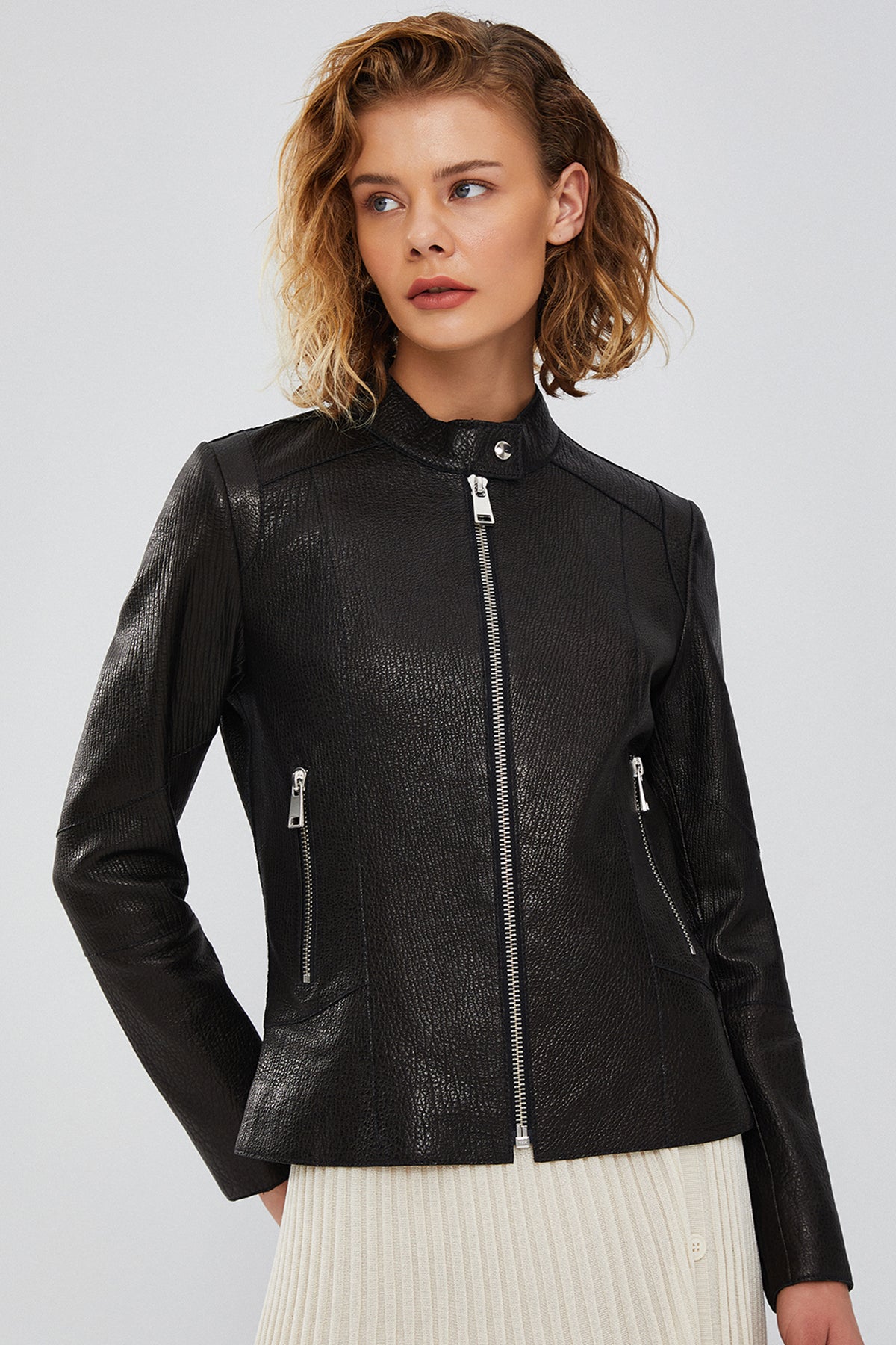 Derimod’un Zarif ve Şıklığı bir arada sunan Pam Kadın Siyah Kısa Deri Ceket ile tarzınızı konuşturun. Ürünün kodu: 23WGD5117JB 11