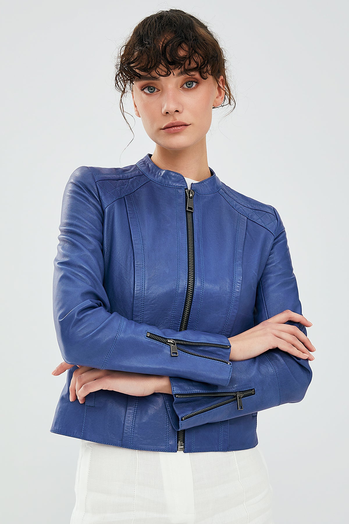 Derimod’un Zarif ve Şıklığı bir arada sunan Paris Kadın Mavi Kısa Deri Ceket ile tarzınızı konuşturun. Ürünün kodu: 23SGM589651 PS