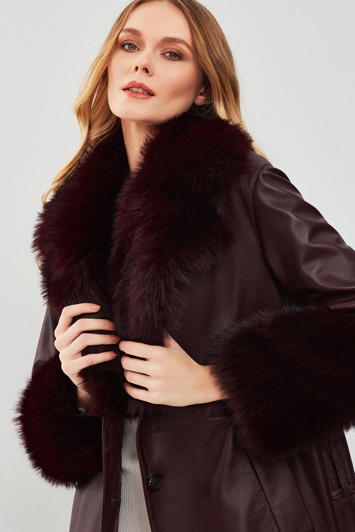 Derimod’un Zarif ve Şıklığı bir arada sunan Penelope Kadın Bordo Kürklü Deri Pardesü ile tarzınızı konuşturun. Ürünün kodu: 23WGE5113R3 66
