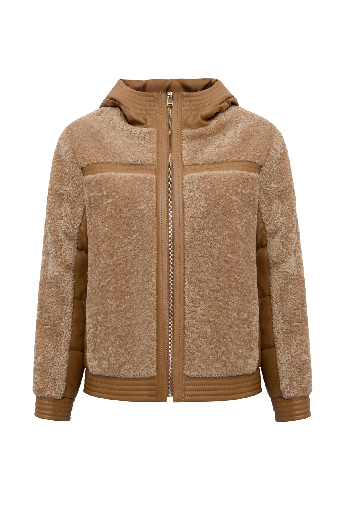 Prag Kadın Hardal Kapüşonlu Teddy Deri Mont