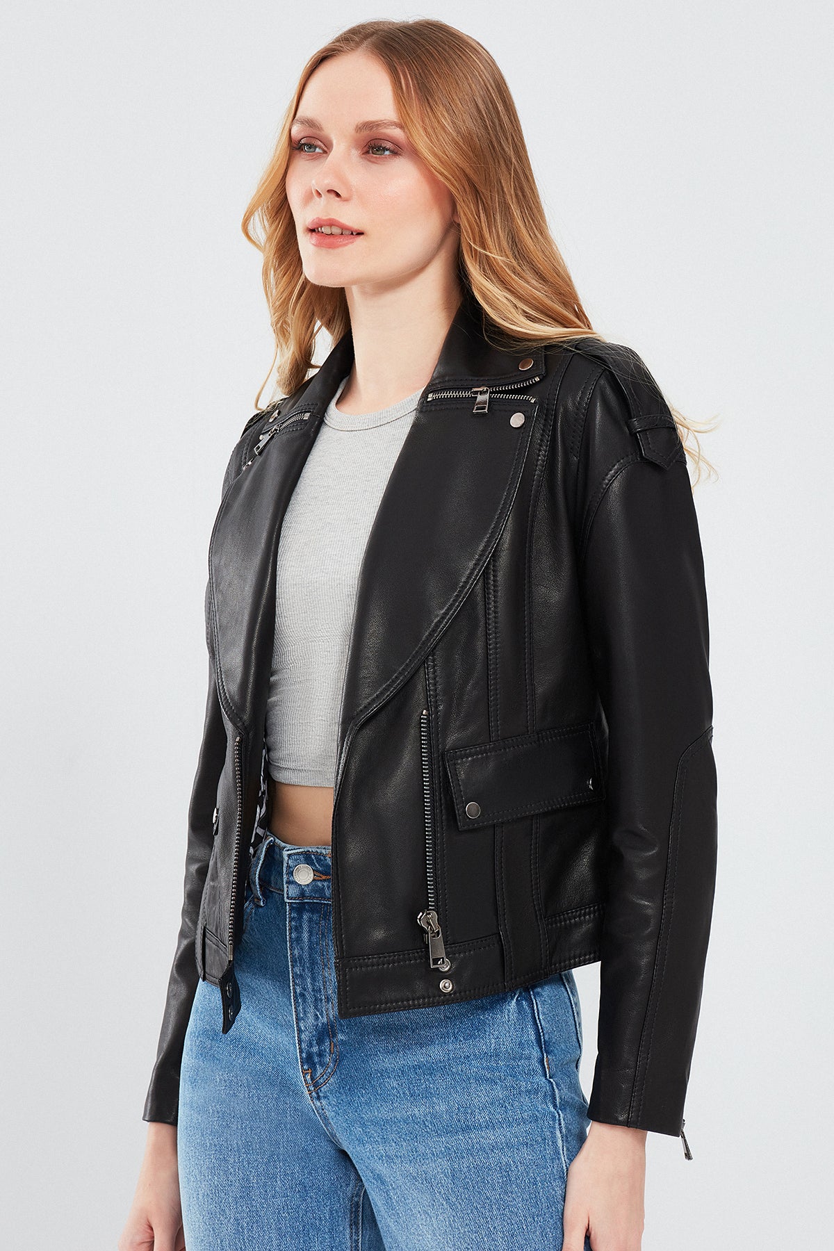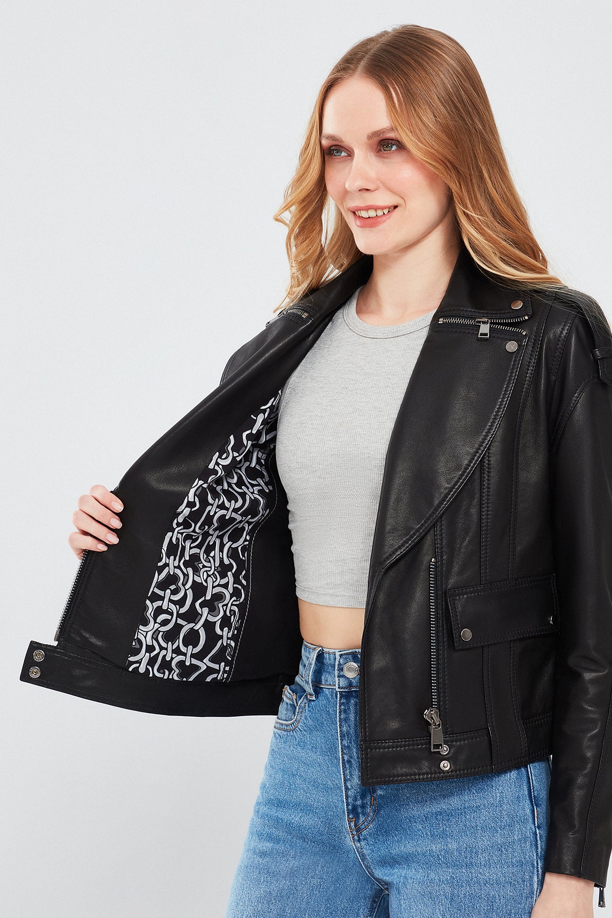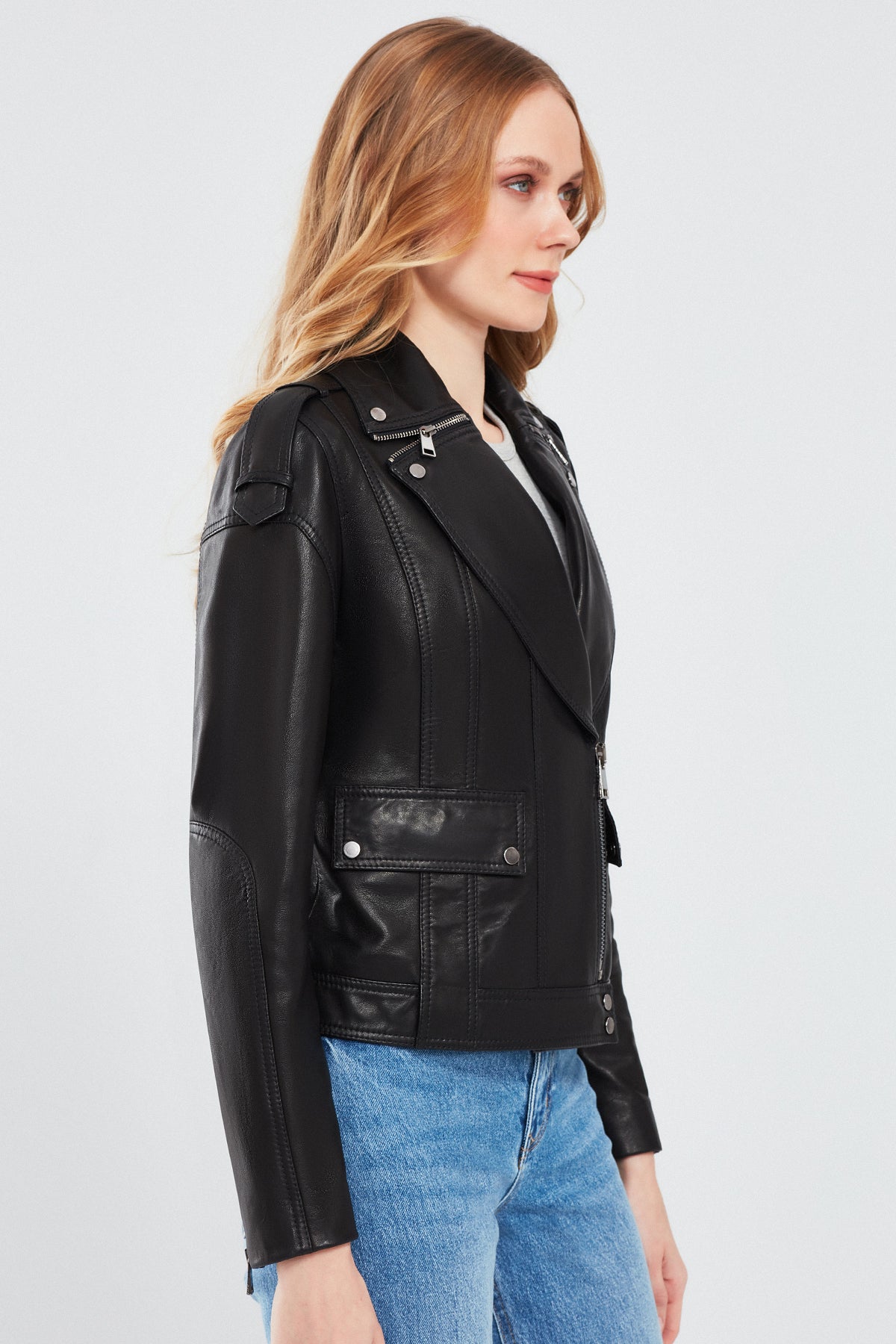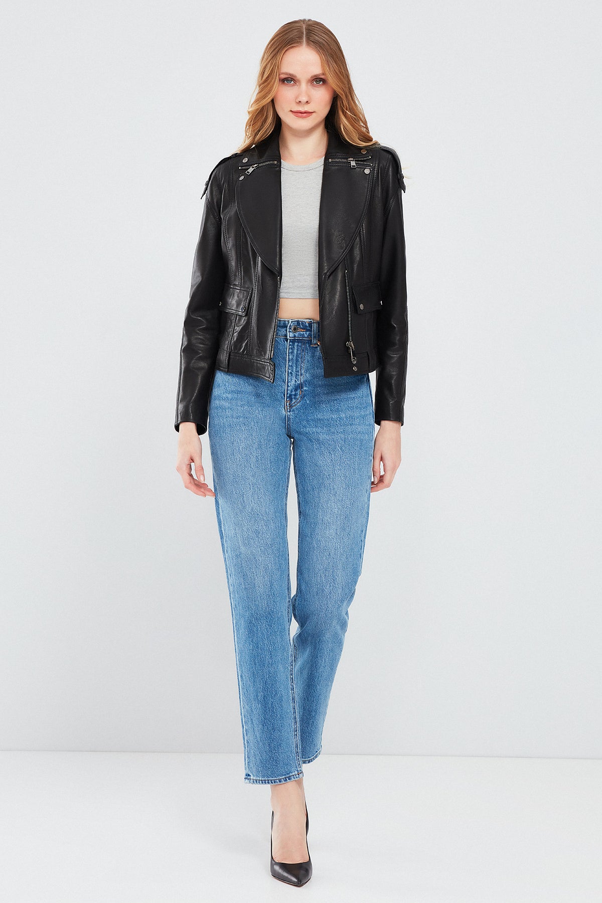 Derimod'un Reina Kadın Siyah Deri Ceketi, şıklığı ve zarafeti bir araya getiriyor. Yüksek kaliteli deri malzemesiyle üretilen bu ceket, zamansız siyah rengiyle her kombinle mükemmel uyum sağlıyor. Fermuarlı kapama detayıyla kolayca giyilebilen bu ceket, şık ve modern bir görünüm sunuyor. Kruvaze yaka tasarımıyla da dikkat çeken bu ceket, her mevsim ve her ortamda kullanabileceğiniz bir parça olacak. Reina Kadın Siyah Deri Ceket, günlük kullanımdan özel günlerdeki kombinlerinize kadar geniş bir kullanım alanı sunar. Tarzınızı ve şıklığınızı vurgulamak için mükemmel bir seçimdir. Ürünün kodu: 24SGD5186VE 11