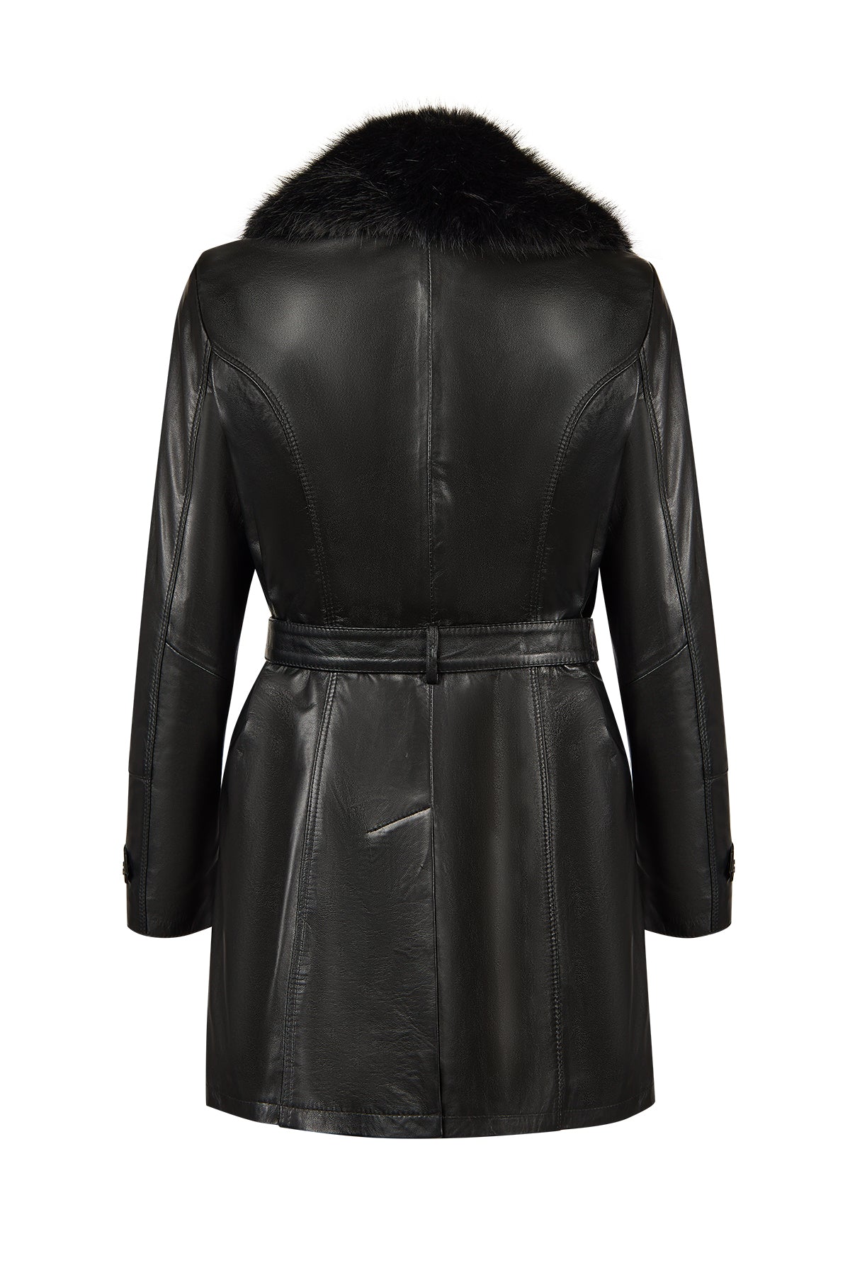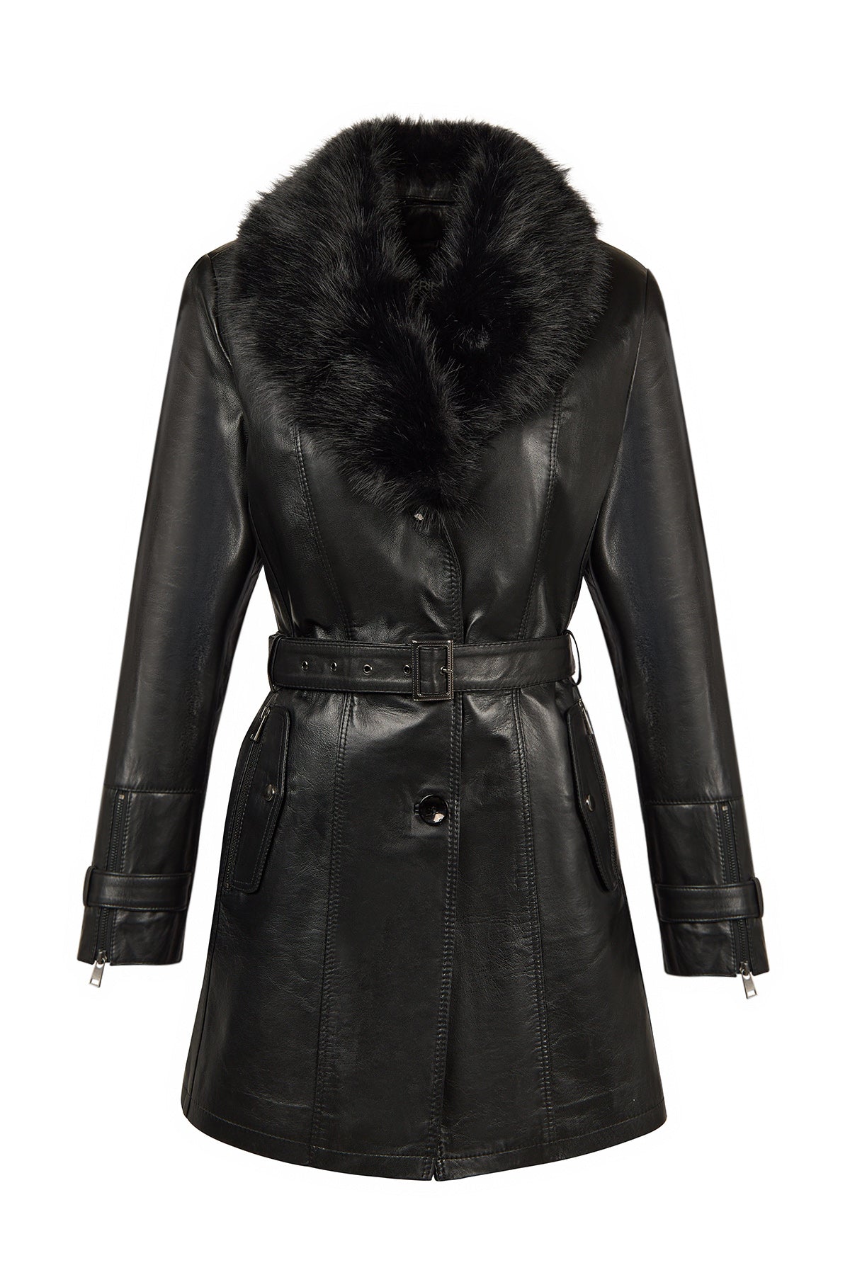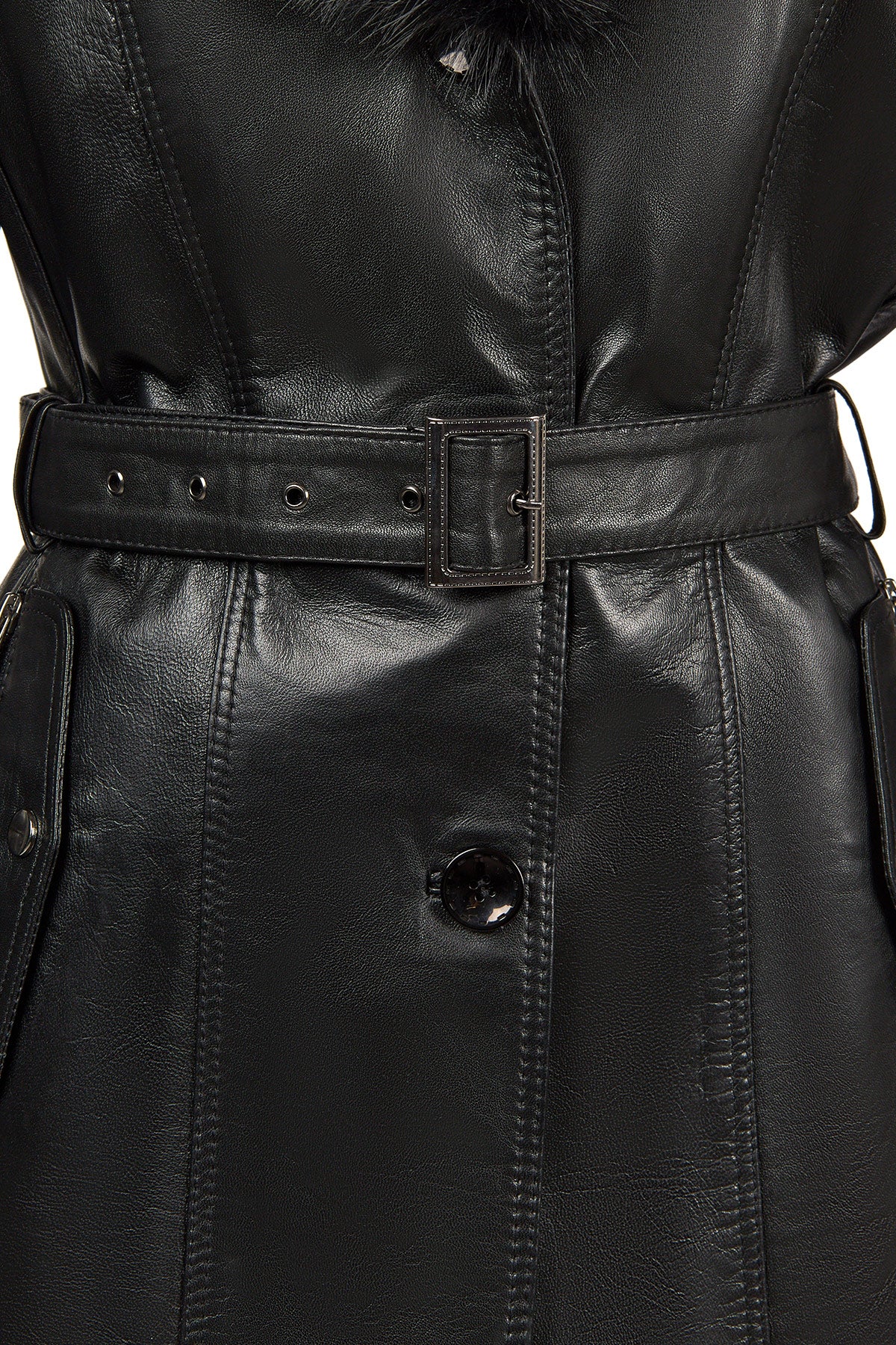 Rhoda(Plus) Kadın Siyah Yaka Kürklü Geniş Kalıp Deri Kaban