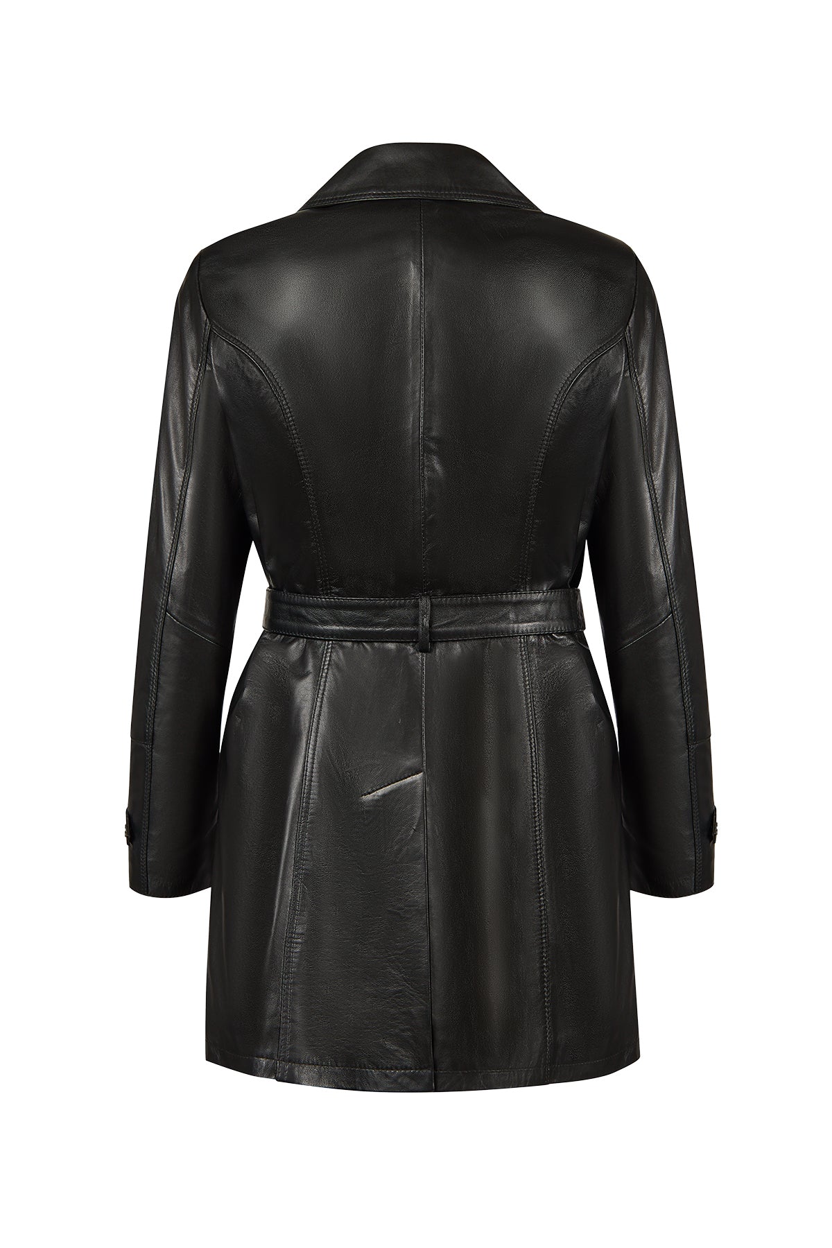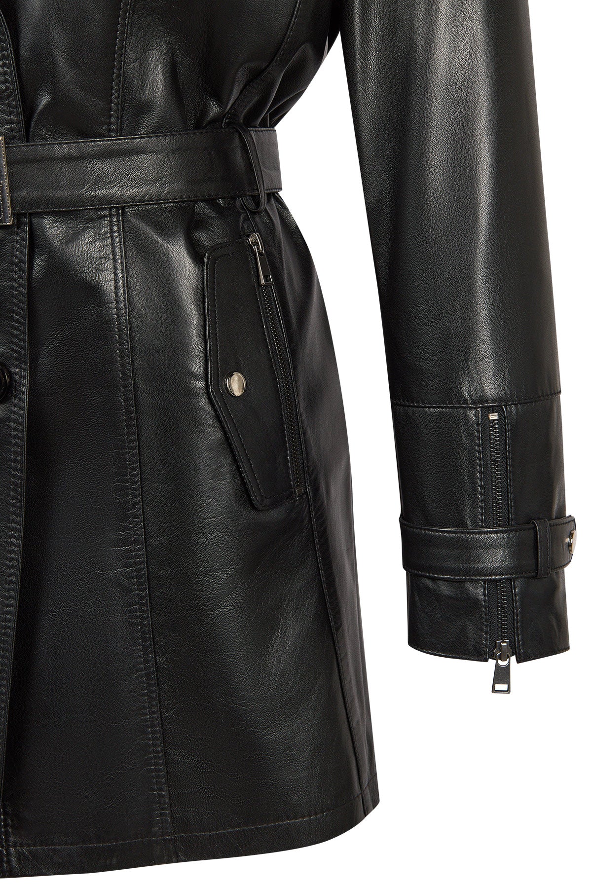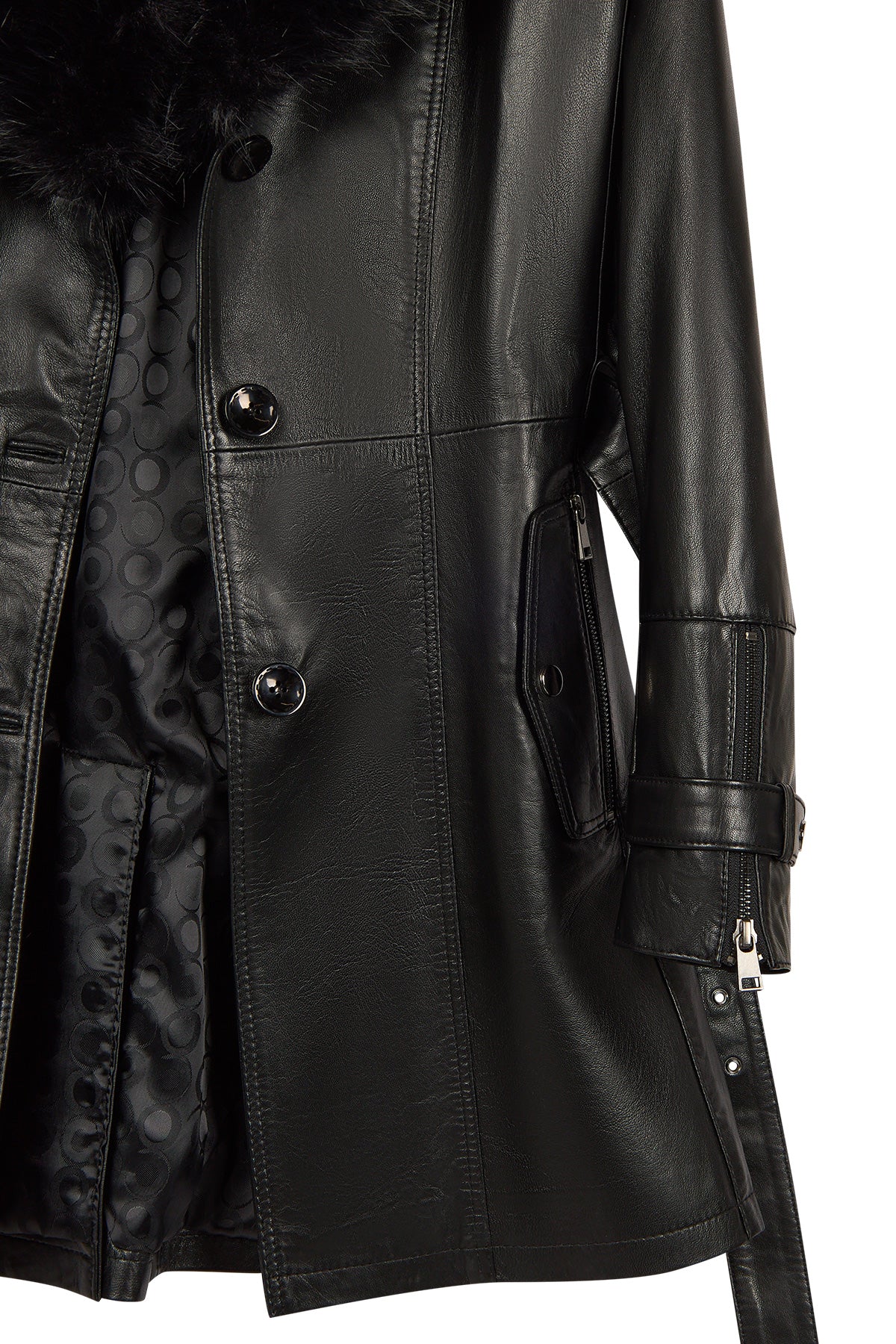 Rhoda(Plus) Kadın Siyah Yaka Kürklü Geniş Kalıp Deri Kaban