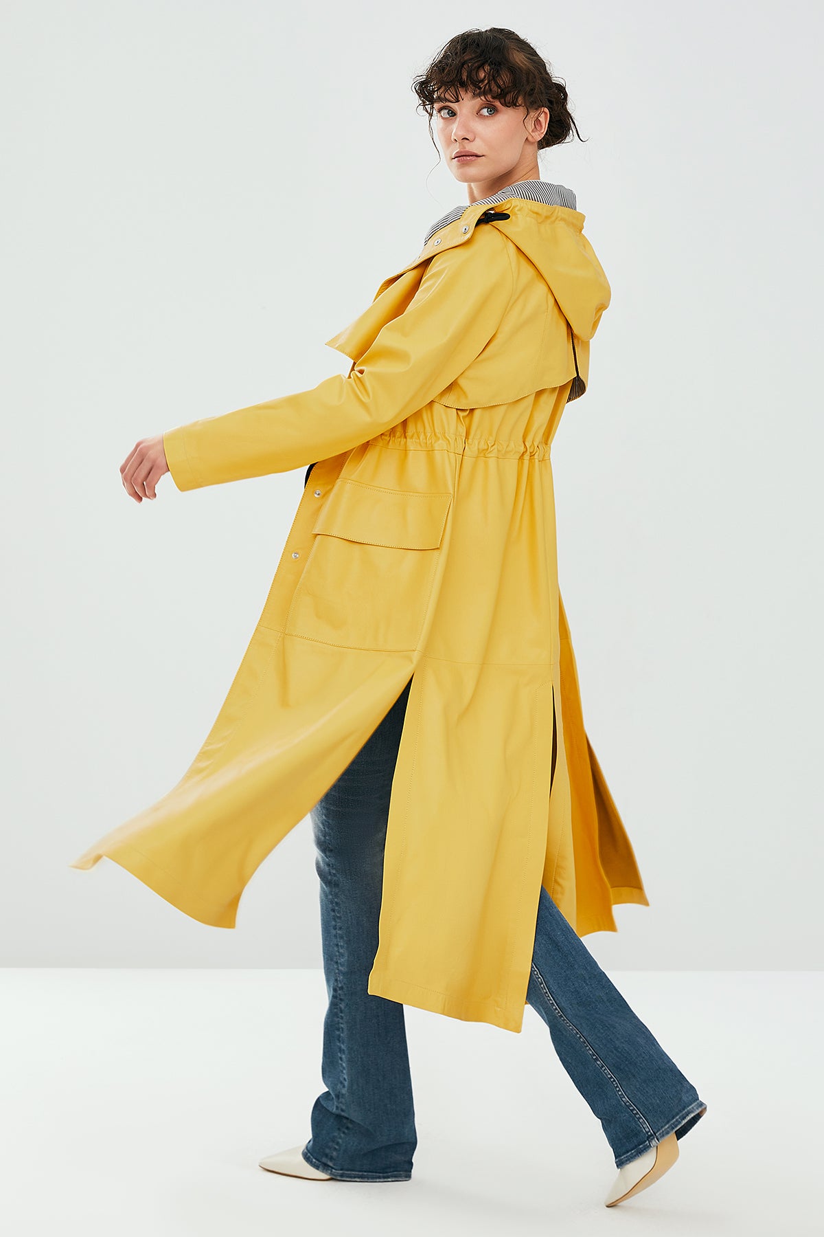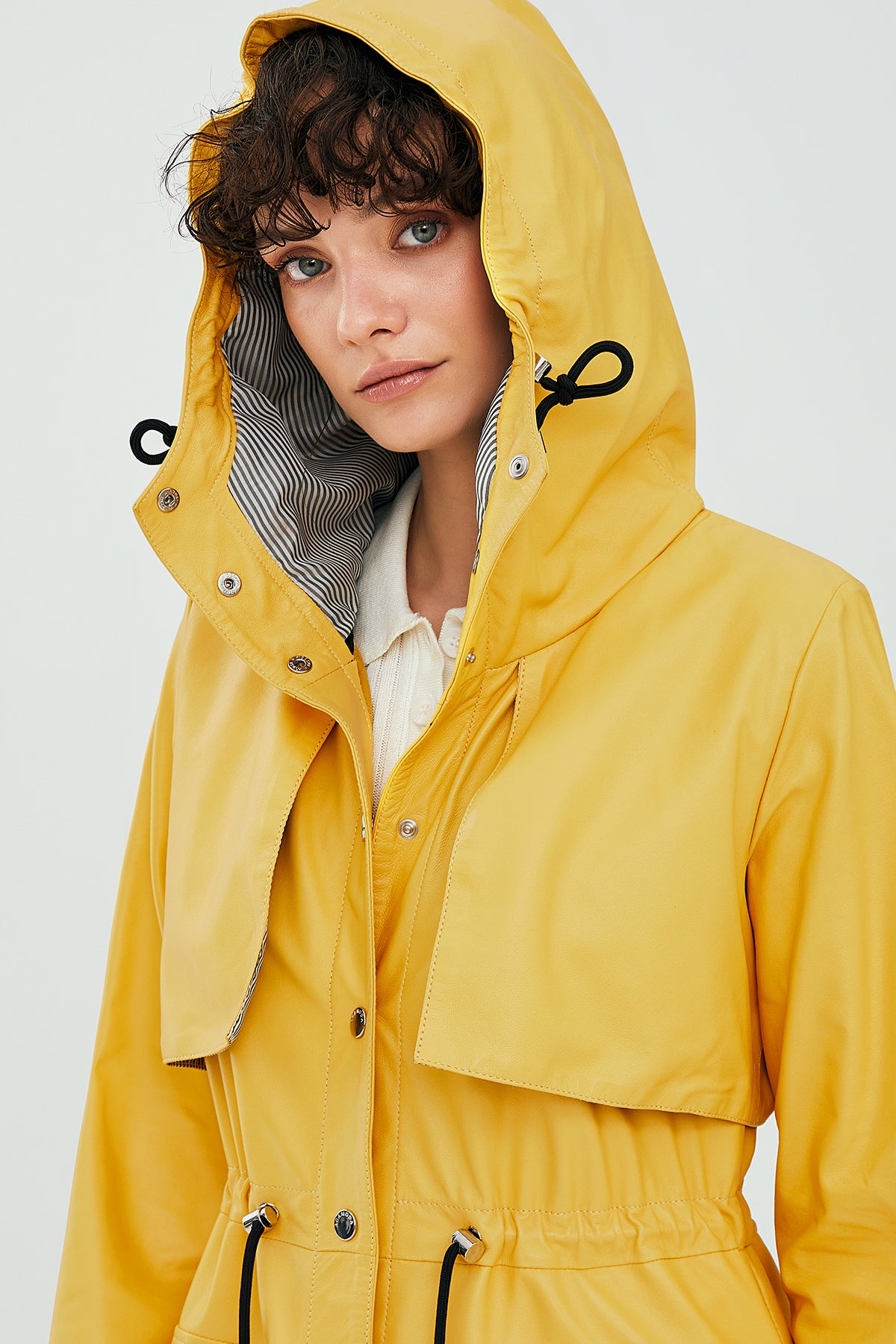 Rihanna Kadın Sarı Deri Astarsız Pardesü