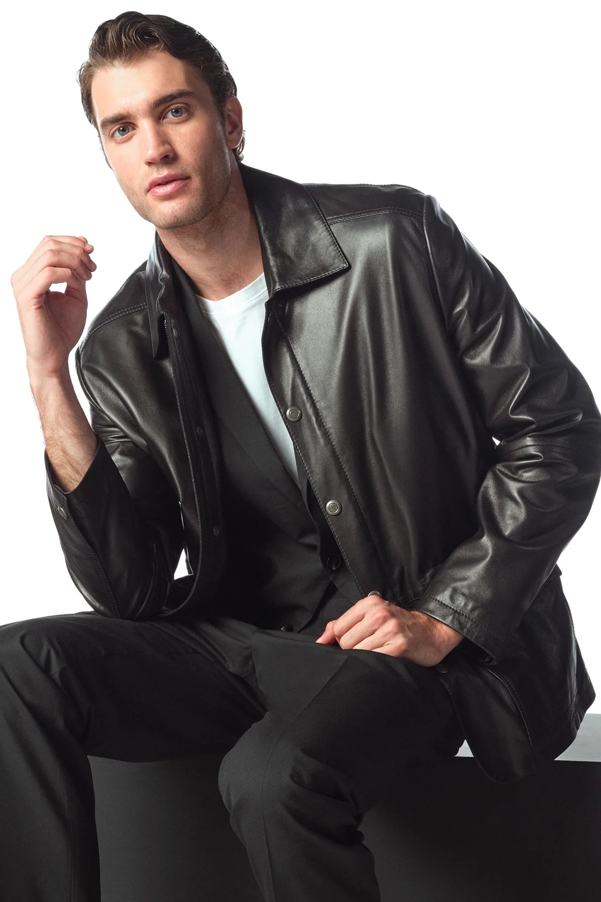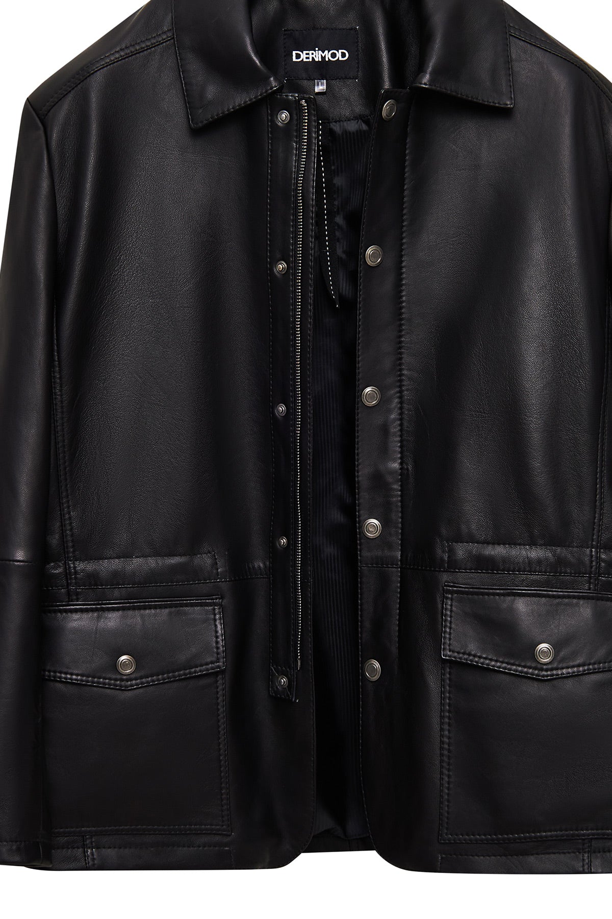 Derimod’un Zarifliği ve Şıklığı bir arada sunan Salah Erkek Siyah Gömlek Yaka Deri Mont ile tarzınızı konuşturun. Ürünün kodu: 25WGD6585U4 11
